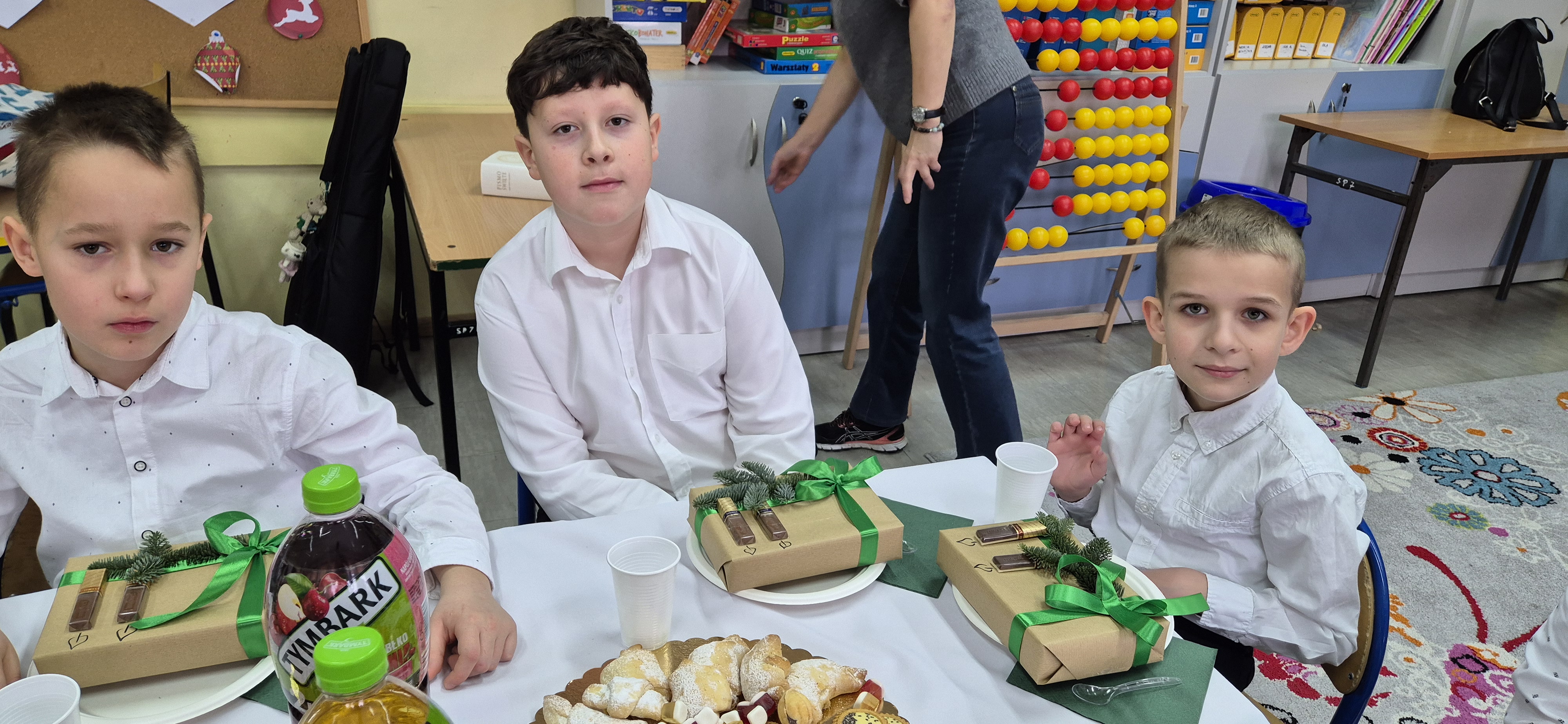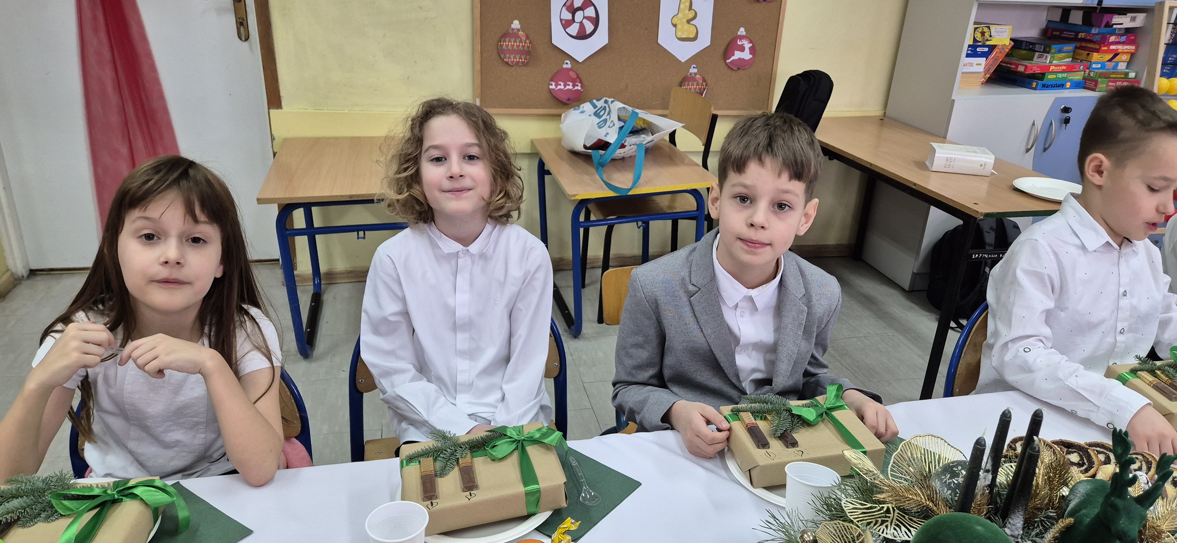 Nie zabrakło świątecznego poczęstunku, przygotowanego dzięki zaangażowaniu i życzliwości rodziców, za co serdecznie dziękujemy. Był to wyjątkowy czas rozmów, uśmiechu i wzmacniania klasowych więzi.