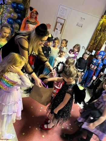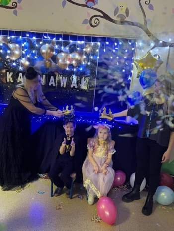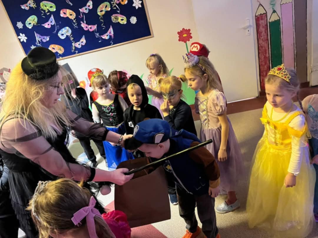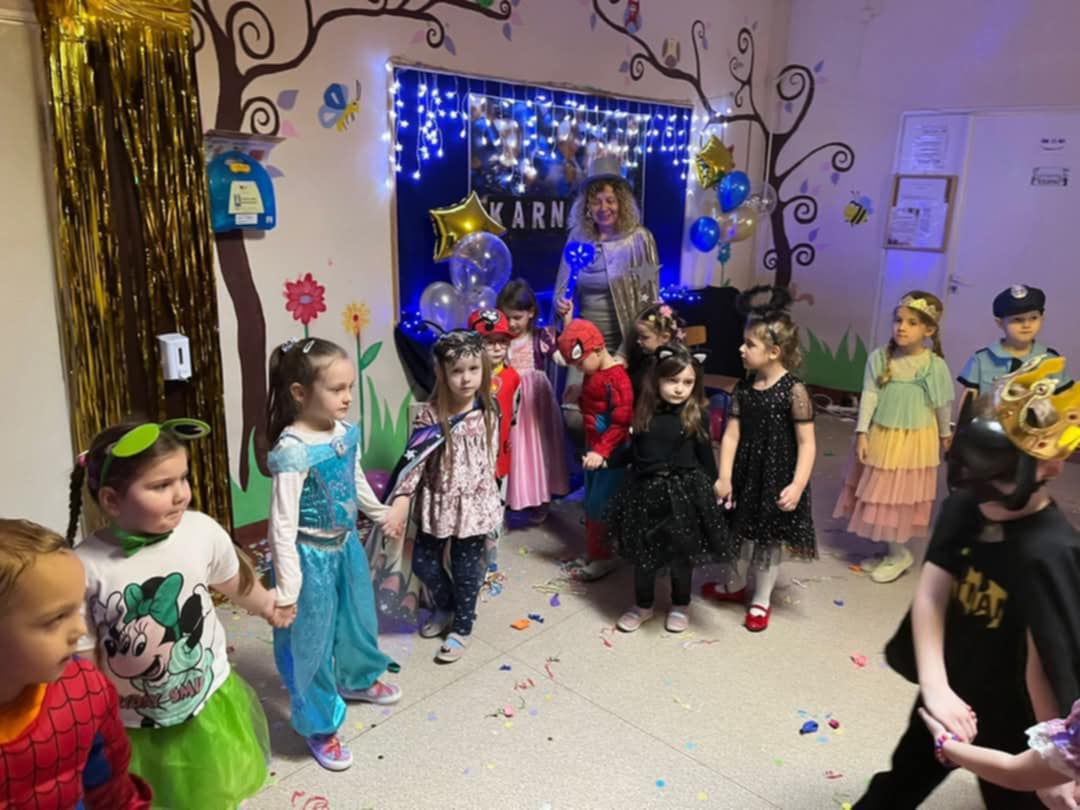 Na balu karnawałowym wspaniałą zabawę dla dzieci 5-6 letnich z naszego przedszkola zapewnili pracownicy Centrum Usług Społecznych w Mławie.