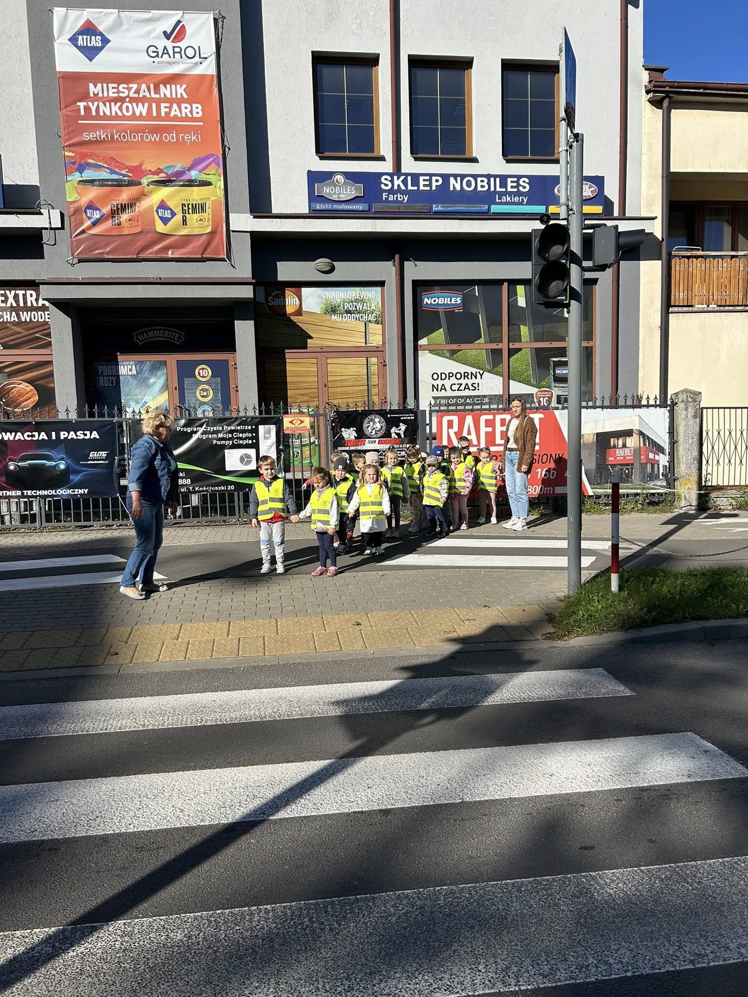 Dzieci z grupy Księżyce Miejskiego Przedszkola Samorządowego nr 4 w ramach programu Bezpieczny Przedszkolak wybrały się na wycieczkę na skrzyżowanie, która stała się świetną okazją do poznania zasad ruchu drogowego w praktyce. Pod czujnym okiem nauczycieli i pani pomocy dzieci obserwowały sygnalizację świetlną, znaki drogowe oraz zachowanie pieszych i kierowców. Dzięki temu mogły utrwalić podstawowe zasady, takie jak przechodzenie przez jezdnię na zielonym świetle, korzystanie z przejścia dla pieszych czy rozpoznawanie znaczenia wybranych znaków drogowych. Tego typu wyjście nie tylko podnosi poziom bezpieczeństwa najmłodszych, ale również kształtuje ich świadomość i odpowiedzialność podczas poruszania się po drodze.