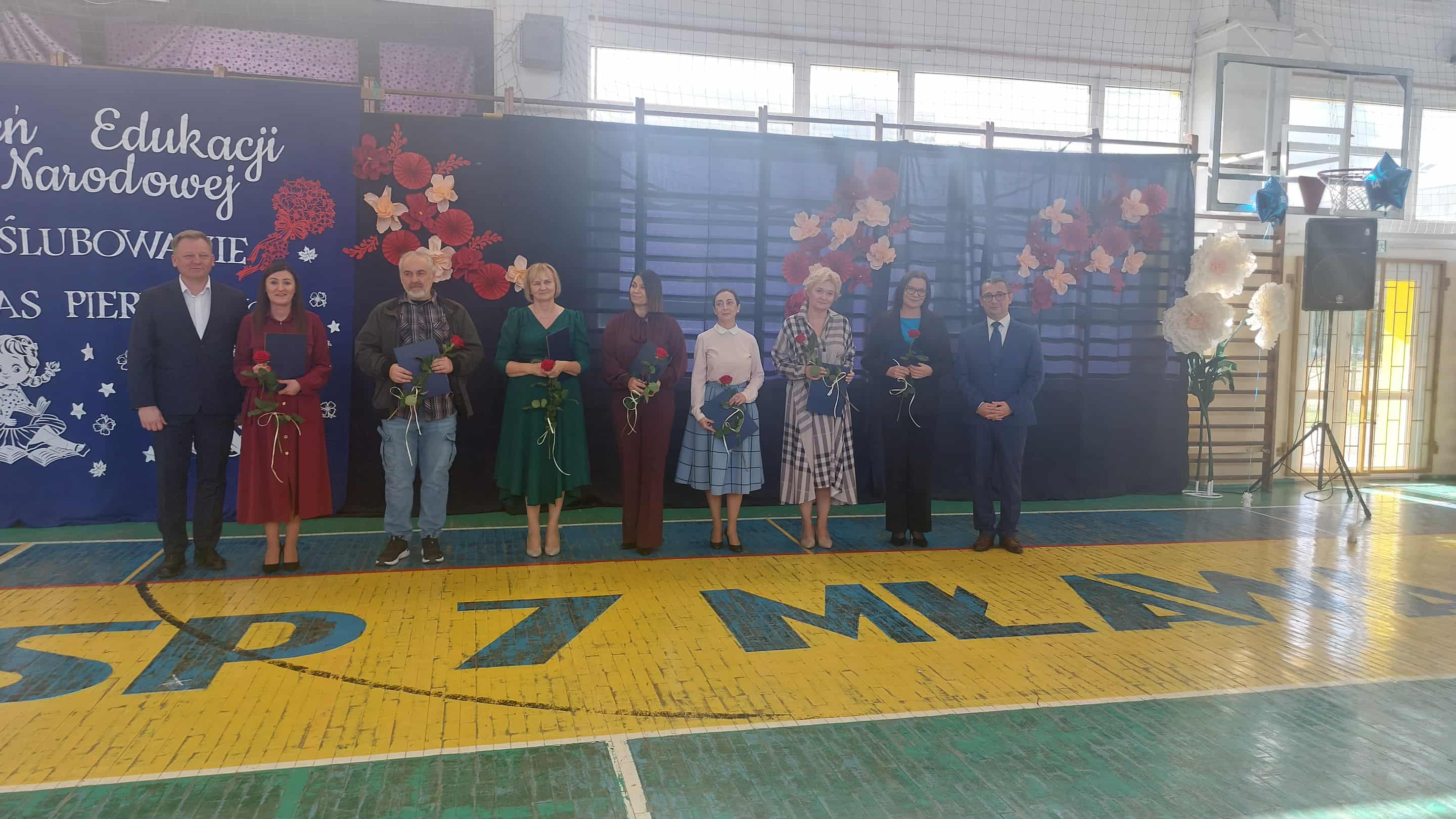 Na zakończenie uroczystości dyrektor Mariusz Lempek i burmistrz miasta Piotr Jankowski wręczyli nagrody nauczycielom i wicedyrektorom, doceniając ich osiągnięcia, zaangażowanie i wkład w rozwój szkoły.