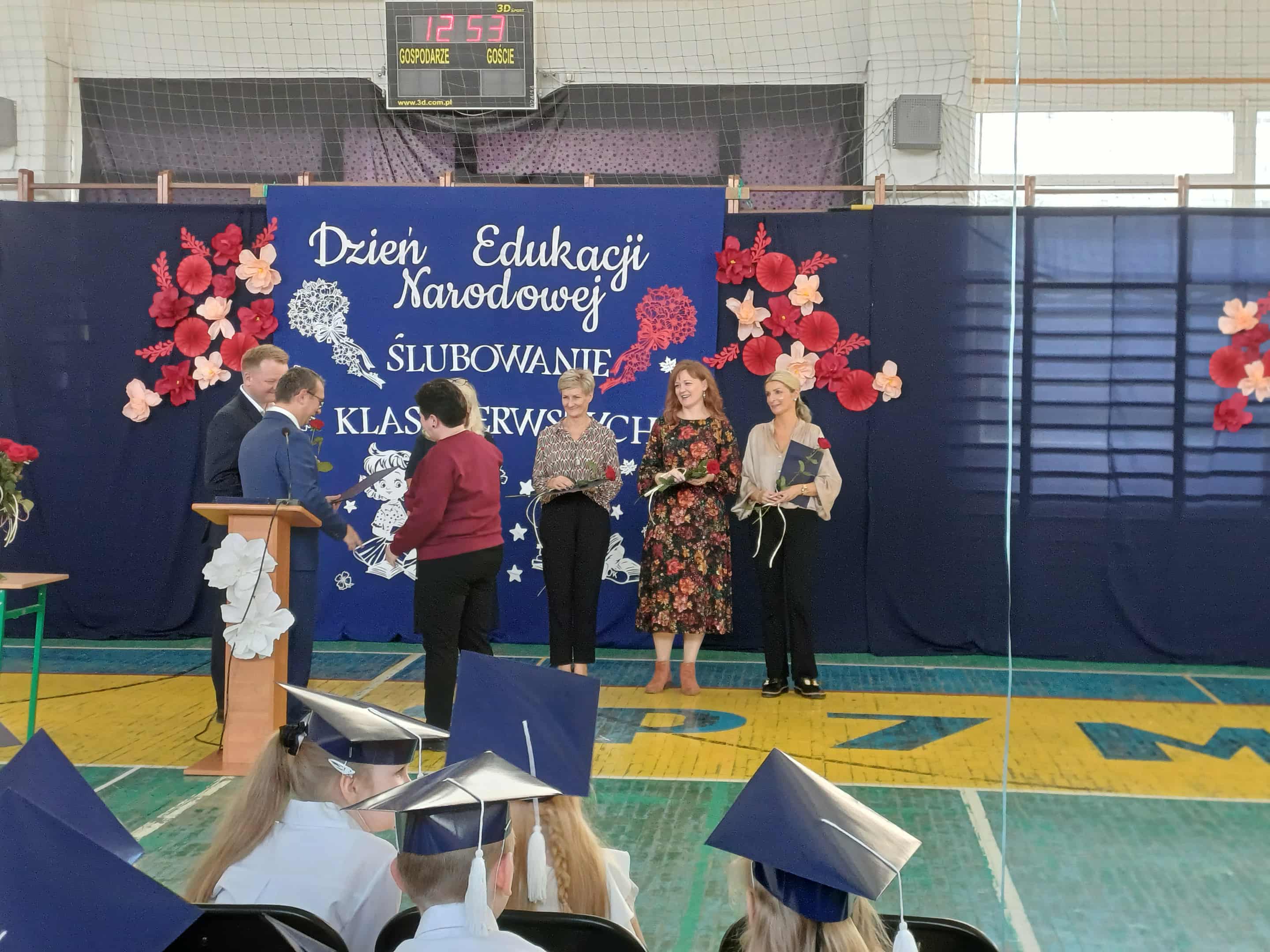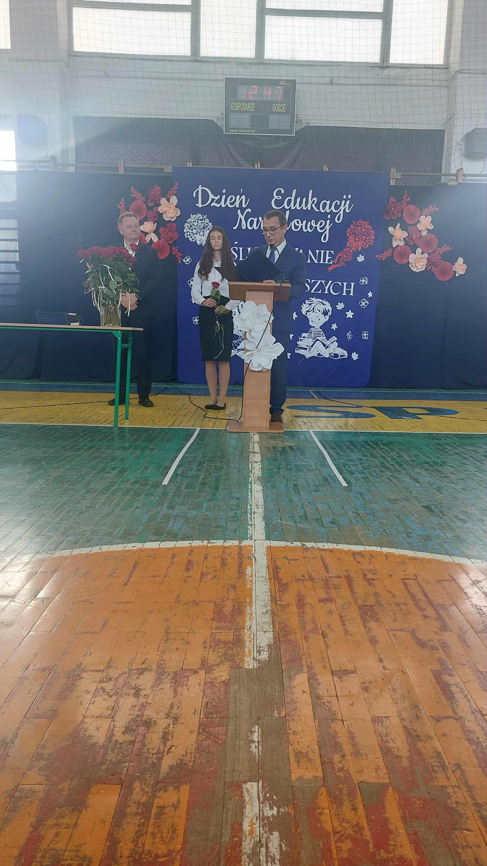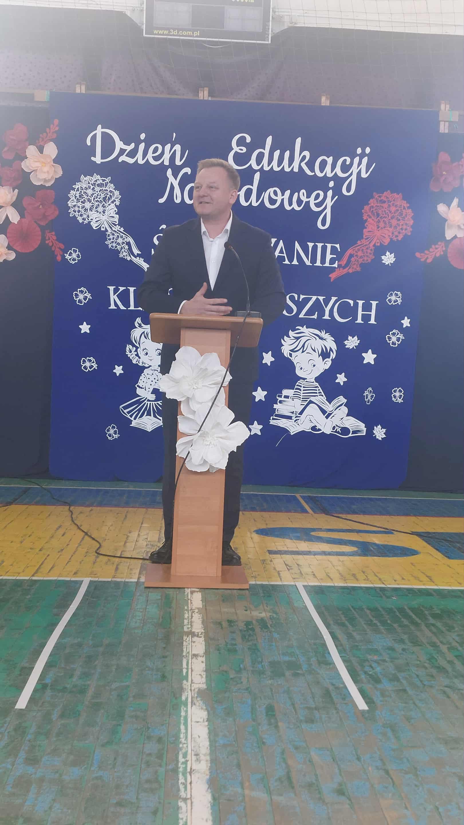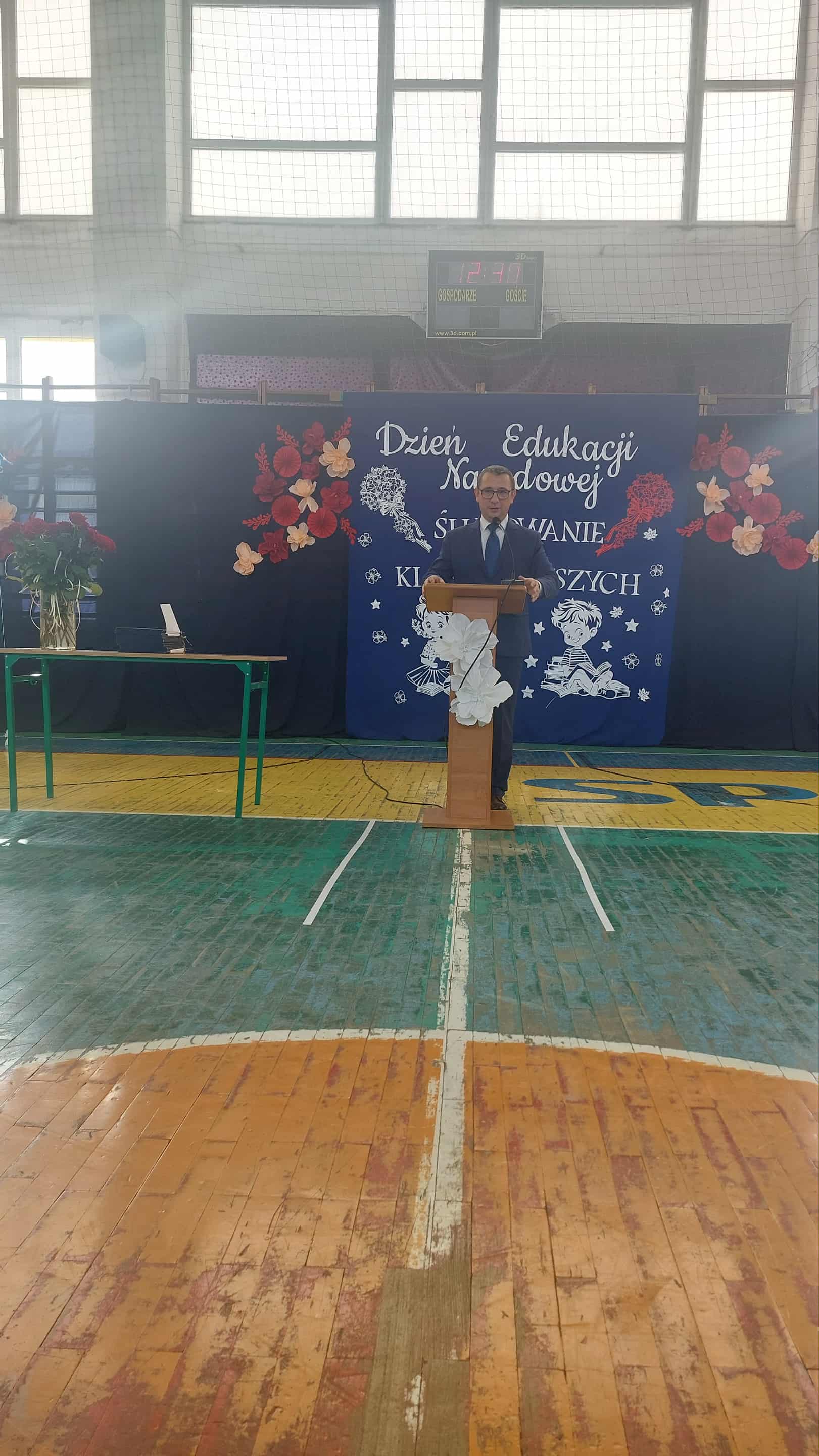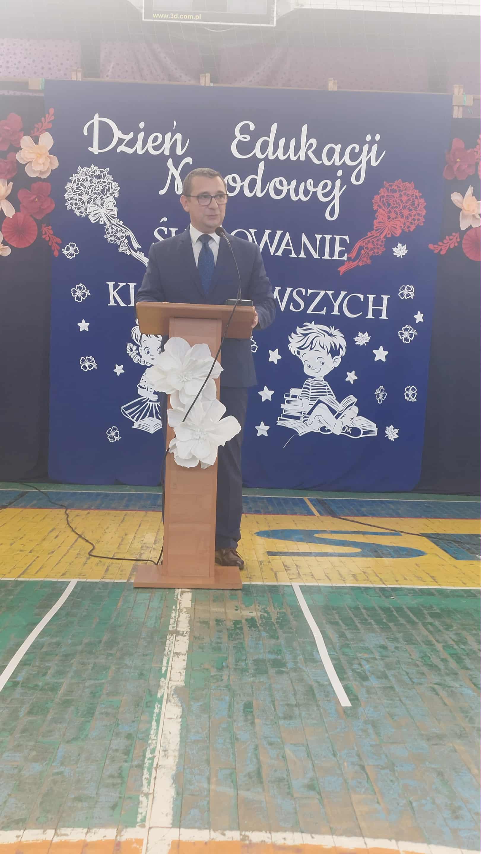 Po części artystycznej głos zabrał dyrektor szkoły, pan Mariusz Lempek, który podziękował nauczycielom, uczniom, pracownikom administracji i rodzicom. W swoim wystąpieniu podkreślił znaczenie edukacji, współpracy i wzajemnego szacunku w codziennej pracy szkolnej.