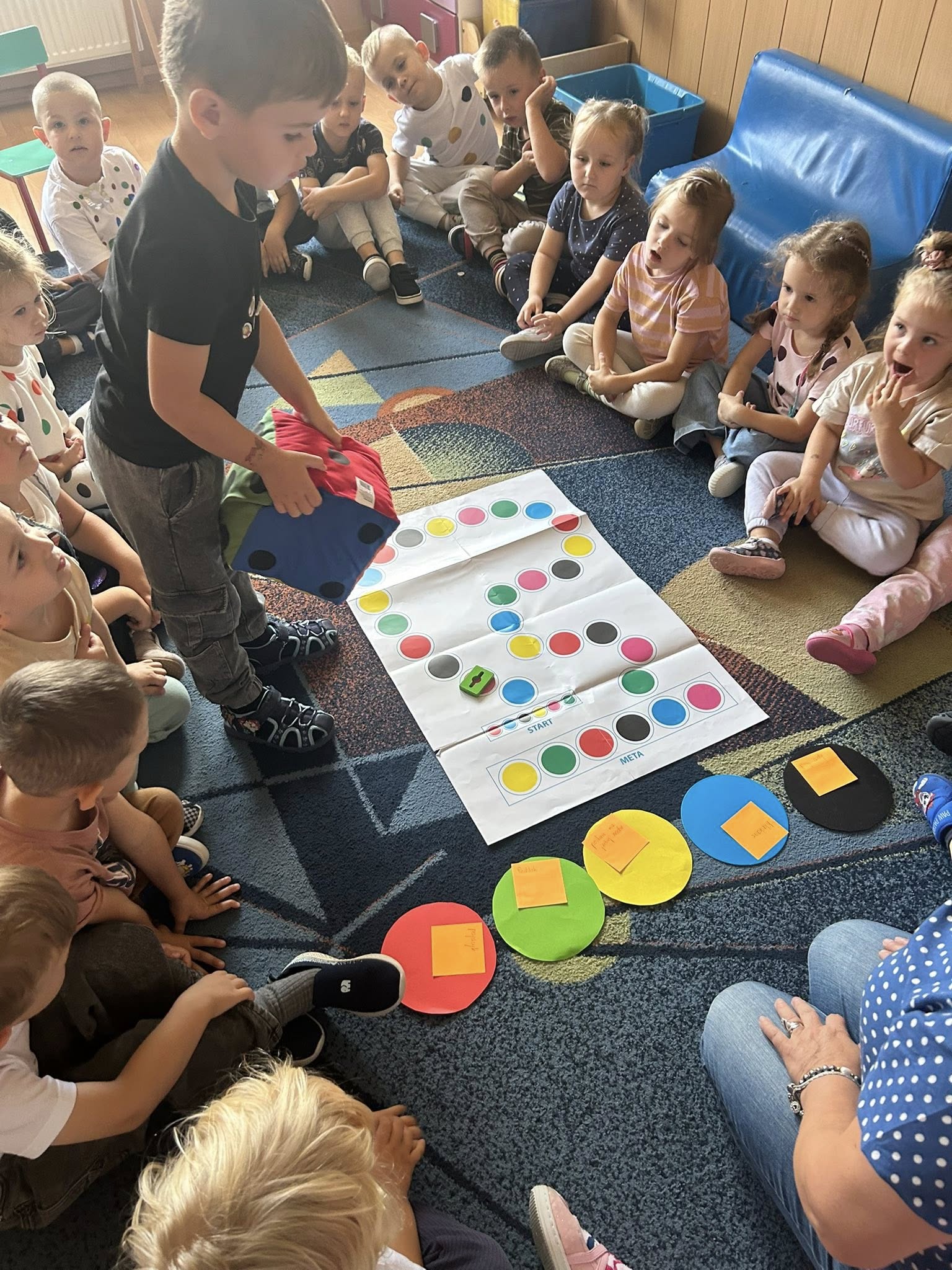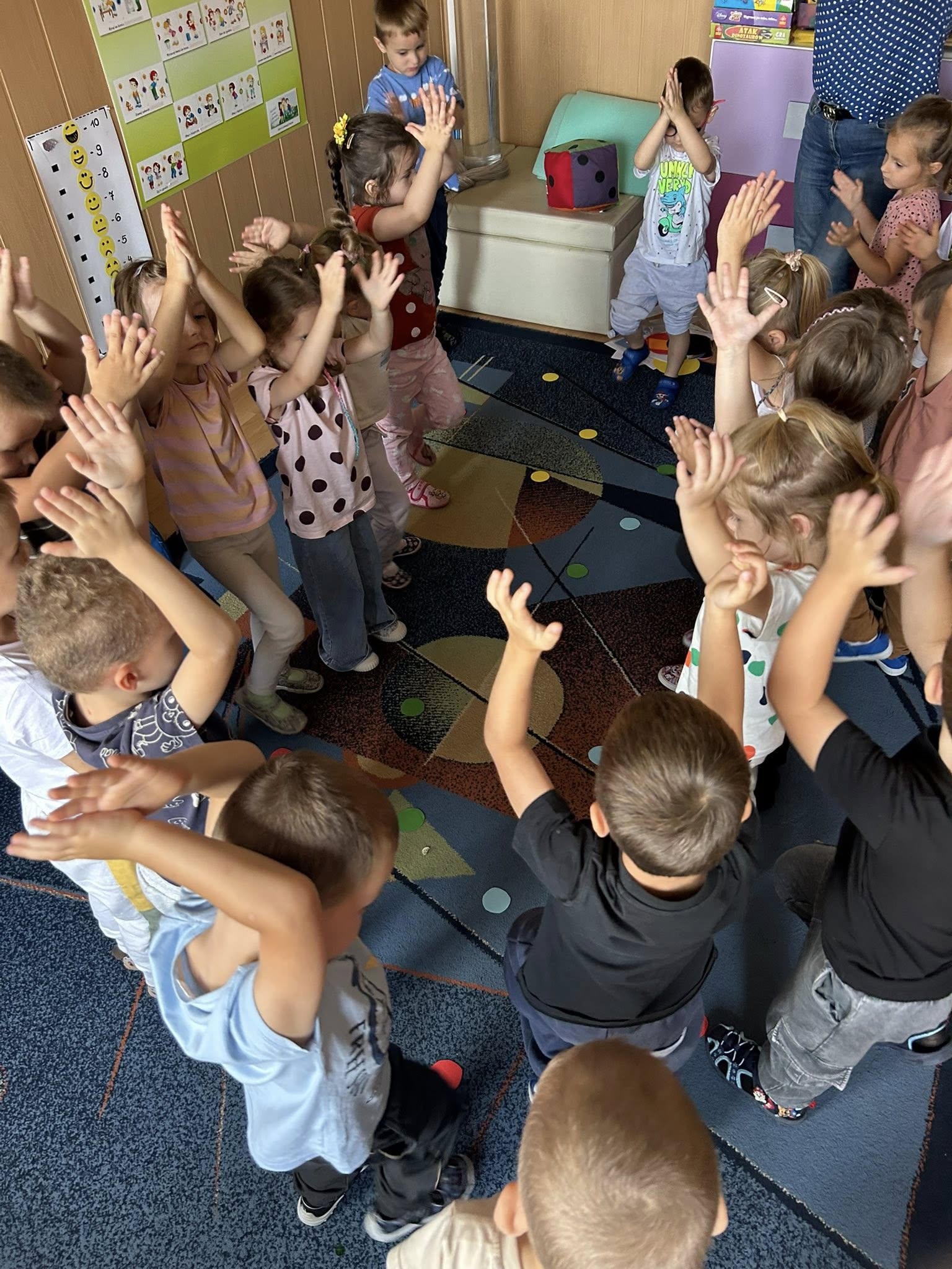 15 września w grupie „Księżyce" obchodzono Dzień Kropki. Dzieci uczestniczyły w różnorodnych zabawach tematycznych rozwijających kreatywność, wyobraźnię oraz umiejętność współpracy. Wysłuchały także opowiadania zaprezentowanego przez nauczyciela,które zachęcało je do wiary we własne możliwości. Wspólne aktywności sprzyjały integracji grupy, budowaniu pozytywnych relacji oraz tworzeniu radosnej i twórczej atmosfery.