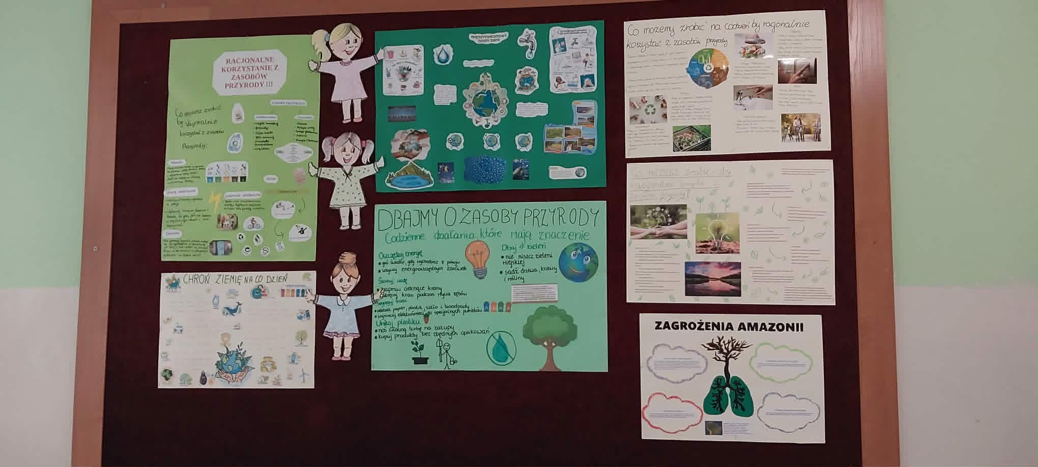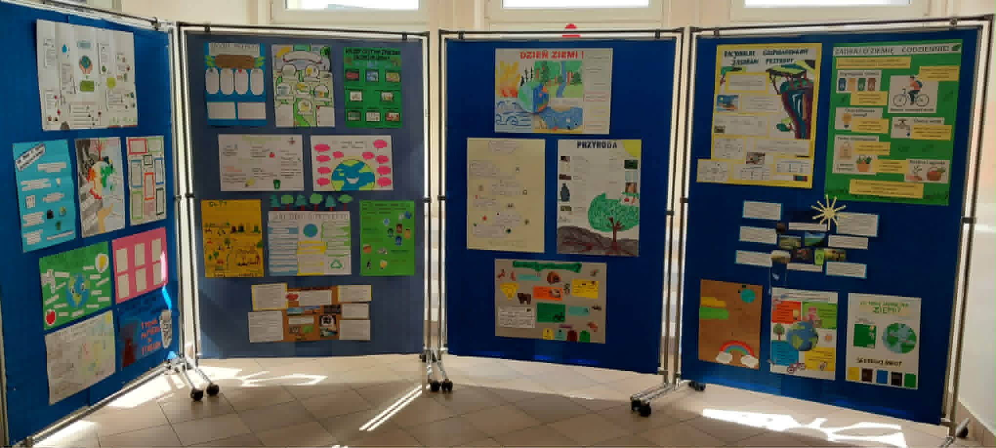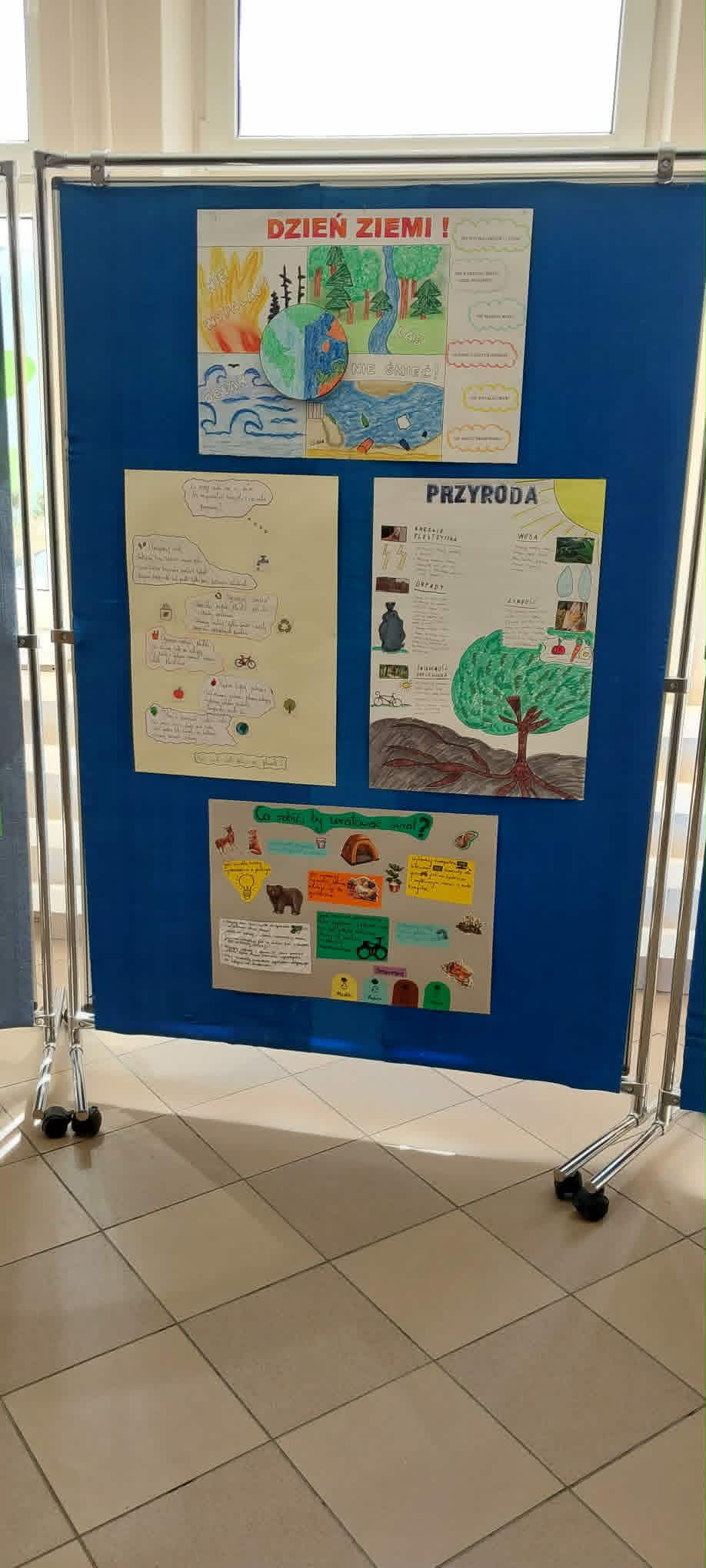 Dzień Ziemi to święto obchodzone corocznie 22 kwietnia. To czas kiedy ludzie na całym świecie łączą siły, aby uświadomić wszystkim, że wspaniałe dary przyrody trzeba wykorzystywać mądrze, tak aby starczyło ich dla przyszłych pokoleń. Ziemia jest naszym domem, a więc powinniśmy o nią dbać. Uczniowie kl. IV - VIII na lekcjach przyrody, biologii, geografii i godzin wychowawczych oglądali filmy i prezentacje o tematyce ekologicznej, rozwiązywali quizy i zagadki wzbogacając swoje wiadomości o zasadach życia w zgodzie z otaczającą naturą. Na wykonanych plakatach i pracach plastycznych przedstawili co robić na co dzień, by racjonalnie korzystać z zasobów przyrody. Wykorzystując grę ekologiczną w aplikacji ekoeksperymentarium.pl dokonywali wyborów prowadzących do właściwego gospodarowania wodą, energią elektryczną, odpadami. Uczniowie i nauczyciele tego dnia ubrali się na zielono, podkreślając w ten sposób swoją troskę o środowisko naturalne. W klasach założone zostały ogródki kwiatowo - warzywne. Grupa uczniów kl. VII - VIII wzięła udział w Powiatowym Konkursie Przyrodniczym z okazji Dnia Ziemi. W gospodarstwach domowych wspólnie z rodzicami zbierają zużyte baterie, plastikowe korki, segregują odpady oraz dbają o najbliższe otoczenie swojego miejsca zamieszkania.