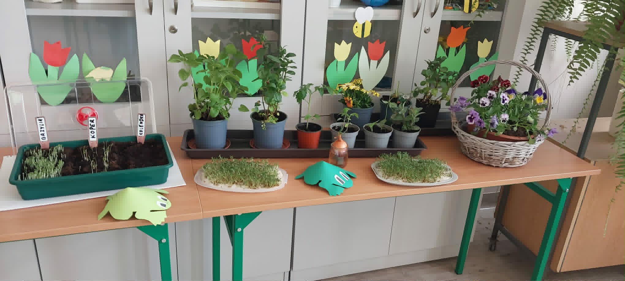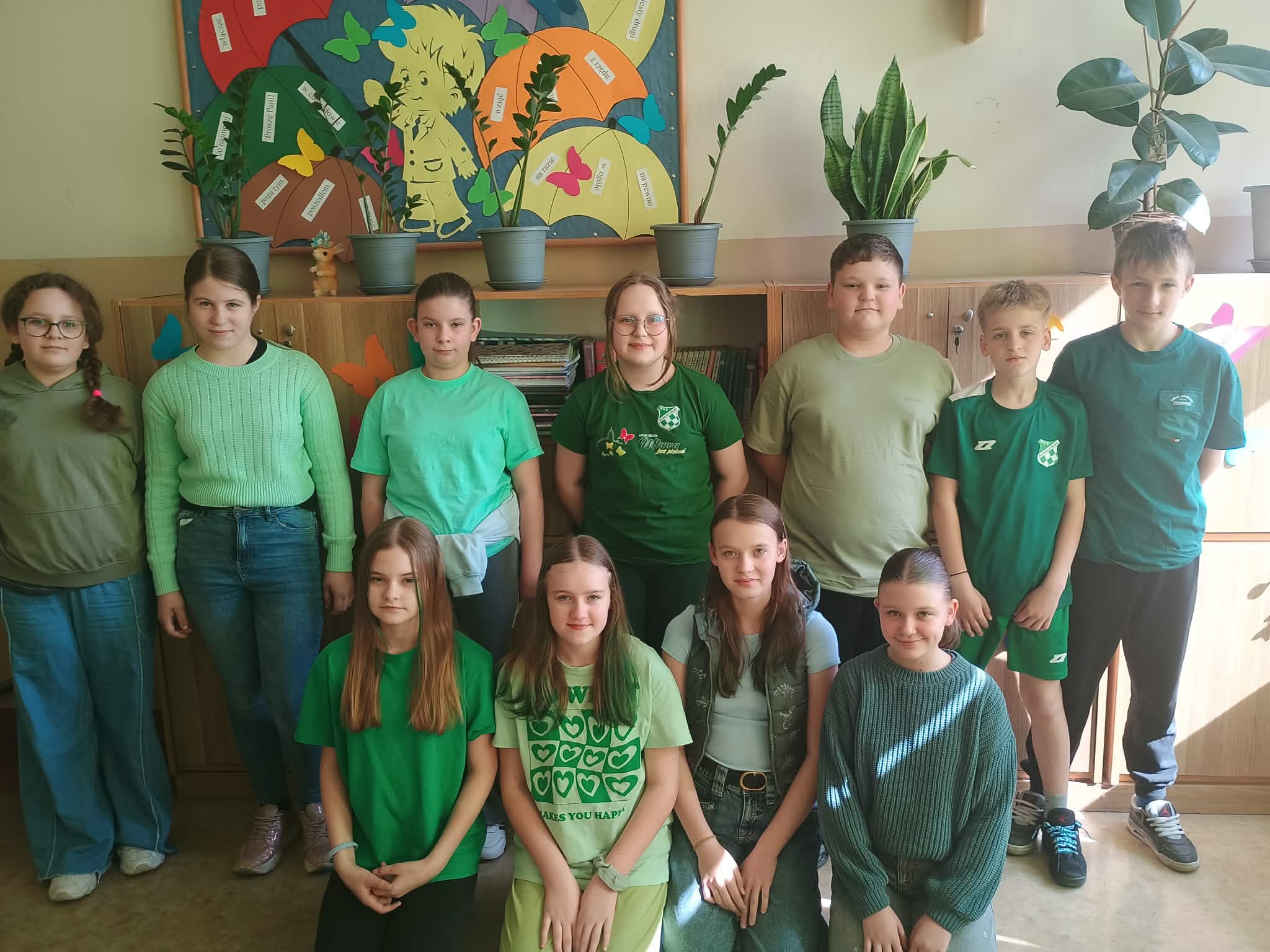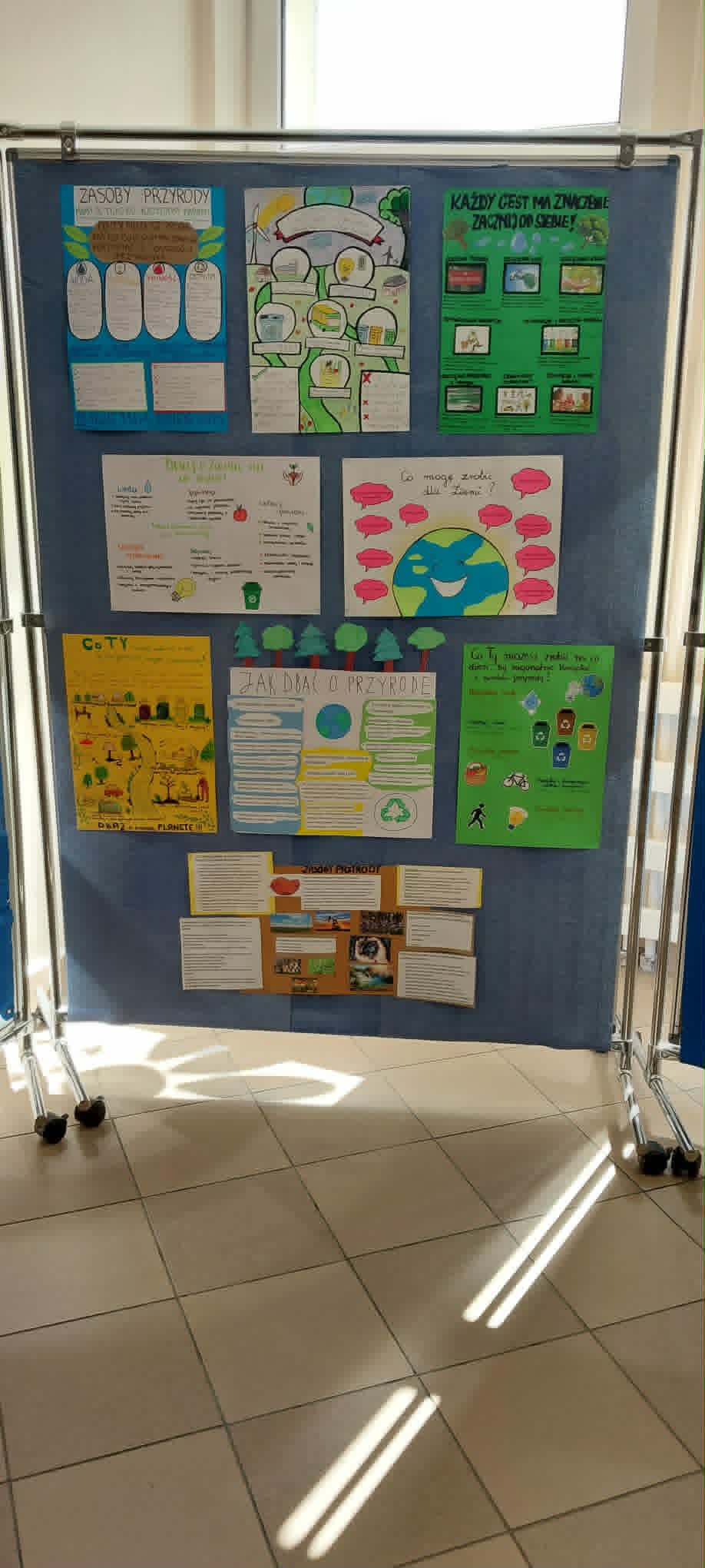 Dzień Ziemi to święto obchodzone corocznie 22 kwietnia. To czas kiedy ludzie na całym świecie łączą siły, aby uświadomić wszystkim, że wspaniałe dary przyrody trzeba wykorzystywać mądrze, tak aby starczyło ich dla przyszłych pokoleń. Ziemia jest naszym domem, a więc powinniśmy o nią dbać. Uczniowie kl. IV - VIII na lekcjach przyrody, biologii, geografii i godzin wychowawczych oglądali filmy i prezentacje o tematyce ekologicznej, rozwiązywali quizy i zagadki wzbogacając swoje wiadomości o zasadach życia w zgodzie z otaczającą naturą. Na wykonanych plakatach i pracach plastycznych przedstawili co robić na co dzień, by racjonalnie korzystać z zasobów przyrody. Wykorzystując grę ekologiczną w aplikacji ekoeksperymentarium.pl dokonywali wyborów prowadzących do właściwego gospodarowania wodą, energią elektryczną, odpadami. Uczniowie i nauczyciele tego dnia ubrali się na zielono, podkreślając w ten sposób swoją troskę o środowisko naturalne. W klasach założone zostały ogródki kwiatowo - warzywne. Grupa uczniów kl. VII - VIII wzięła udział w Powiatowym Konkursie Przyrodniczym z okazji Dnia Ziemi. W gospodarstwach domowych wspólnie z rodzicami zbierają zużyte baterie, plastikowe korki, segregują odpady oraz dbają o najbliższe otoczenie swojego miejsca zamieszkania.