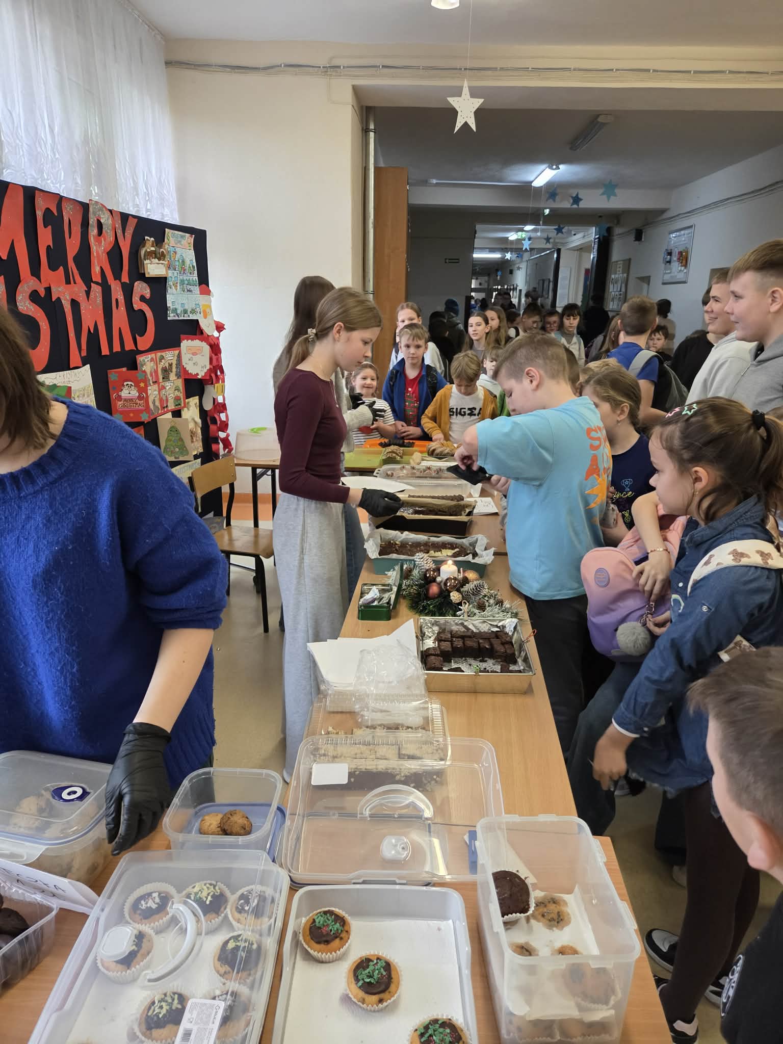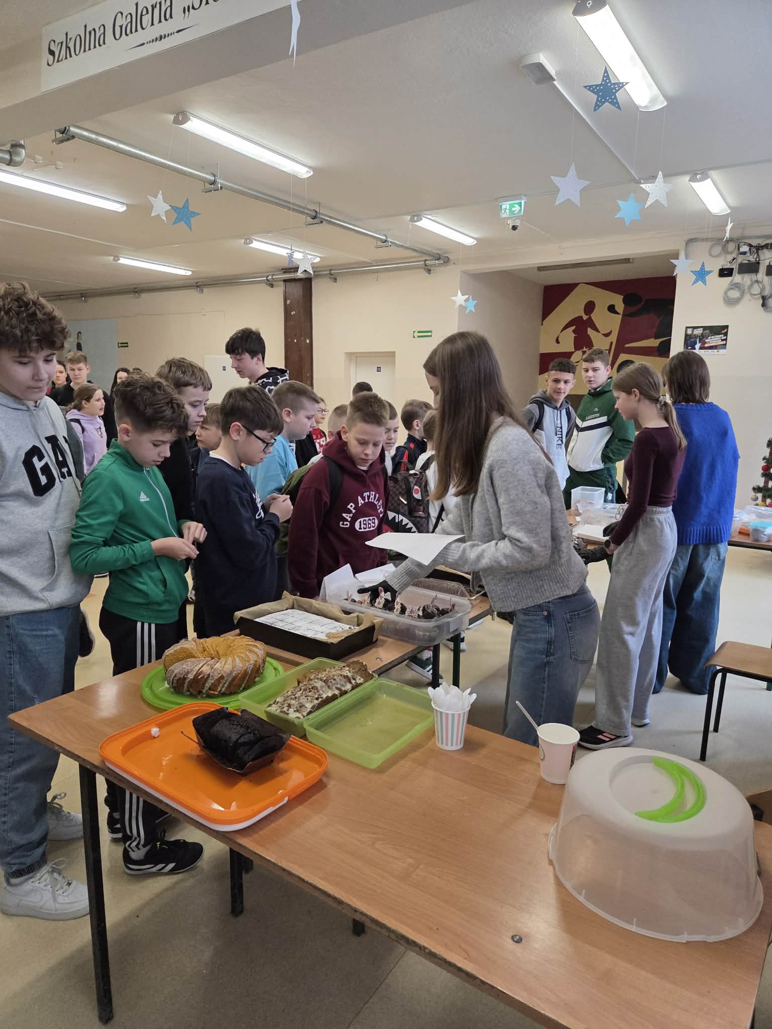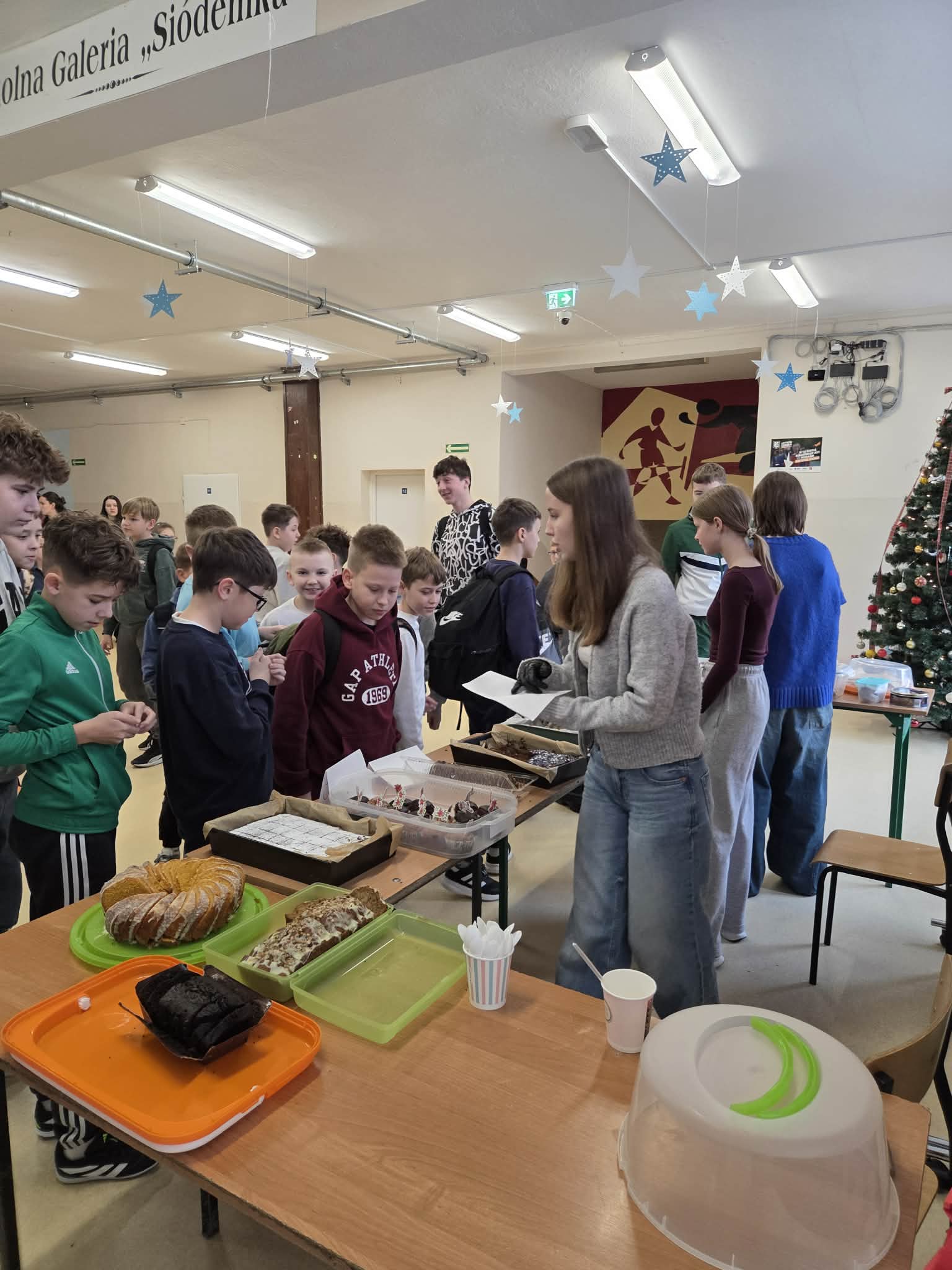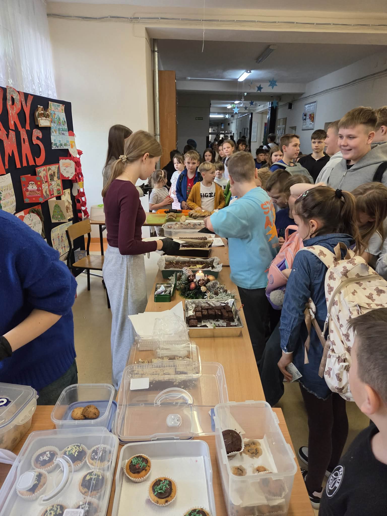 Dziś w naszej szkole zapanowała prawdziwie świąteczna atmosfera. Odbył się kiermasz świątecznych ciast, które zostały z ogromnym sercem przygotowane przez uczniów oraz ich rodziców.