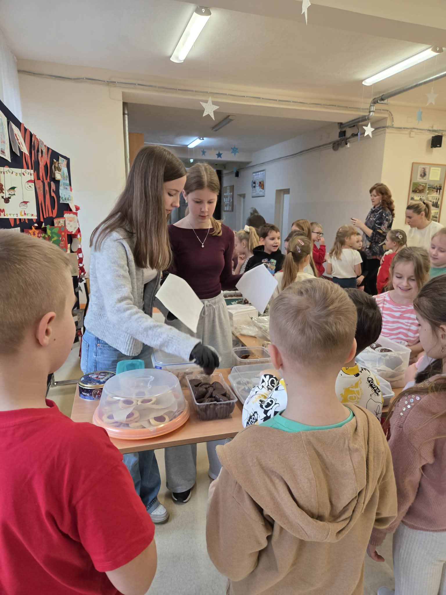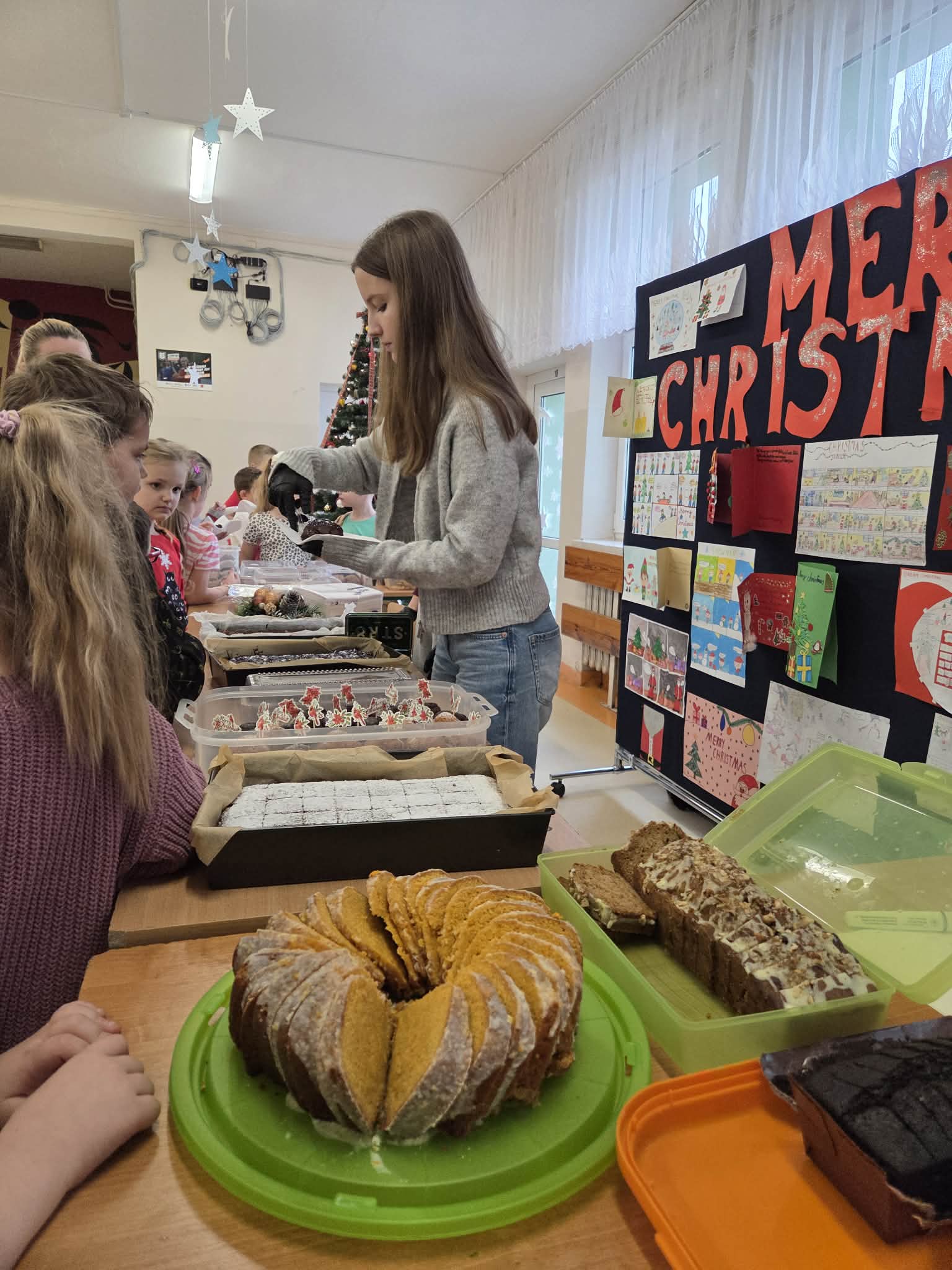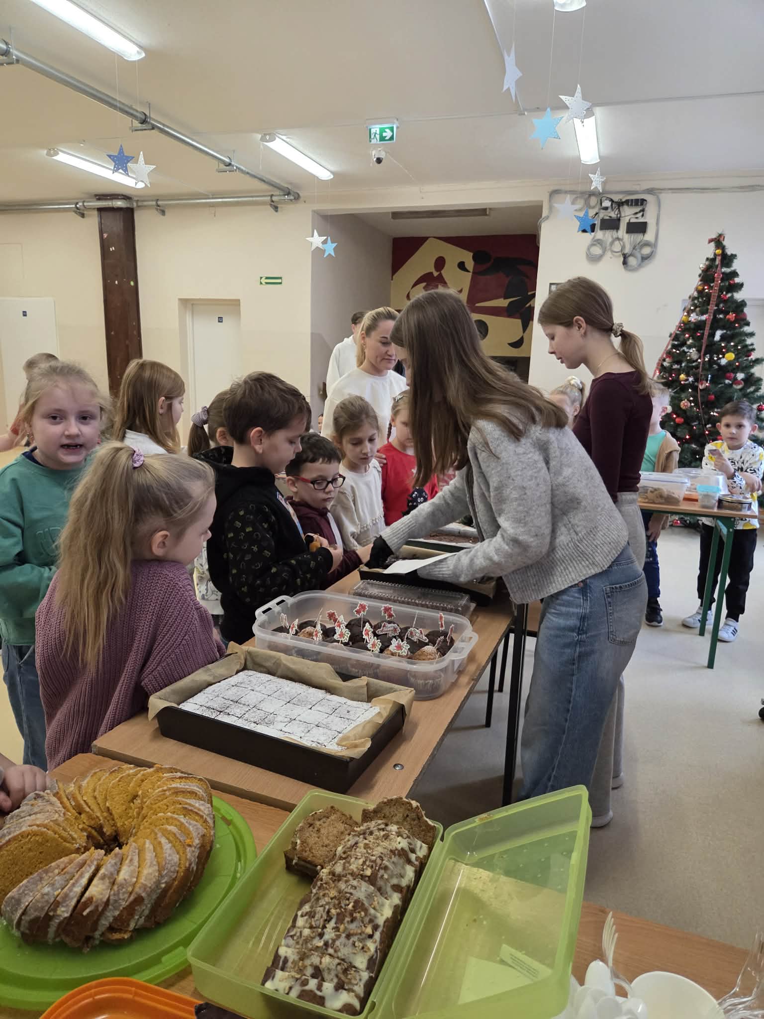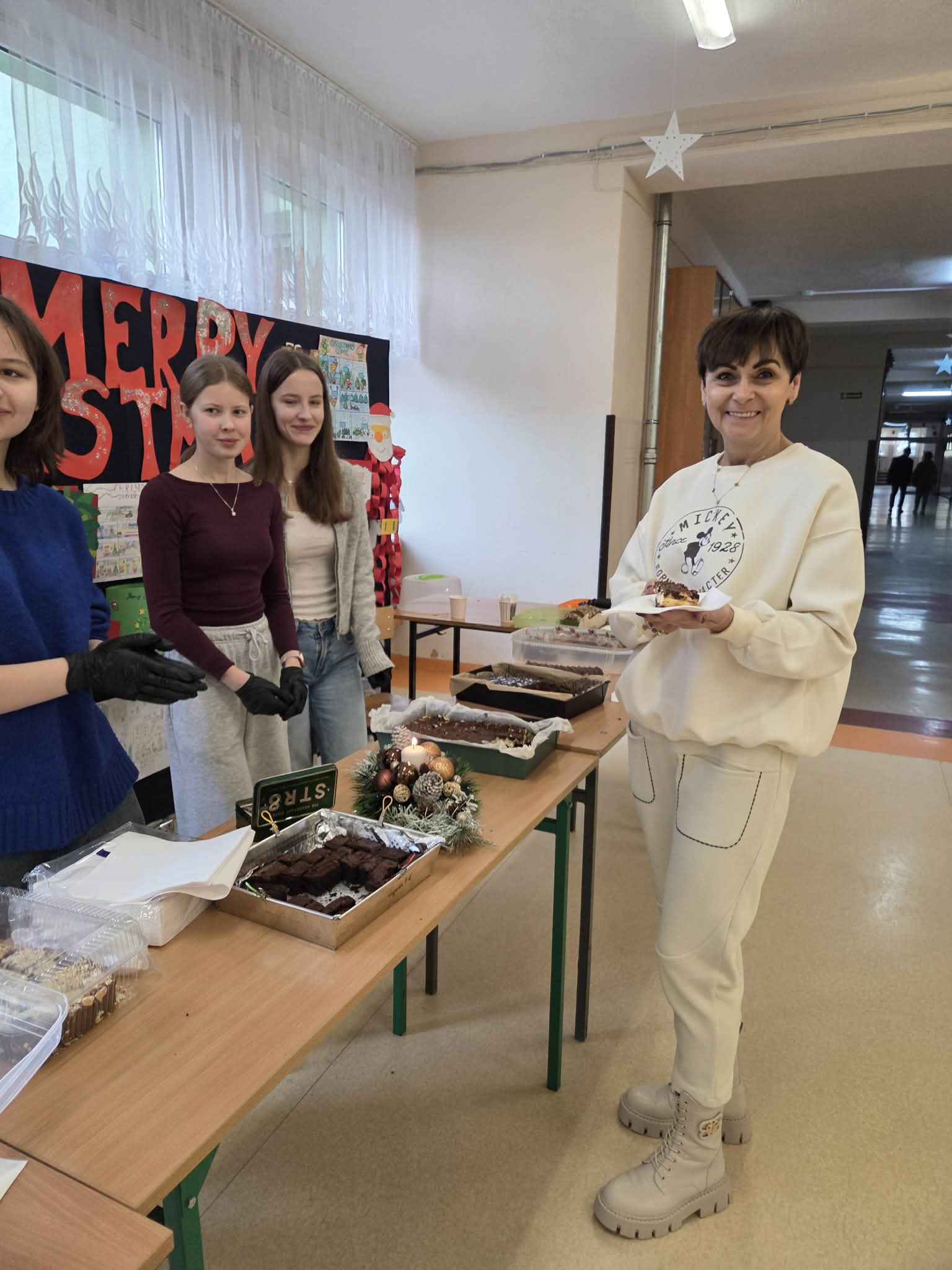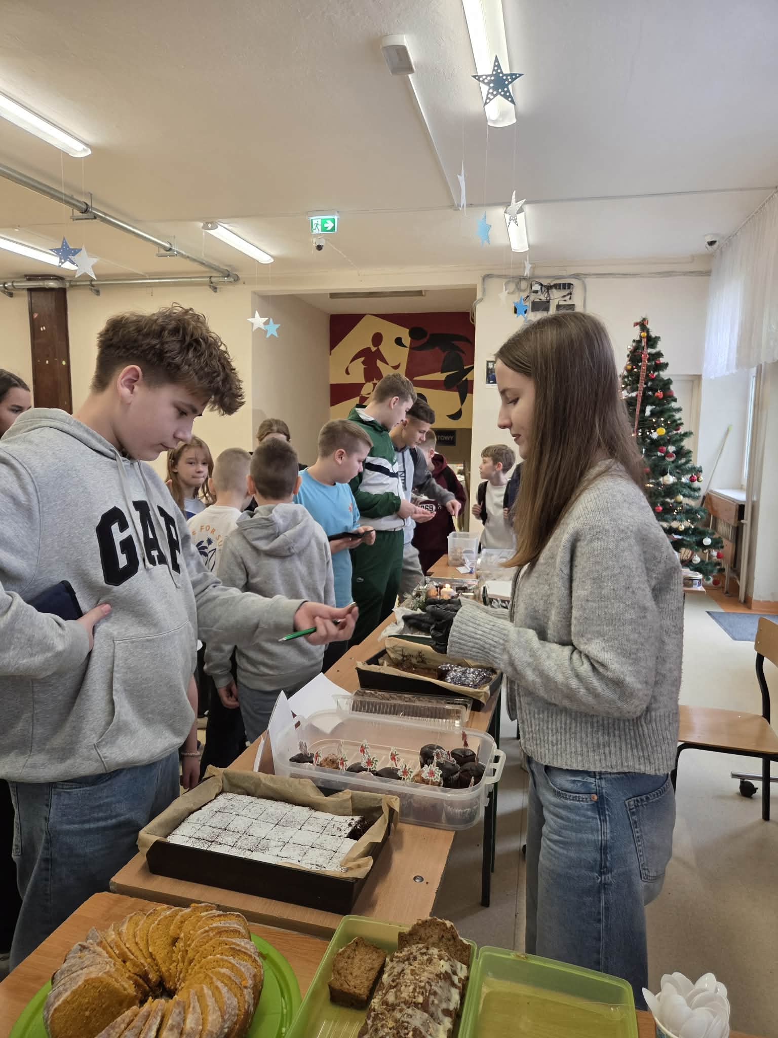 Dziś w naszej szkole zapanowała prawdziwie świąteczna atmosfera. Odbył się kiermasz świątecznych ciast, które zostały z ogromnym sercem przygotowane przez uczniów oraz ich rodziców.
