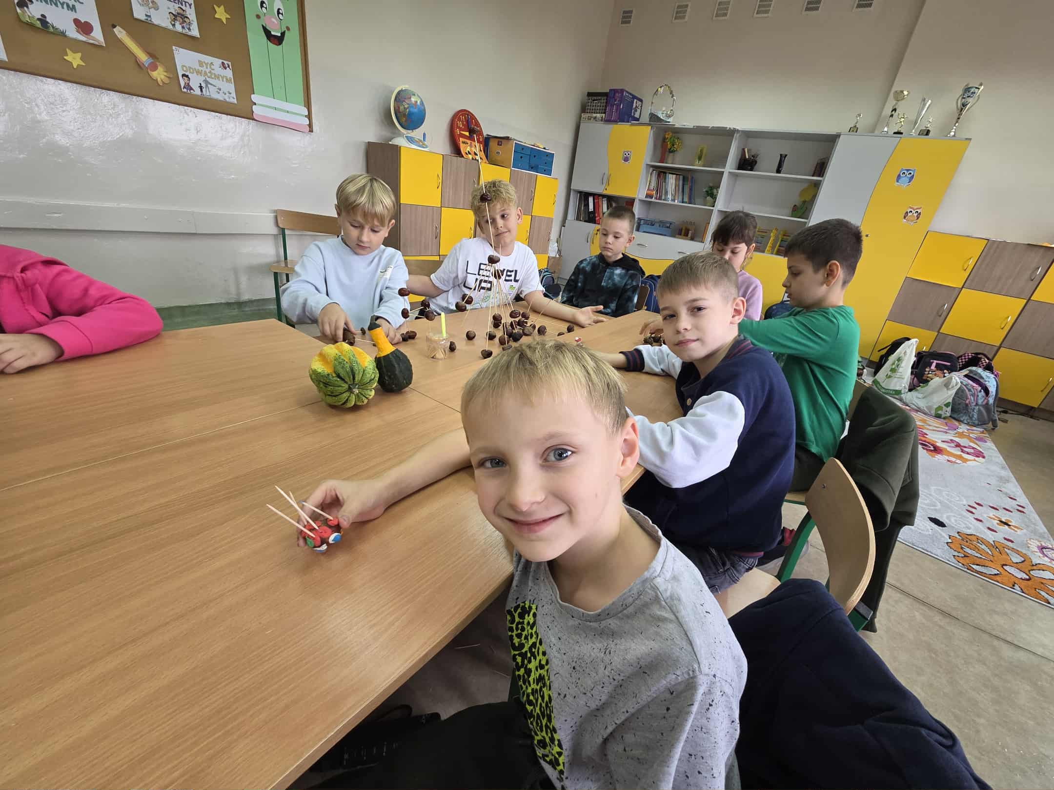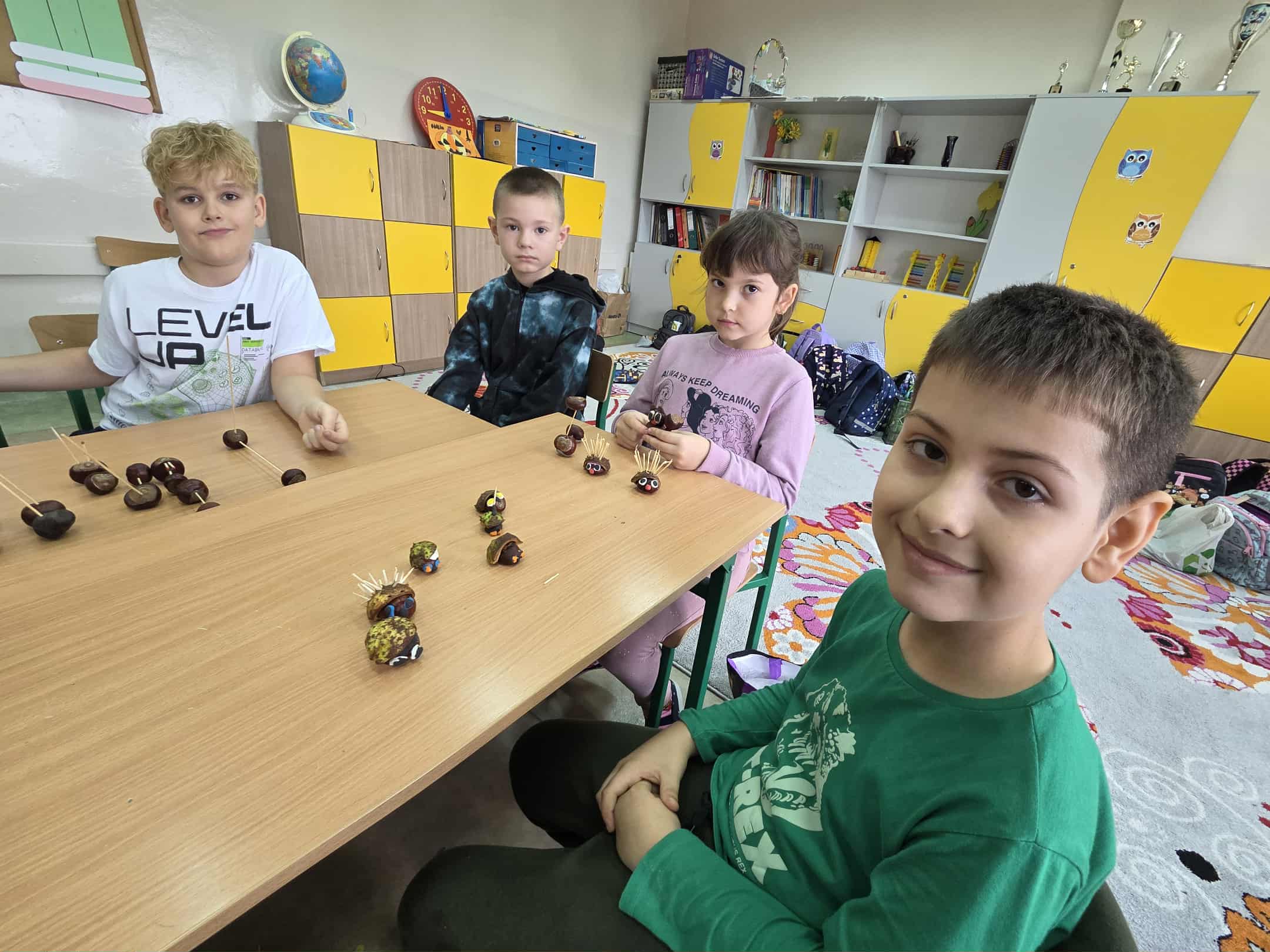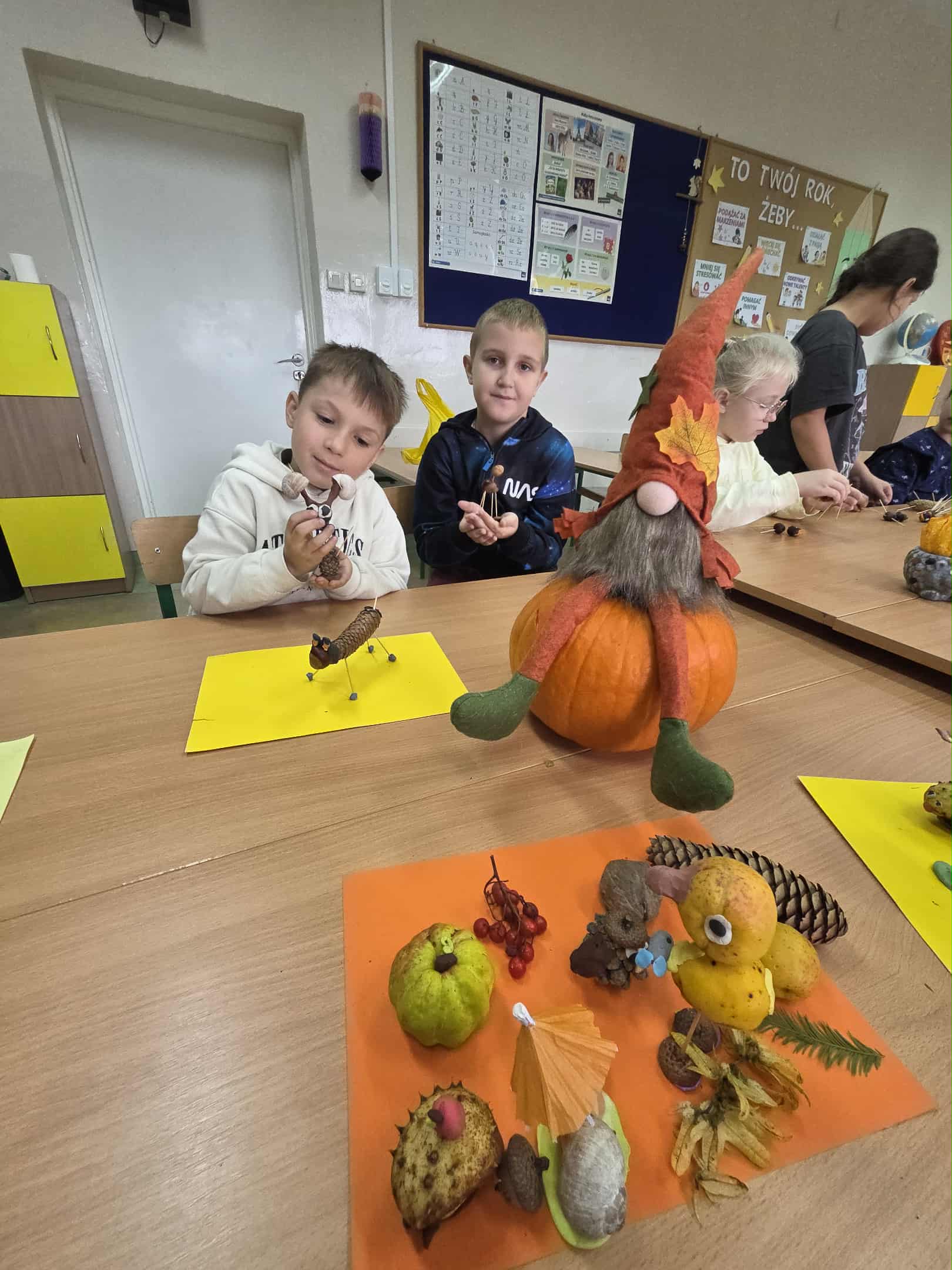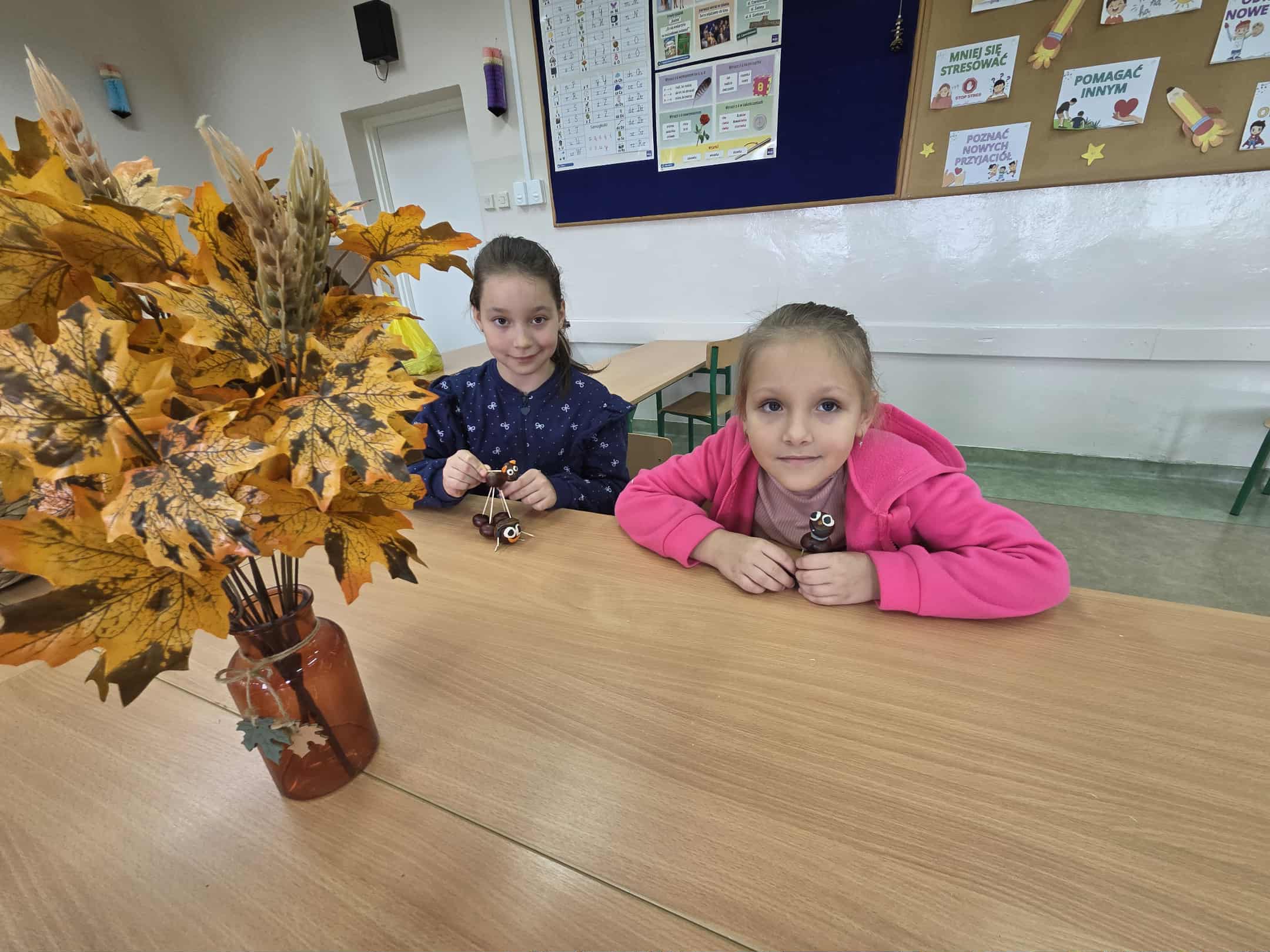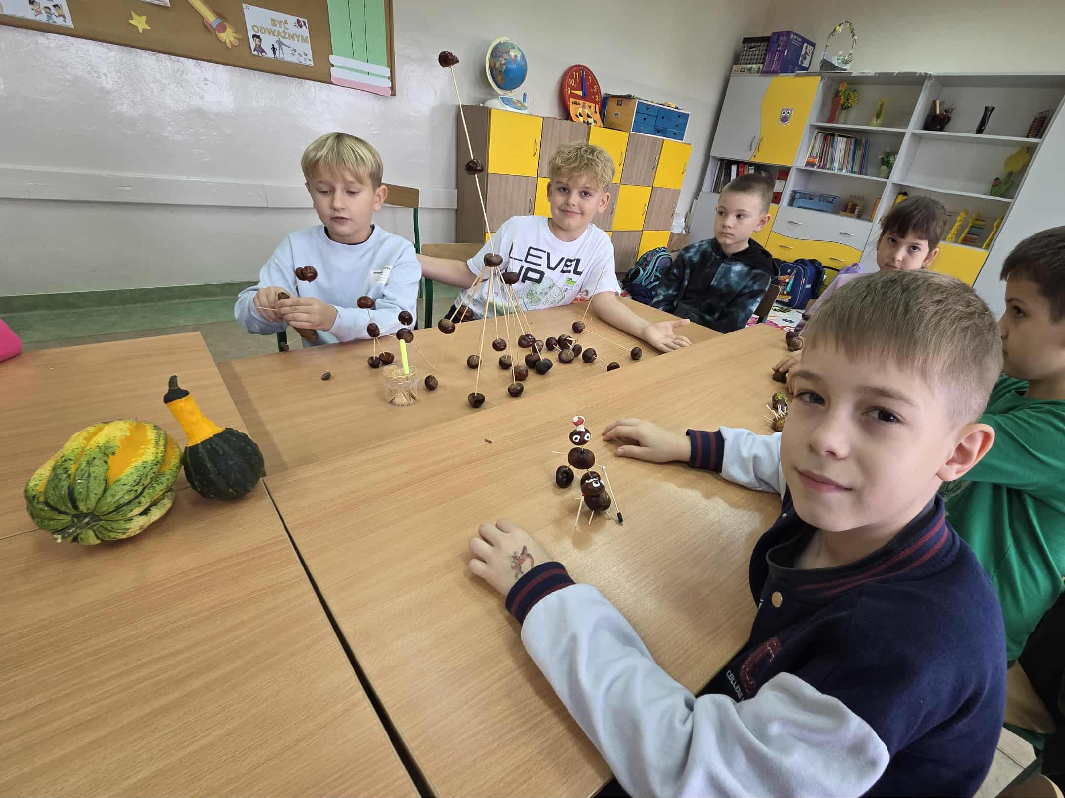 Kasztanowe ludziki i zwierzątka wykonane przez uczniów klasy II a