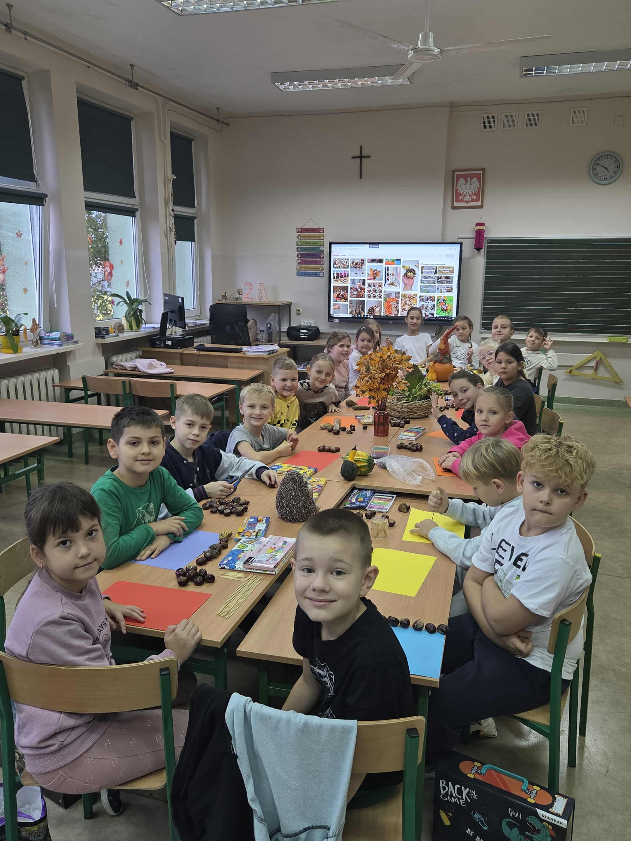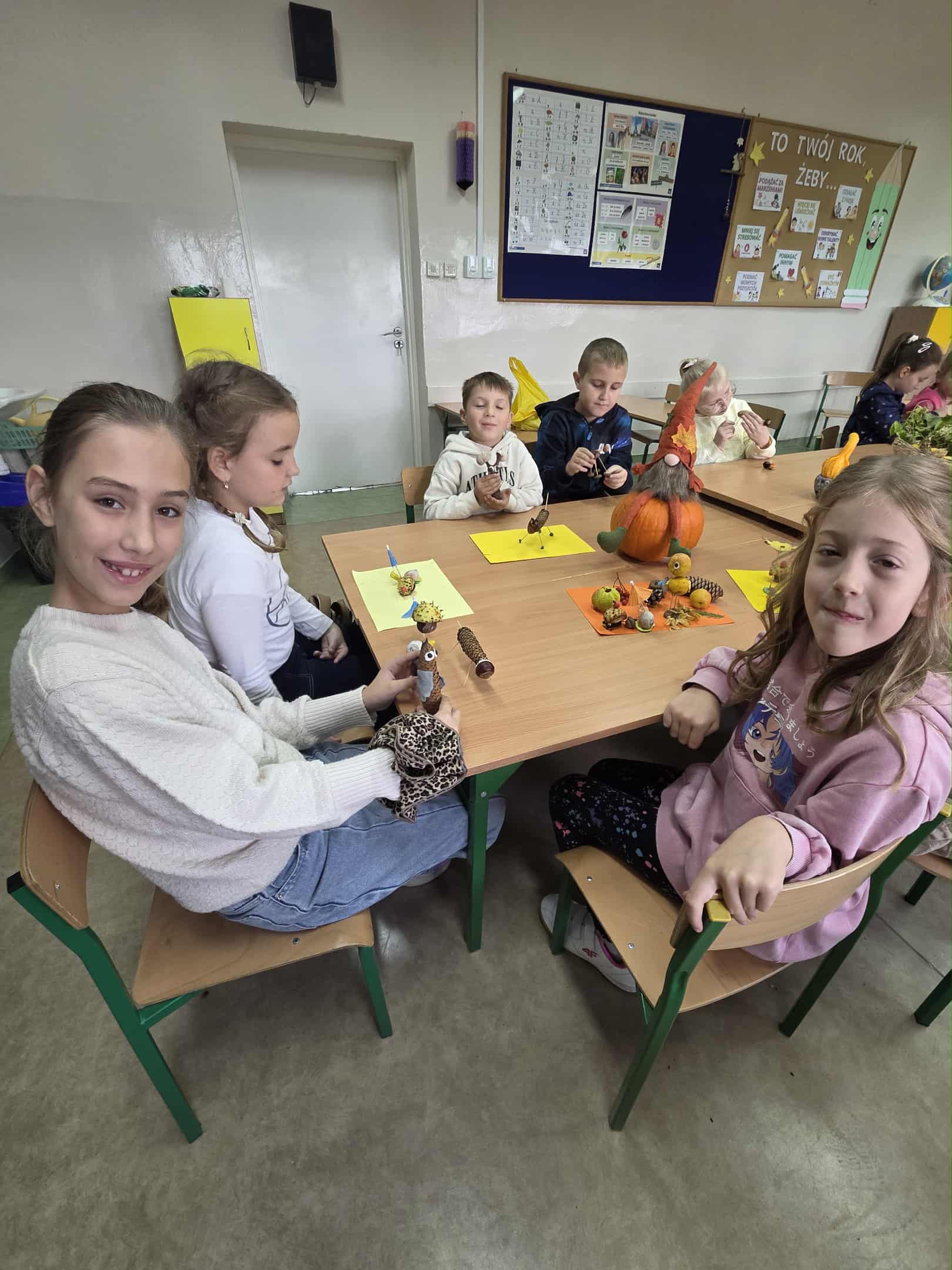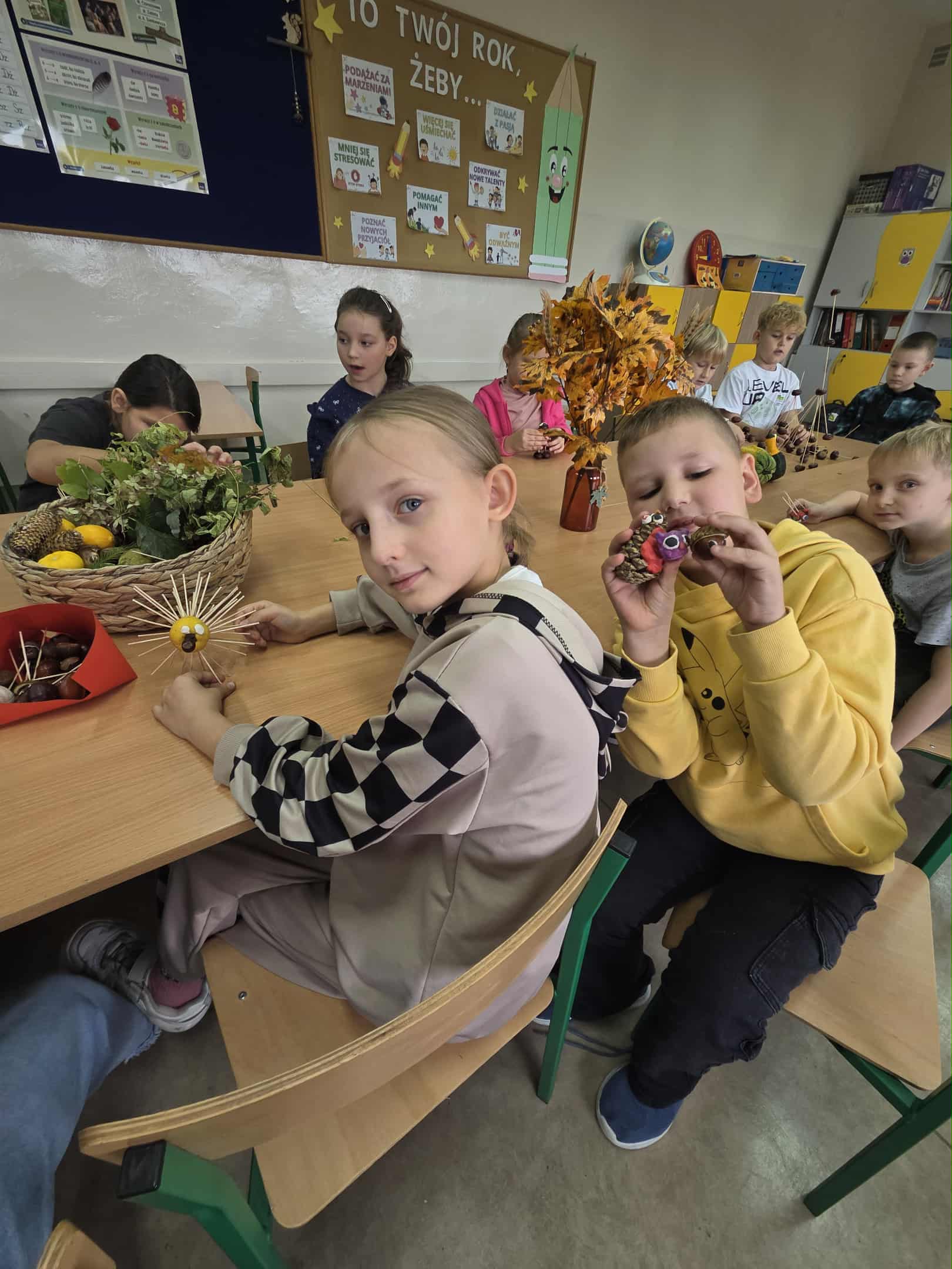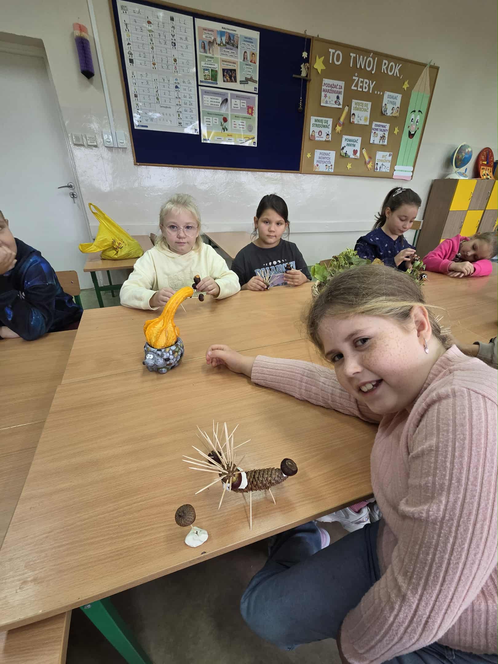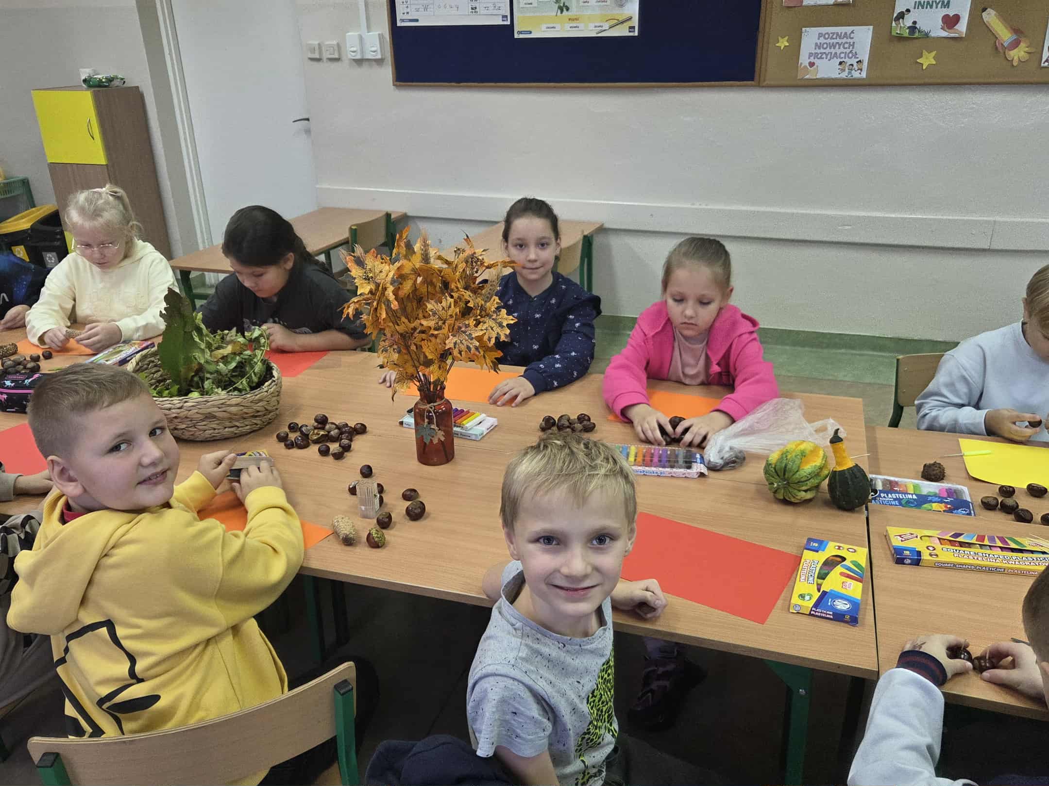Kasztanowe ludziki i zwierzątka wykonane przez uczniów klasy II a
