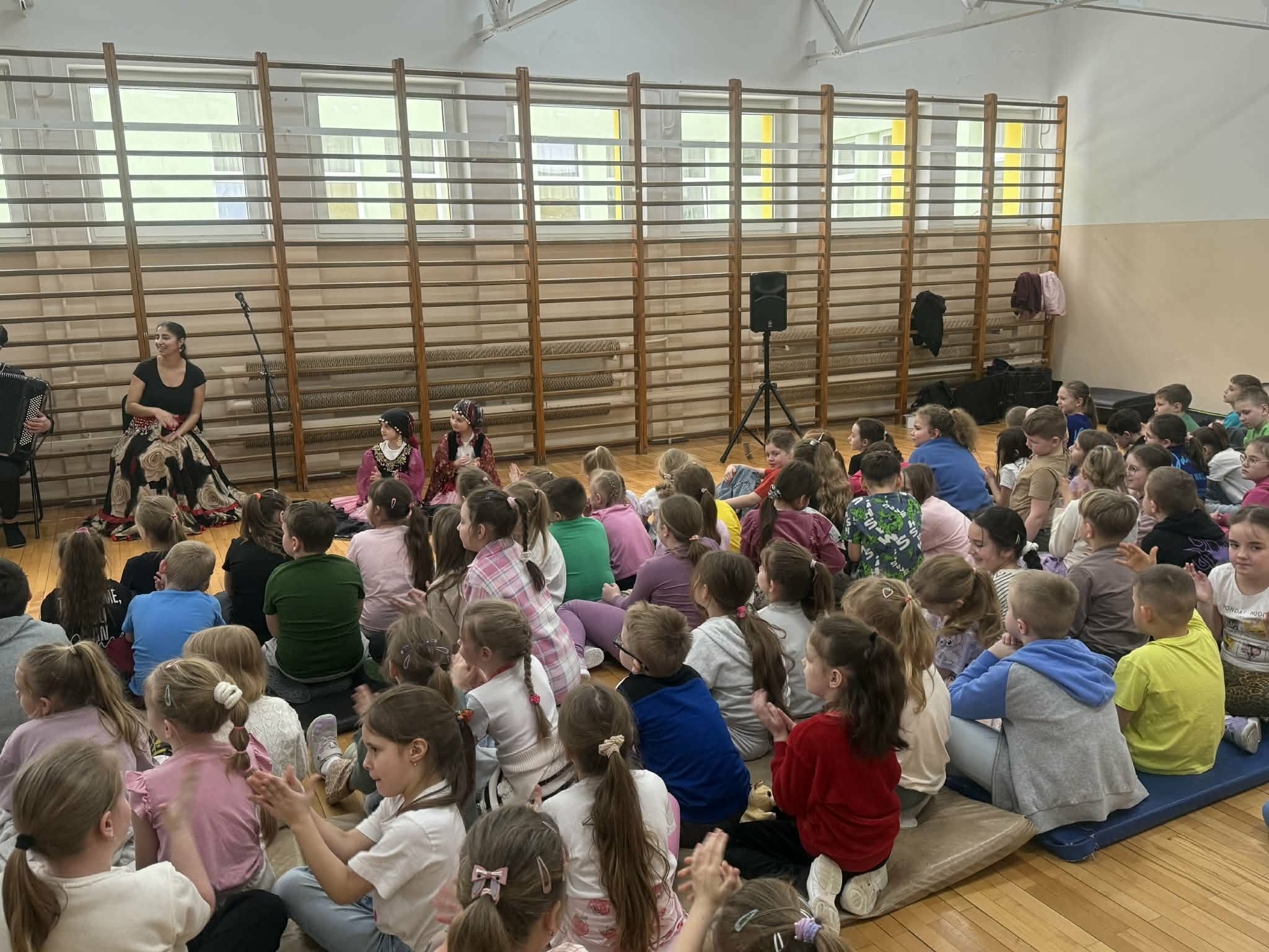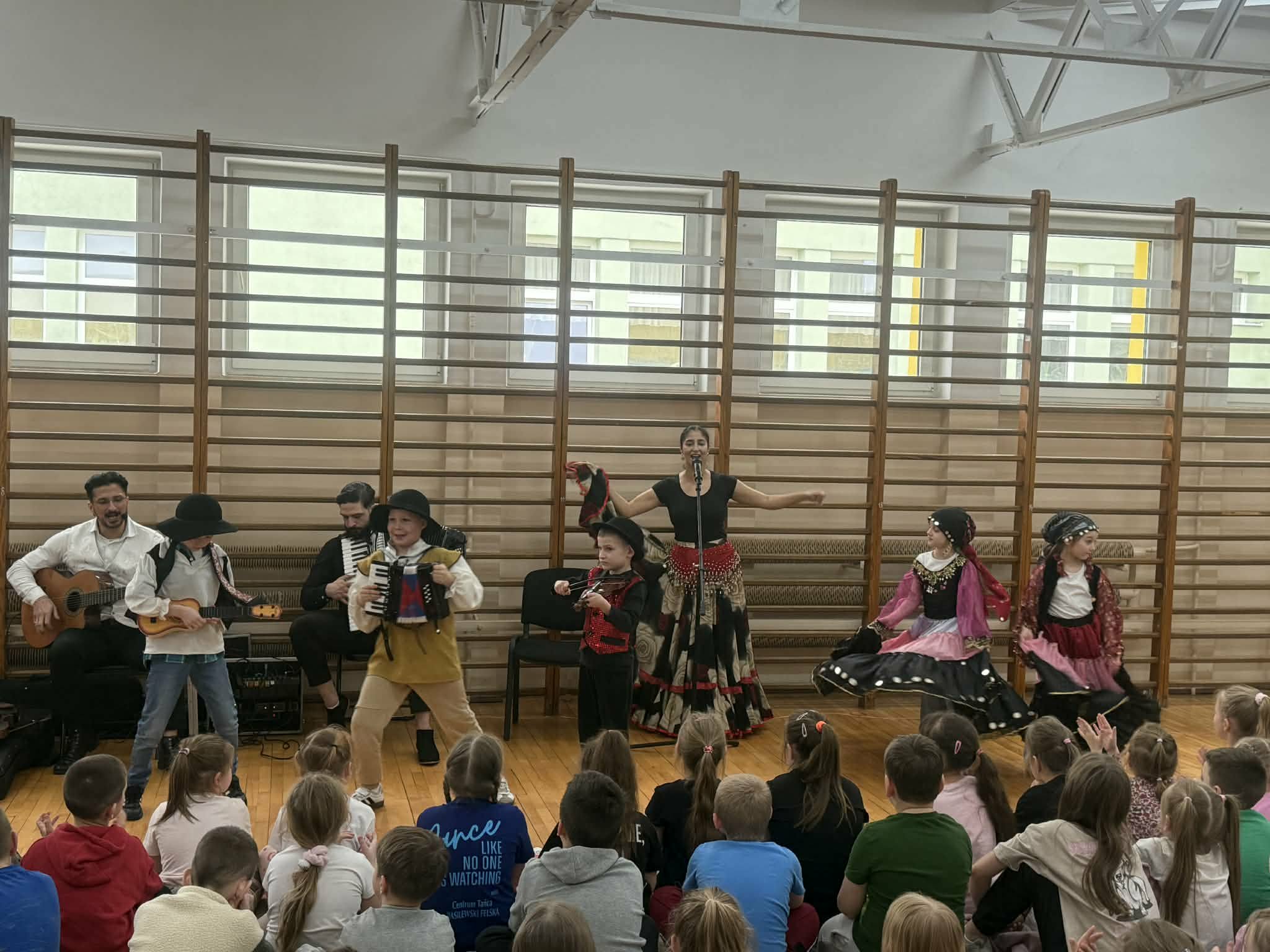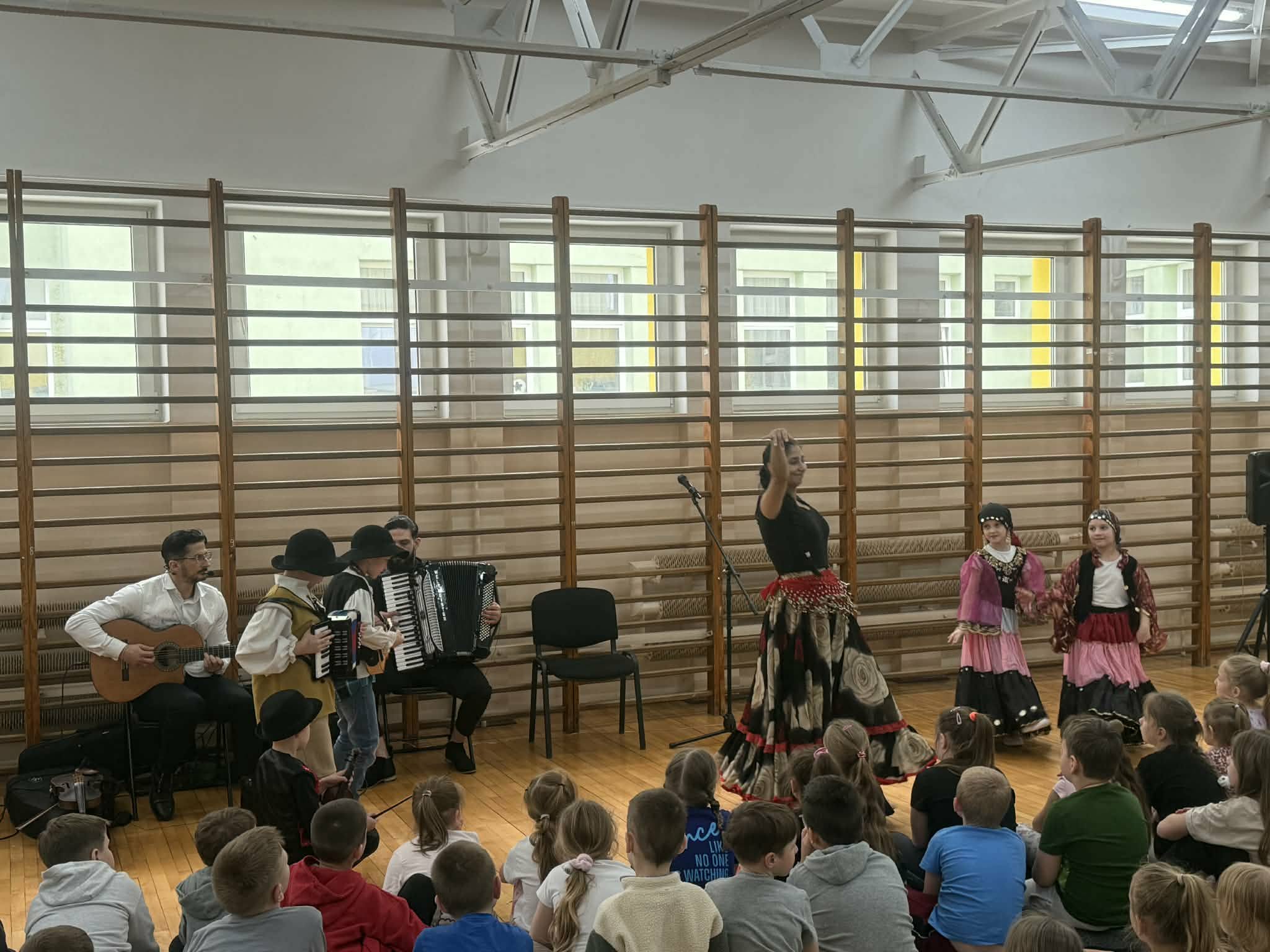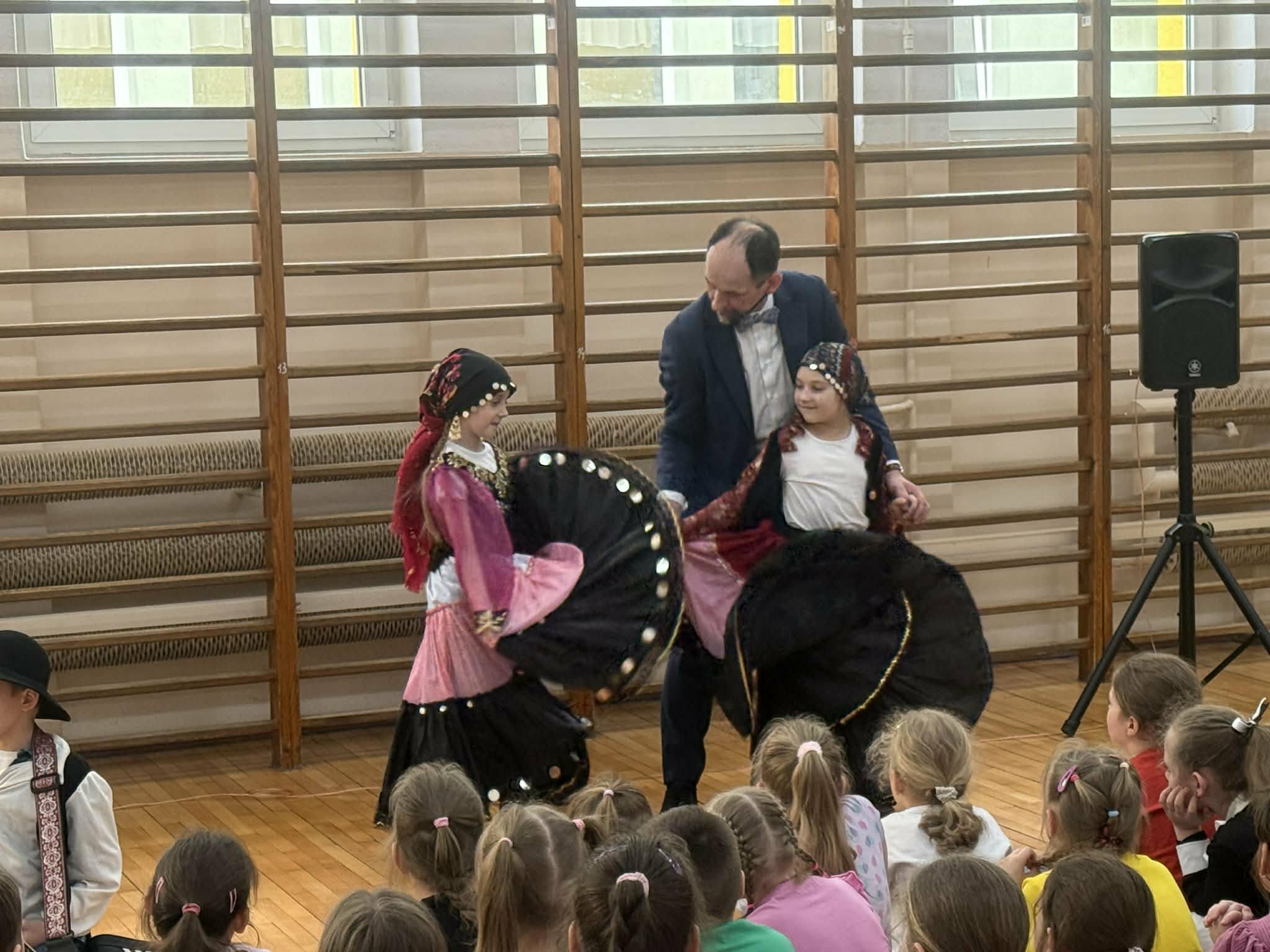 Dziś w naszej szkole odbył się wyjątkowy koncert pt. "Co w cygańskiej duszy gra", w którym uczestniczyli uczniowie klas I-III. Dzieci miały okazję wysłuchać barwnej i pełnej emocji muzyki romskiej wykonywanej na żywo. Wydarzenie odbyło się dzięki współpracy z Agencją Artystyczną "Pozytywka", która organizuje koncerty dla dzieci i młodzieży. Dzięki tej współpracy uczniowie mogą uczestniczyć w wartościowych spotkaniach muzycznych. Podczas koncertu zostały przedstawione elementy kultury i tradycji romskiej oraz charakterystyczne cechy tej muzyki. Uczniowie wysłuchali wielu utworów, w tym hymnu Romów oraz znanego Czardasz, poznając ich wyjątkowy nastrój, tempo i emocjonalny wyraz. Dzieci miały okazję wcielić się w role aktorów, przebierając się w piękne, kolorowe stroje, tańcząc i uczestnicząc w krótkich scenkach, co pozwoliło uczniom w pełni poczuć klimat prezentowanej kultury.