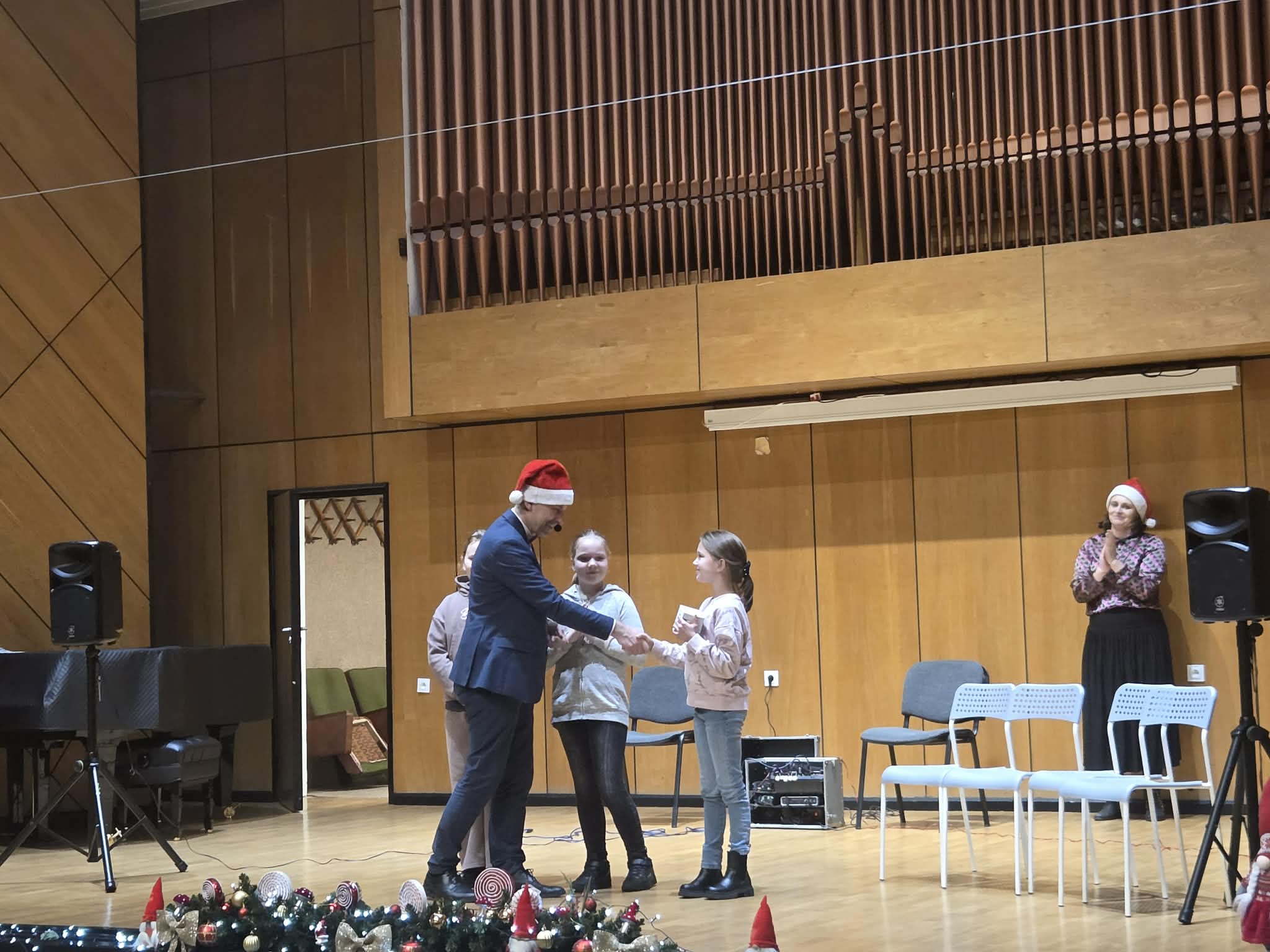 10 grudnia uczniowie klas I-III uczestniczyli w koncercie muzyczny zatytułowanym: "Przy wigilijnym stole", który wprowadził słuchaczy w świąteczny, bożonarodzeniowy nastrój. Prowadzący opowiadał o tradycjach związanych z Wigilią i śpiewaniem kolęd. Jak zawsze aktorami byli uczniowie z widowni. Wybrane dzieci odegrały scenki związane z Wigilią, a nauczyciele wspólnie śpiewali kolędy. Koncert pozwolił poczuć magię zbliżających się Świąt Bożego Narodzenia.