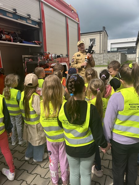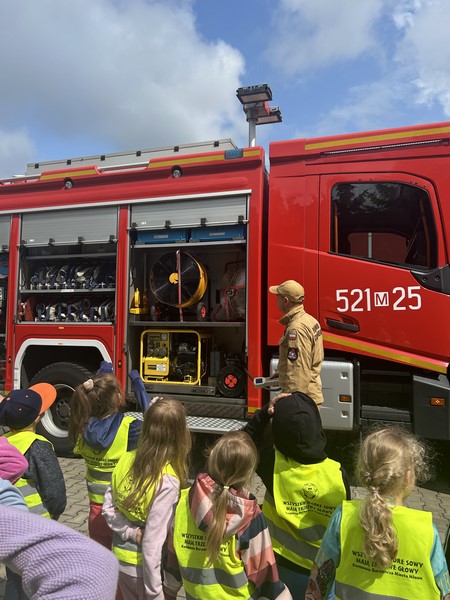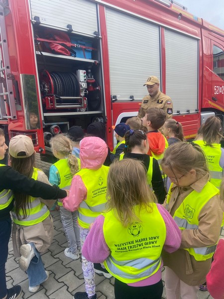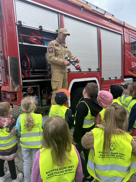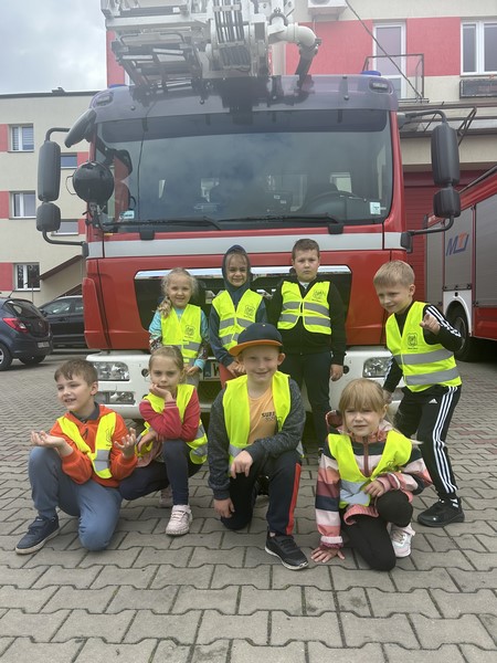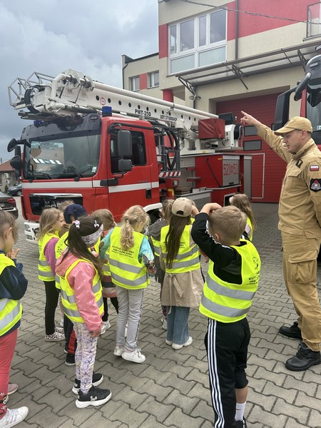 Obserwowały wóz strażacki ze specjalnym podnośnikiem, przeznaczonym do akcji na dużych wysokościach. Wielką atrakcją dla wszystkich było wejście do wozu strażackiego. Strażak przypomnieli w jakich okolicznościach można wezwać straż pożarną , a dzieci utrwaliły numer alarmowy – 998. Z wycieczki przedszkolaki wróciły pełne niezapomnianych wrażeń i wspomnień.