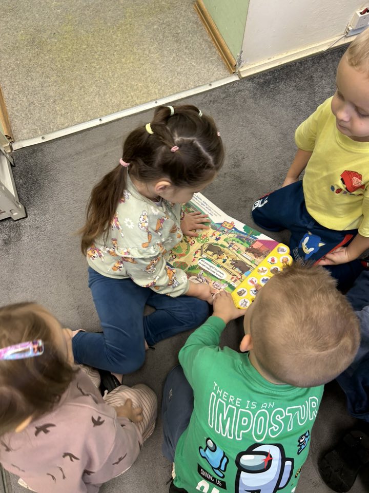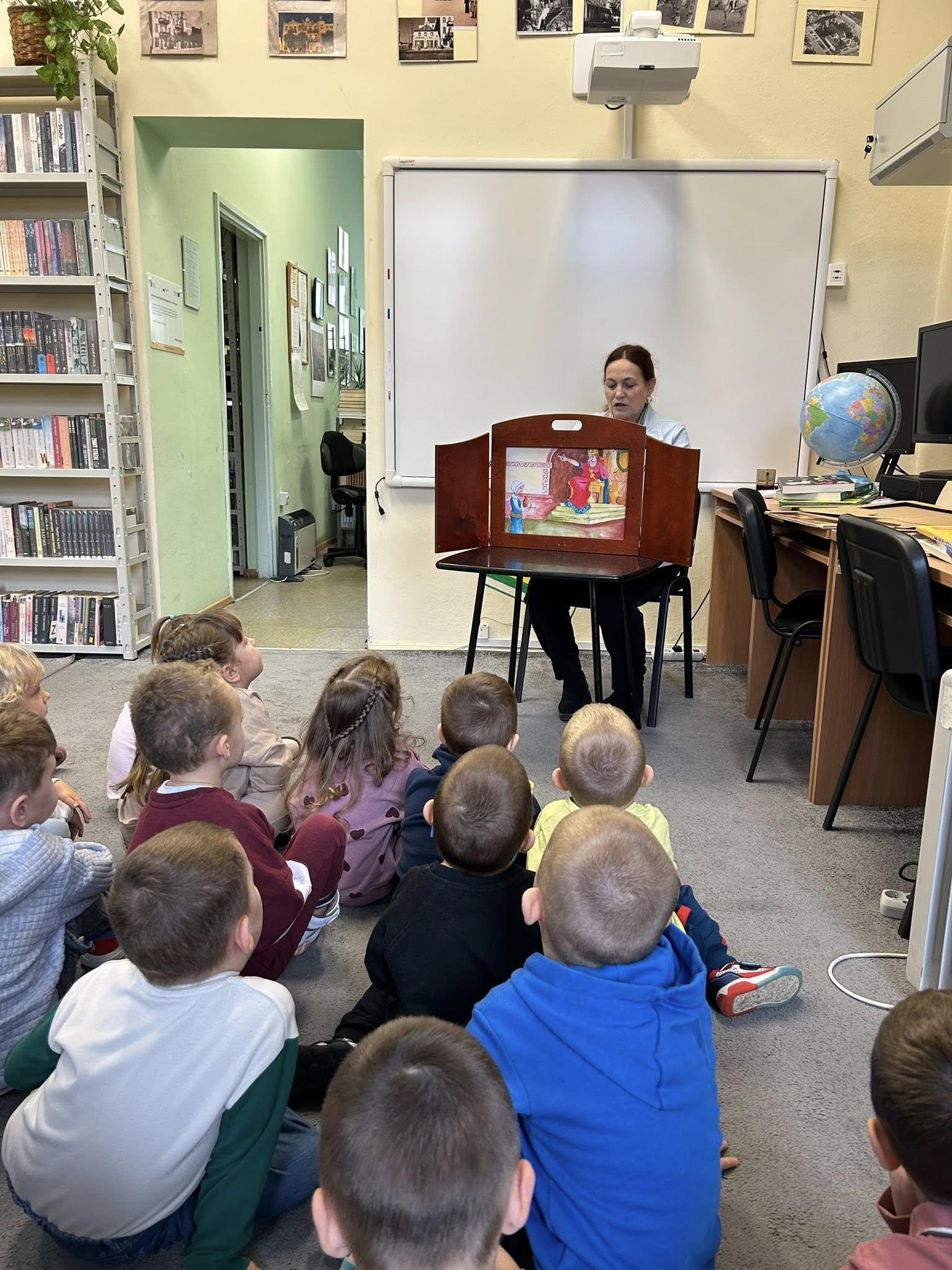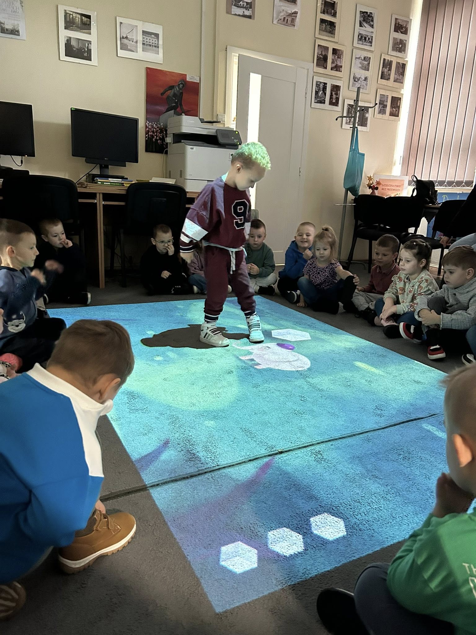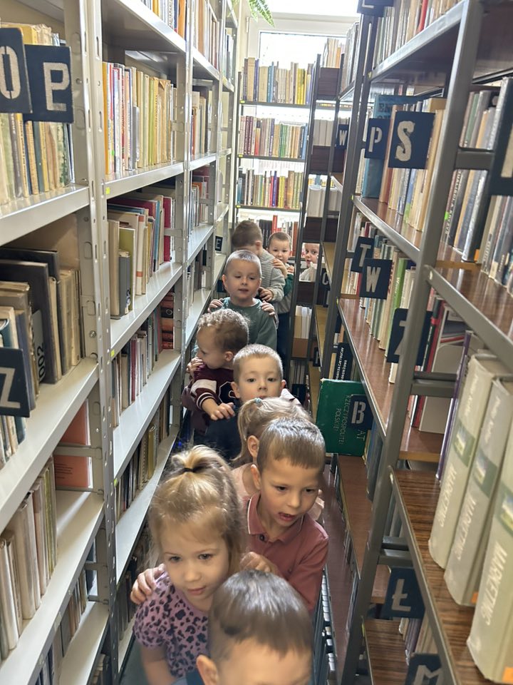 29 października 2025 r. dzieci z grupy „Księżyce" z MPS nr 4 w Mławie wybrały się z wizytą do biblioteki pedagogicznej. Pani Agata Mierzwa – kierownik biblioteki – opowiedziała przedszkolakom o pracy bibliotekarza oraz zaprezentowała im bogaty zbiór książek dla dzieci, w różnych formatach – od najmniejszych po bardzo duże. Maluchy z zaciekawieniem oglądały prezentowane pozycje i wsłuchiwały się w czytane fragmenty. Dużą atrakcją okazał się również „interaktywny globus", dzięki któremu mogły wyruszyć w wirtualną podróż po świecie. Na zakończenie wizyty dzieci wzięły udział w zabawach na „Magicznym dywanie", zbierając cukierki, grając w piłkę oraz świetnie się bawiąc przy innych zadaniach.