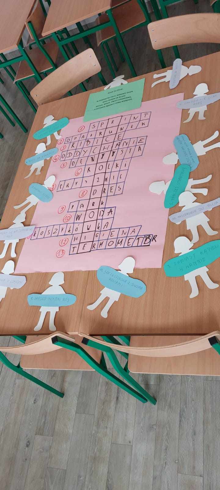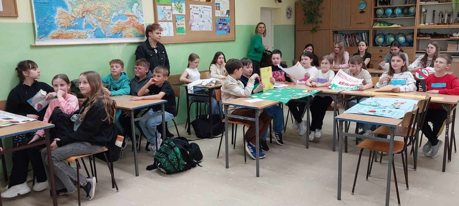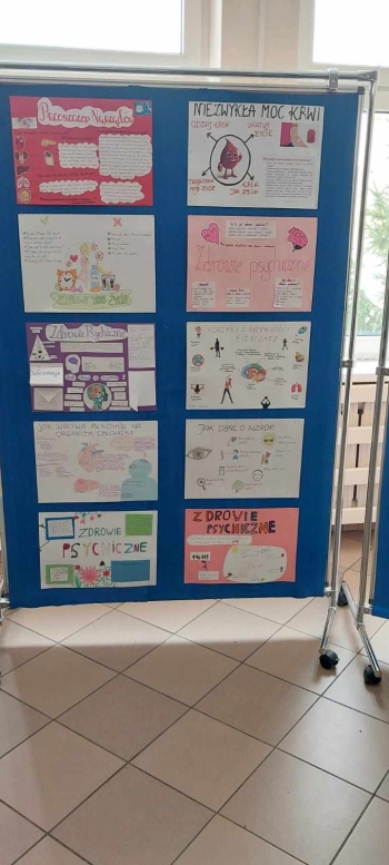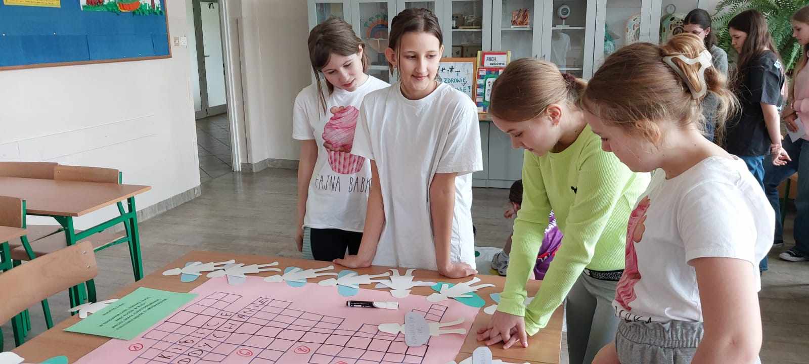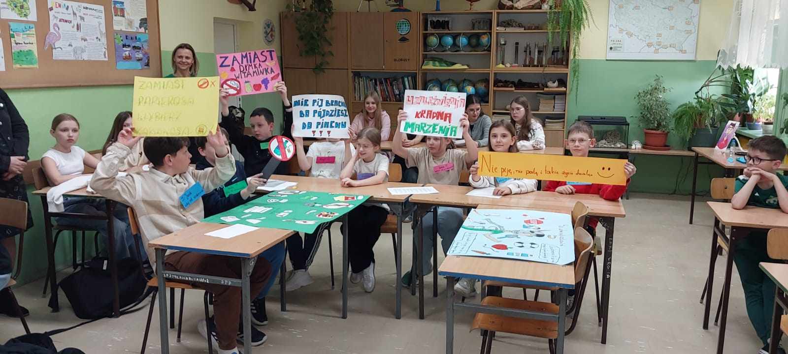 Zdrowe początki, pełna nadziei przyszłość to hasło przewodnie tegorocznych obchodów Dnia Zdrowia. Tradycyjnie w tym miesiącu na zajęciach lekcyjnych odbyły się pogadanki o tematyce zdrowotnej. Uczniowie oglądali filmy, prezentacje, rozwiązywali zadania interaktywne - jak dbać o dobrą kondycję ciała, umysłu oraz środowiska przyrodniczego. Uczniowie klas czwartych wzięli udział w zajęciach warsztatowych pod hasłem: ,, nasza recepta na zdrowie. Na poszczególnych stacjach analizowali piramidę zdrowego żywienia, rozmawiali o uzależnieniach, uczestniczyli w grze: zdrowe podchody. Uczniowie z klas siódmych na plakatach przedstawili zasady higieny narządu wzroku i słuchu. Zaś ósmoklasiści podali niekorzystny wpływ alkoholu na organizm człowieka. Szóstoklasiści opracowali ulotki z zasadami postępowania w przypadku ukąszenia przez żmiję. Powstałe materiały zostały umieszczone na gazetce na szkolnym korytarzu.