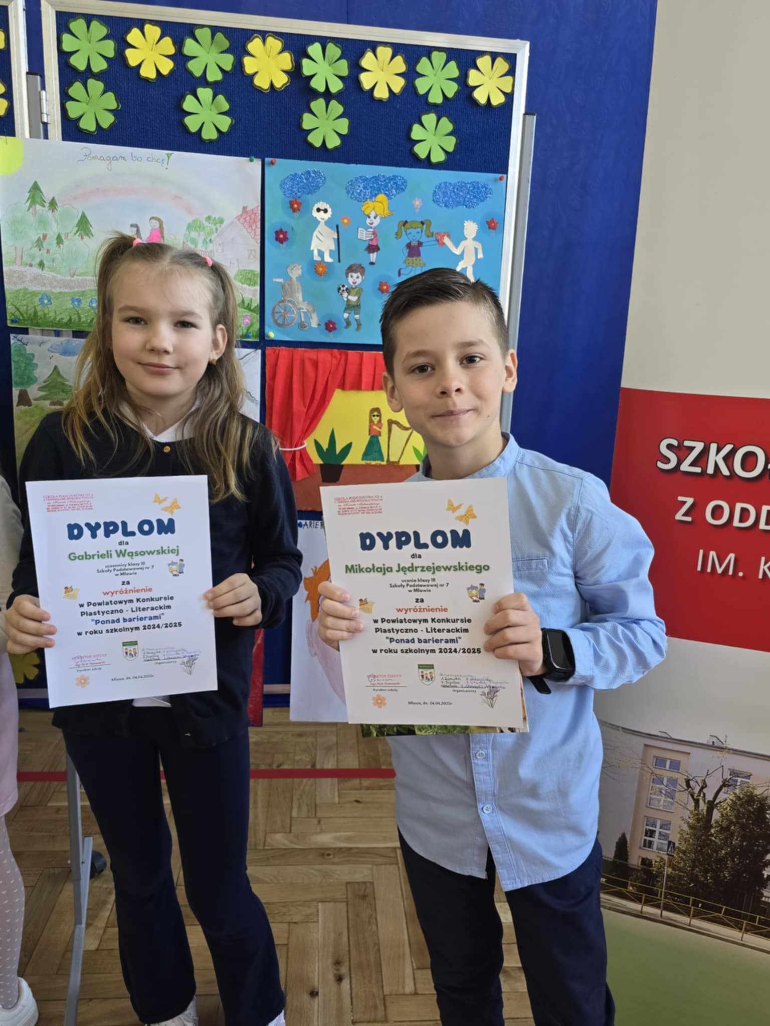 Laureaci Powiatowego Konkursu Plastycznego " Ponad barierami":