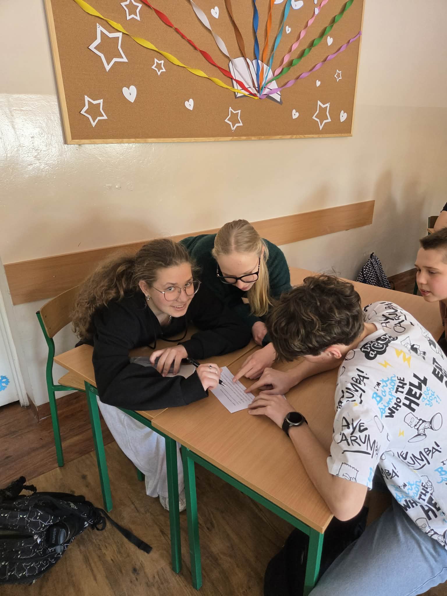 W naszej szkole obchodziliśmy Międzynarodowy Dzień Języka Ojczystego – wyjątkowe święto przypominające, jak piękny, bogaty i niezwykły jest język polski. Z tej okazji uczniowie wzięli udział w różnorodnych zadaniach językowych, które dostarczyły nie tylko sporej dawki wiedzy, ale również mnóstwa śmiechu i dobrej zabawy. Uczniowie zmierzyli się z trudnymi łamańcami językowymi, sprawdzając swoją dykcję i refleks. Każda grupa miała także okazję samodzielnie ułożyć własny łamaniec językowy, wykazując się kreatywnością i poczuciem humoru. Nie zabrakło zadań związanych z polskimi przysłowiami, które przypomniały nam mądrość przekazywaną z pokolenia na pokolenie. Uczestnicy musieli również uzupełnić związki frazeologiczne oraz wyjaśnić ich znaczenie. Starsi uczniowie sprawdzali swoją wiedzę, rozpoznając i nazywając środki stylistyczne występujące w tekstach literackich. Wspólna zabawa pokazała, że nauka języka ojczystego może być fascynująca, inspirująca i pełna radości. Dbajmy o poprawność językową każdego dnia, bo język ojczysty to ważna część naszej tożsamości.
