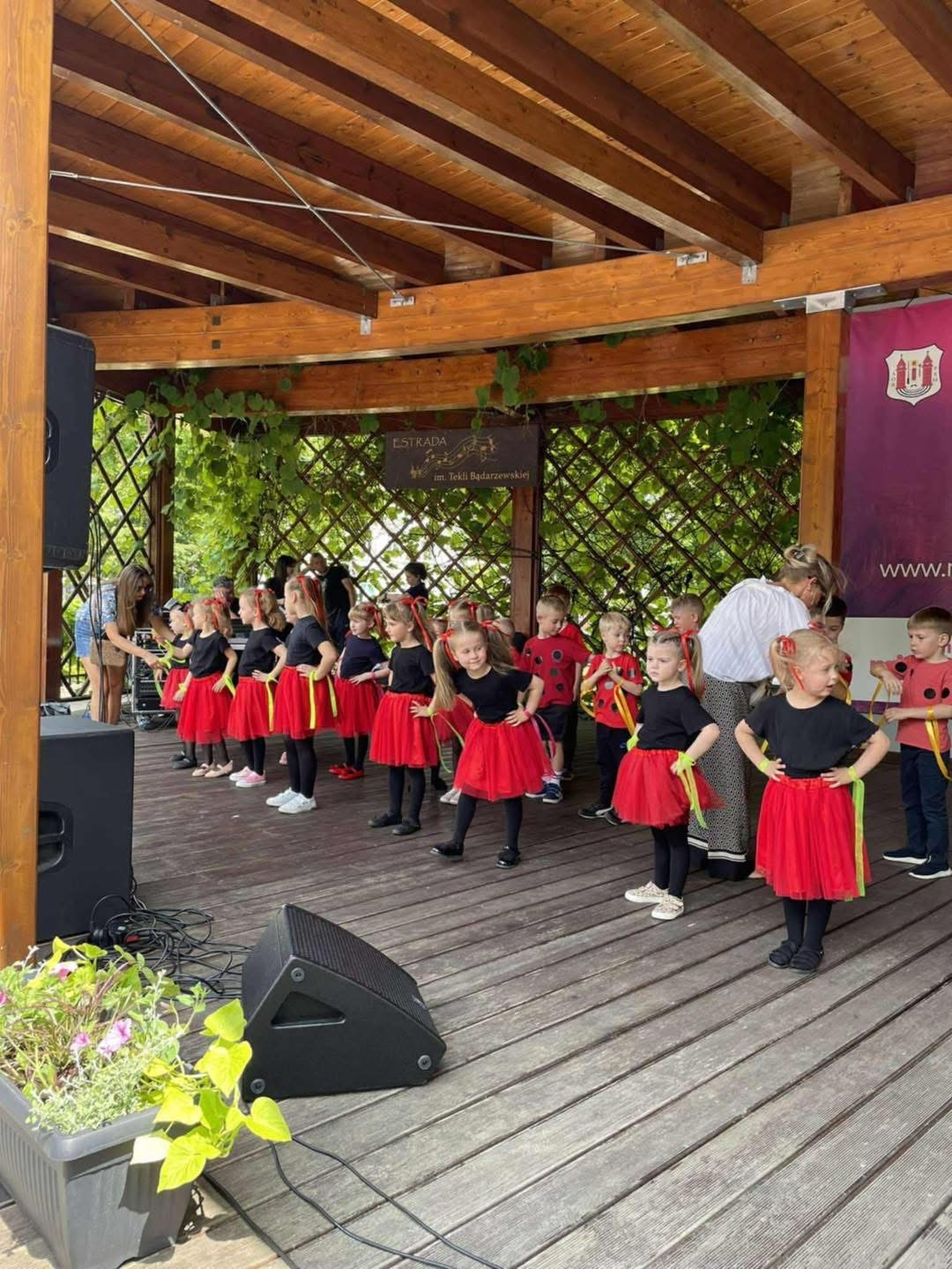 Grupy Stokrotki Biedronki  oraz zespół „Siódemeczki” złożony z reprezentantek grupy 0 C uczestniczyli w obchodach  Dnia Dziecka w parku miejskim.