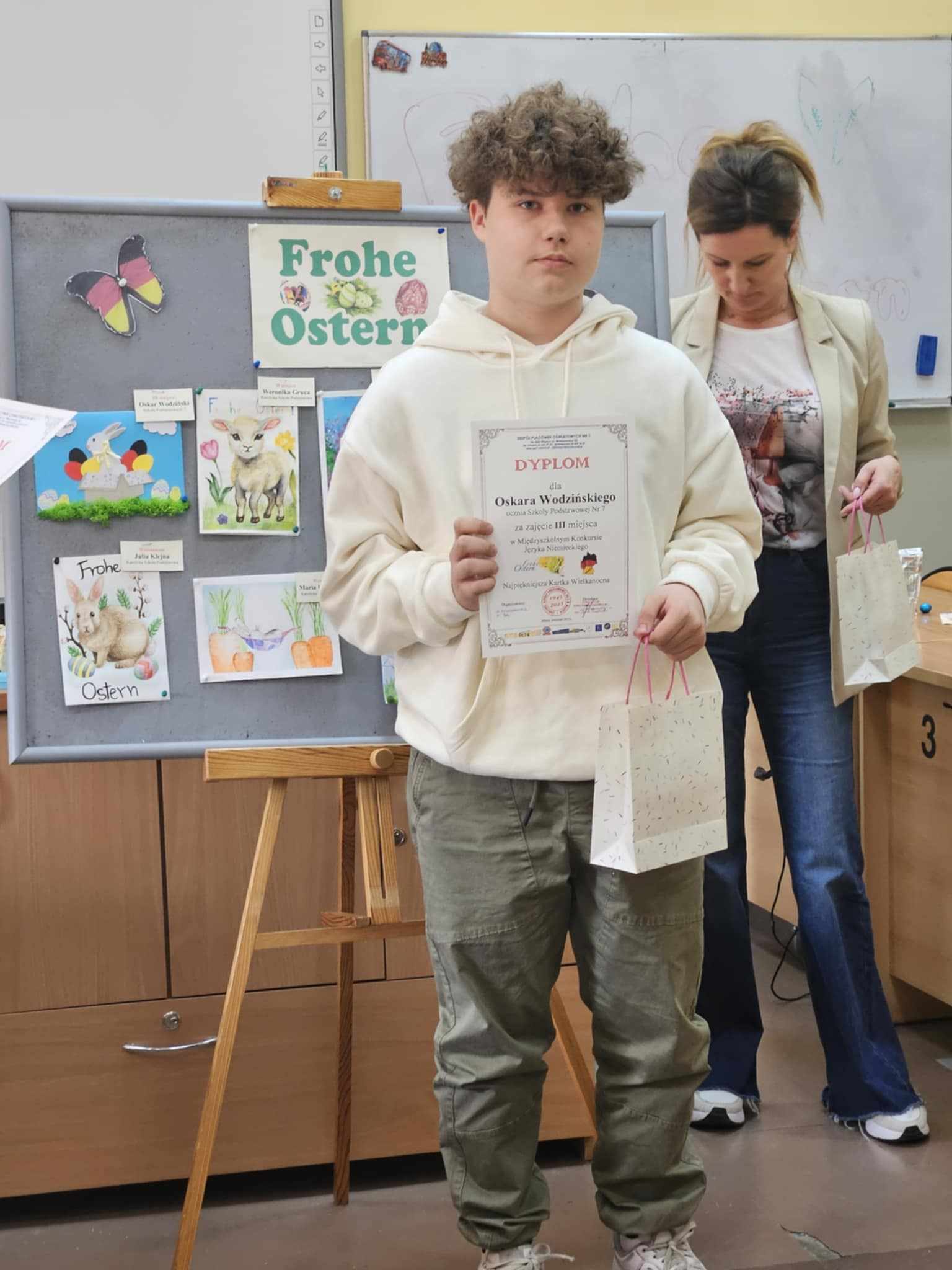 Wielkie gratulacje dla Oskara Wodzińskiego - ucznia klasy 8d, który zdobył III miejsce w międzyszkolnym konkursie z języka niemieckiego: "Najpiękniejsze kartka wielkanocna"