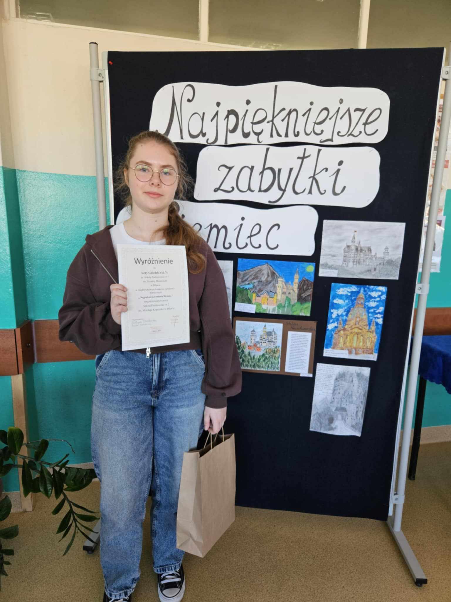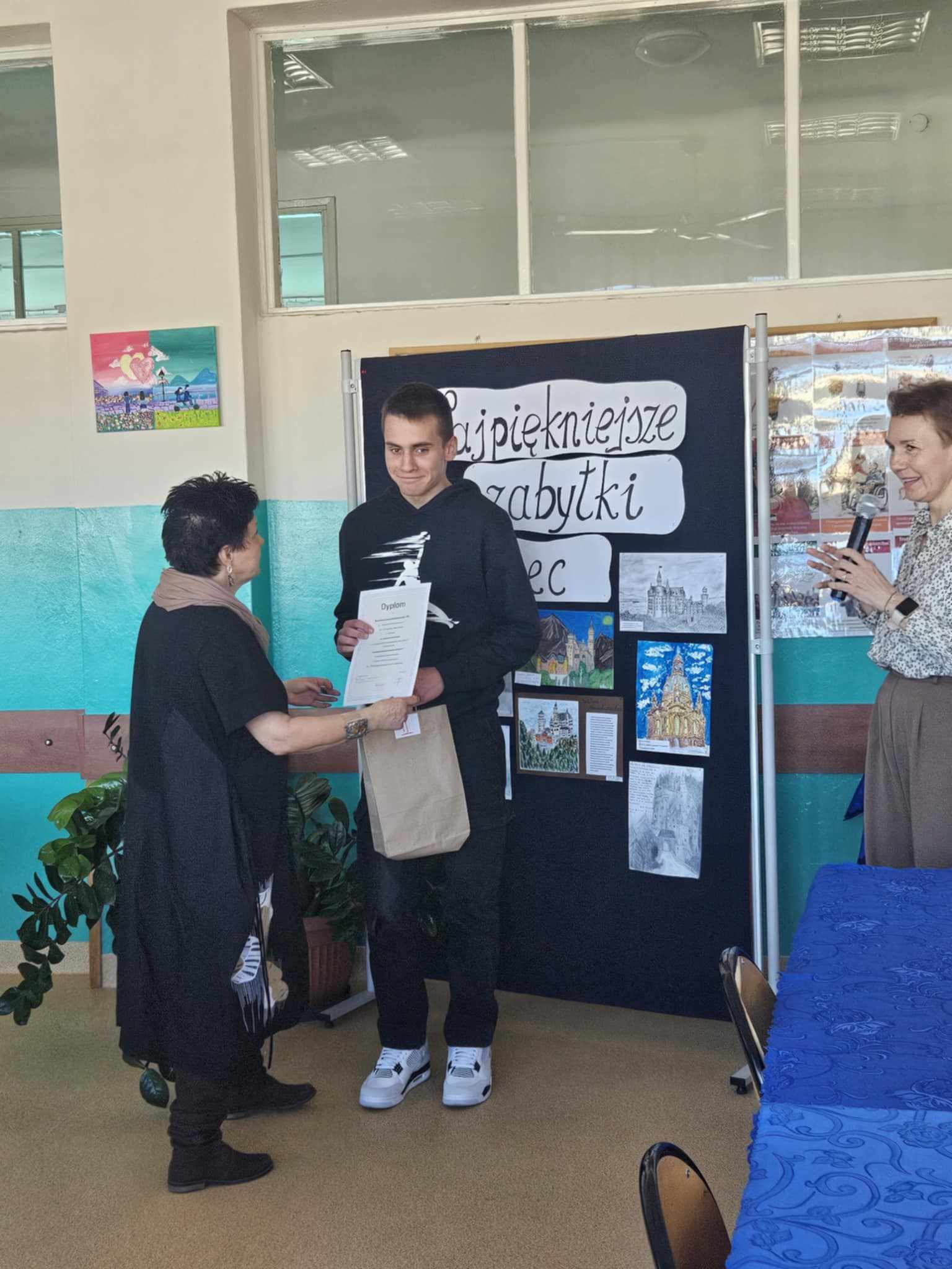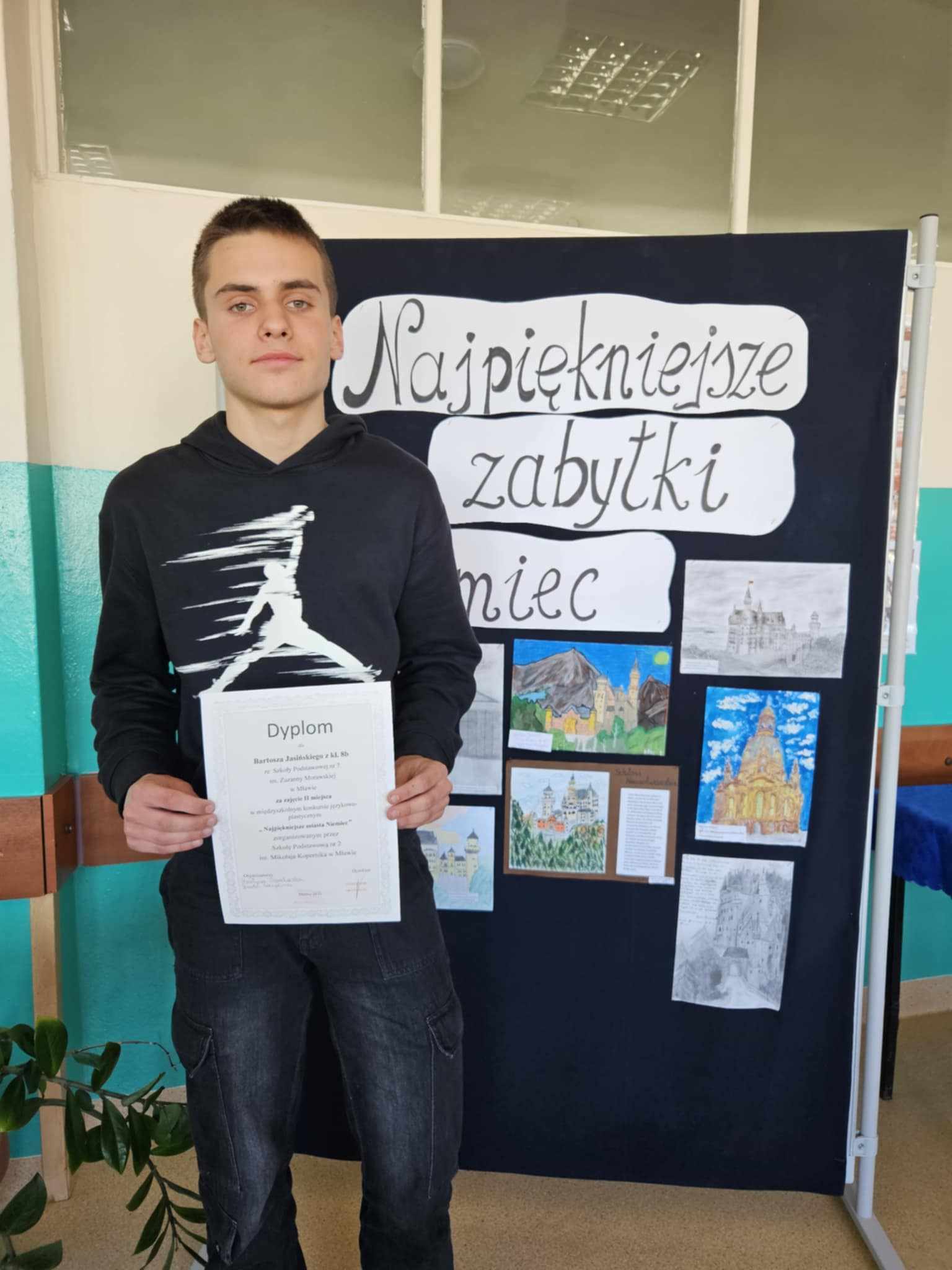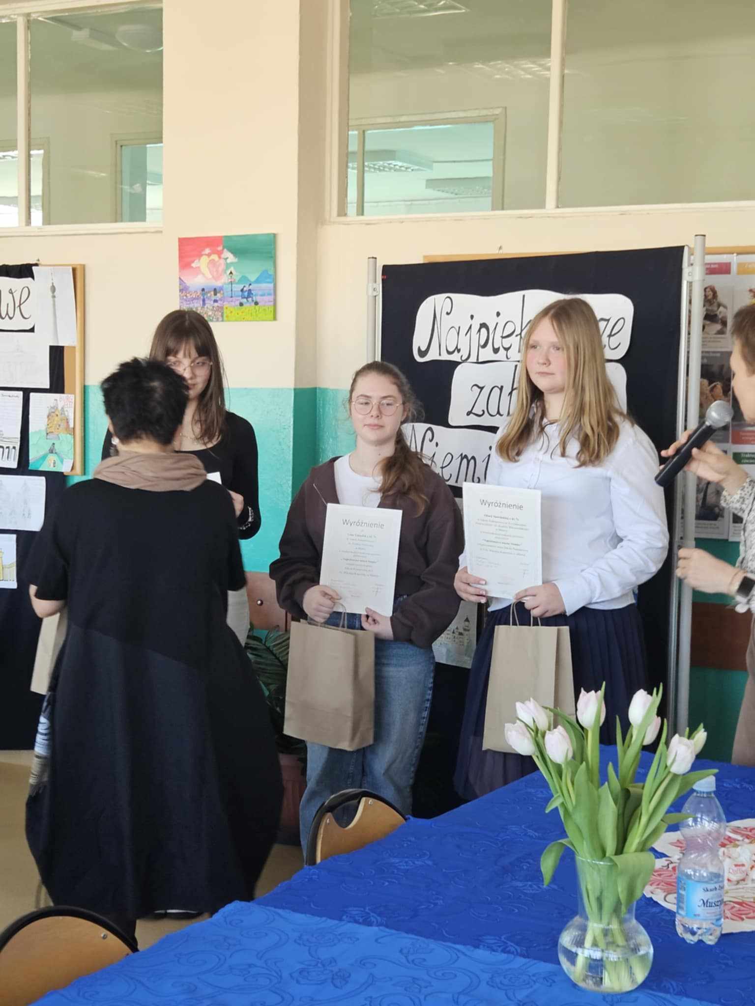 3 kwietnia nastąpiło uroczyste rozdanie dyplomów w międzyszkolnym konkursie z języka niemieckiego: "Najpiękniejsze zabytki Niemiec". Drugie miejsce zajął Bartosz Jasiński z klasy 8b, a wyróżnienie zdobyła Lena Gniadek z klasy 7c.