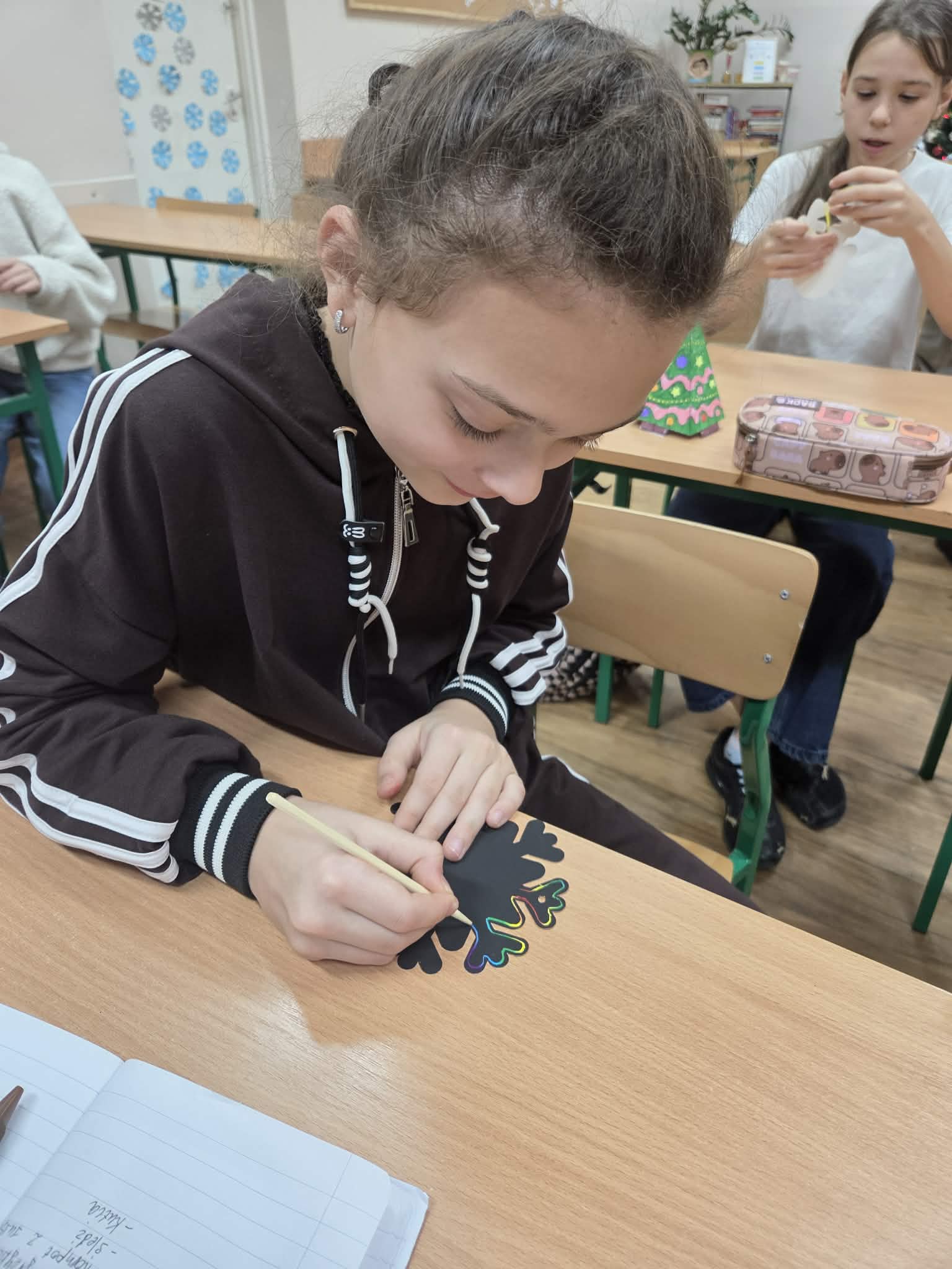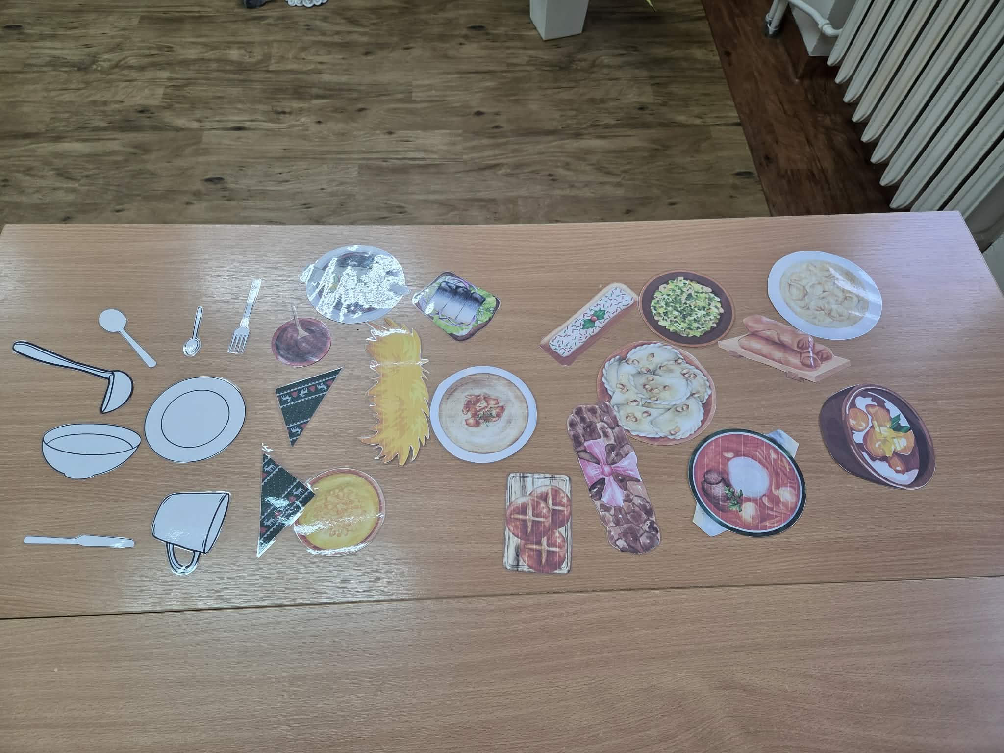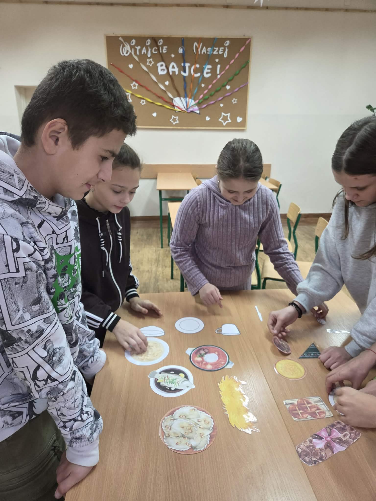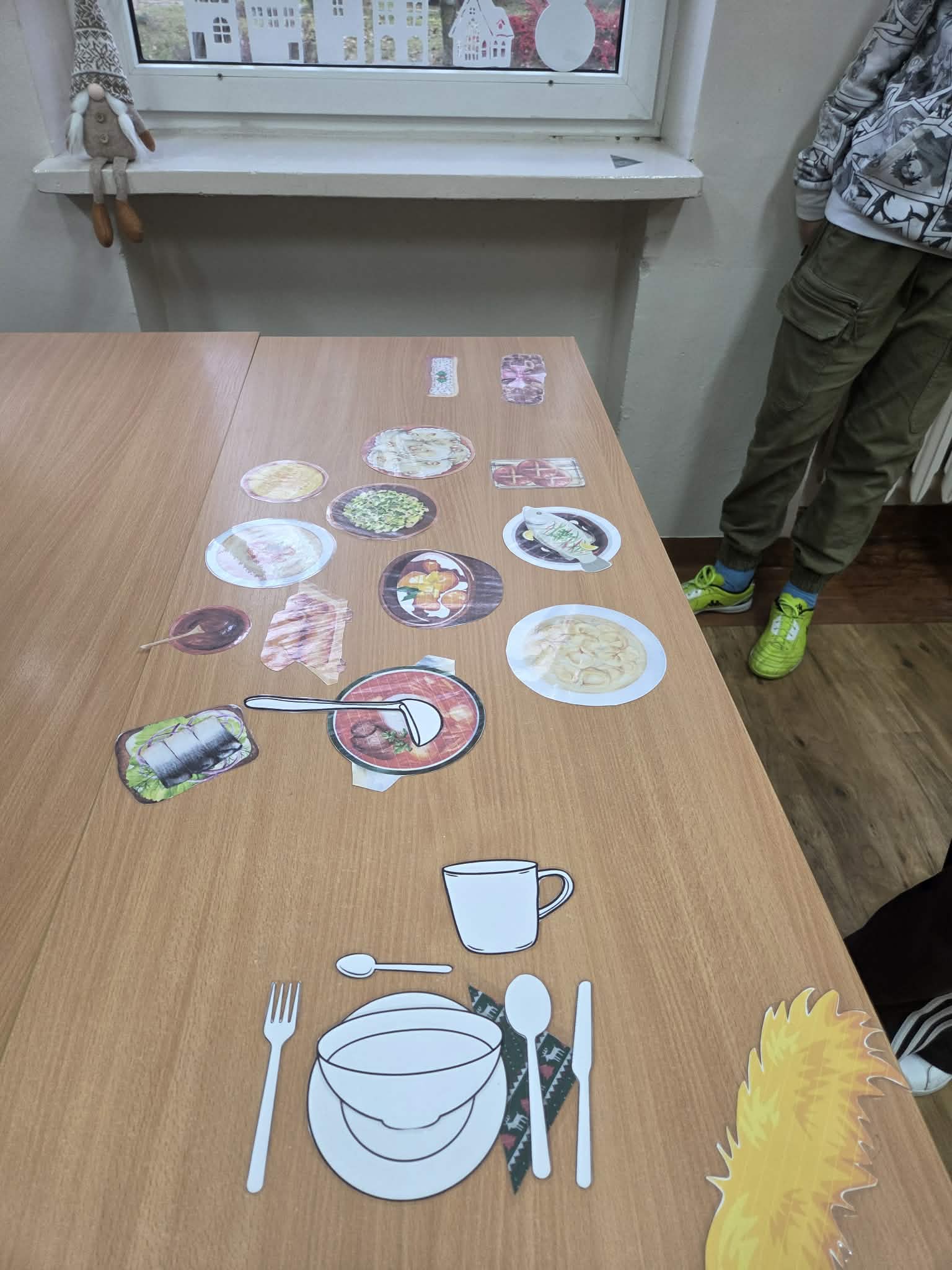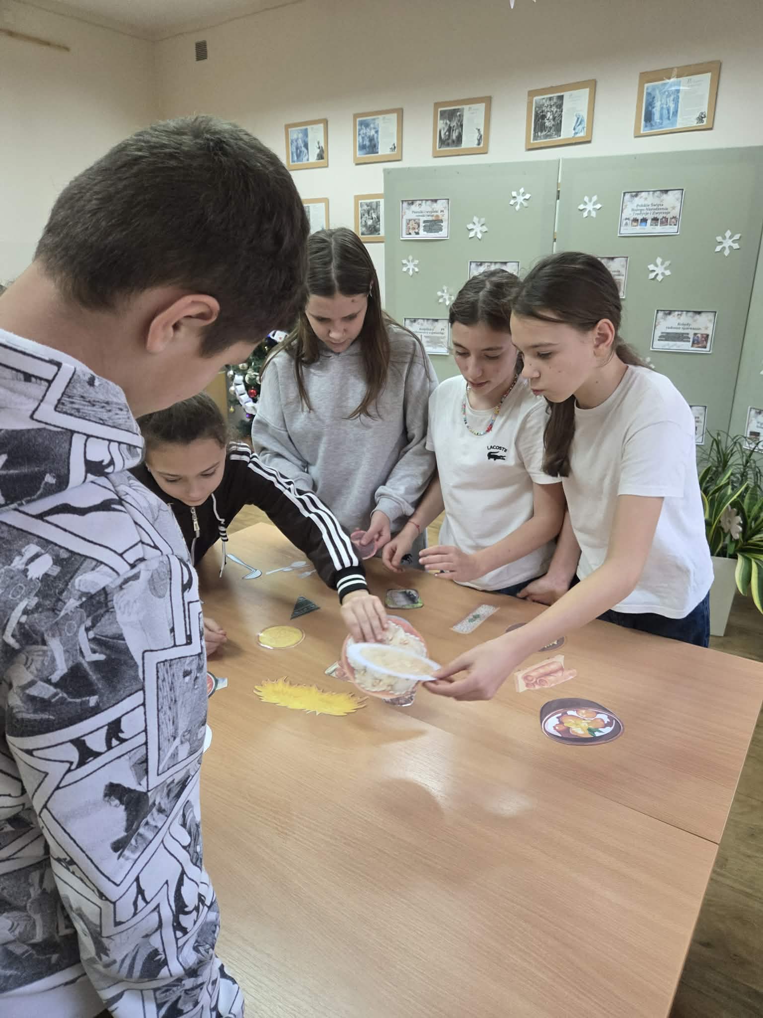 Nie zabrakło także części kreatywnej – uczestnicy zajęć wykonywali własnoręcznie świąteczne ozdoby, a następnie opowiadali o nich w języku polskim, ćwicząc mówienie i prezentowanie swoich pomysłów. Kolejnym zadaniem było przygotowanie stołu wigilijnego – uczniowie nazywali tradycyjne potrawy i poznawali ich znaczenie w polskiej kulturze.
