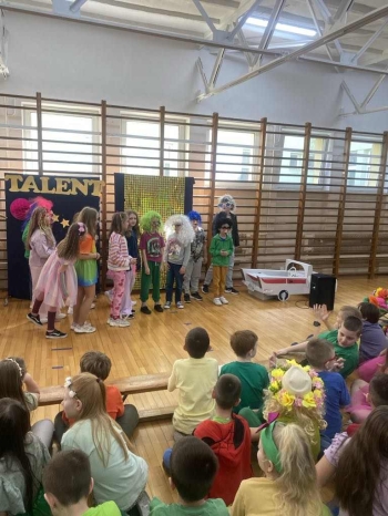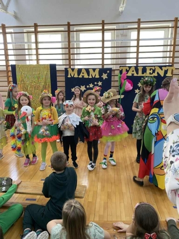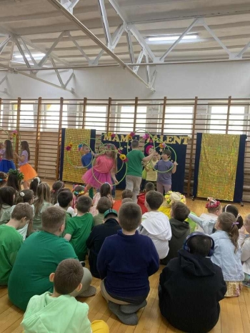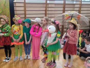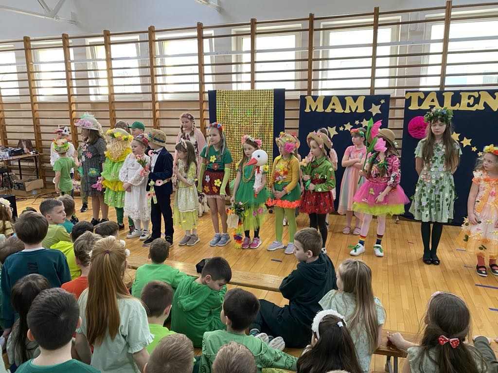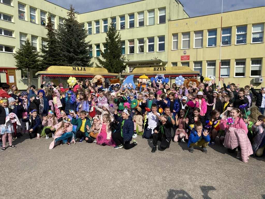 PIERWSZY DZIEŃ WIOSNY to nie tylko zmiana pory roku, ale także doskonała okazja do urozmaicenia codzienności szkolnej. Głównym punktem dzisiejszego dnia był pokaz talentów, w którym wzięli udział wszyscy uczniowie klas I-III. Odbył się także konkurs na najpiękniejsze przebranie wiosenne. Przybyła do nas również Mławska Kolejka GUCIO, a na jej pokładzie podróżowały urocze maskotki. Wszyscy bawili się znakomicie.
