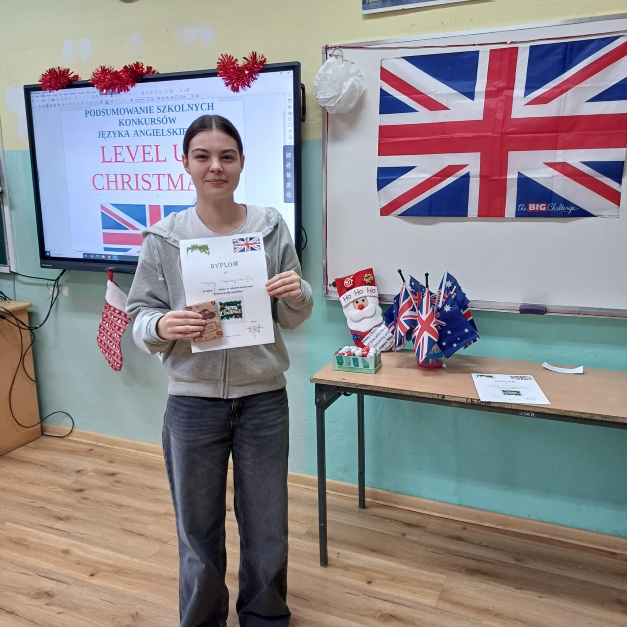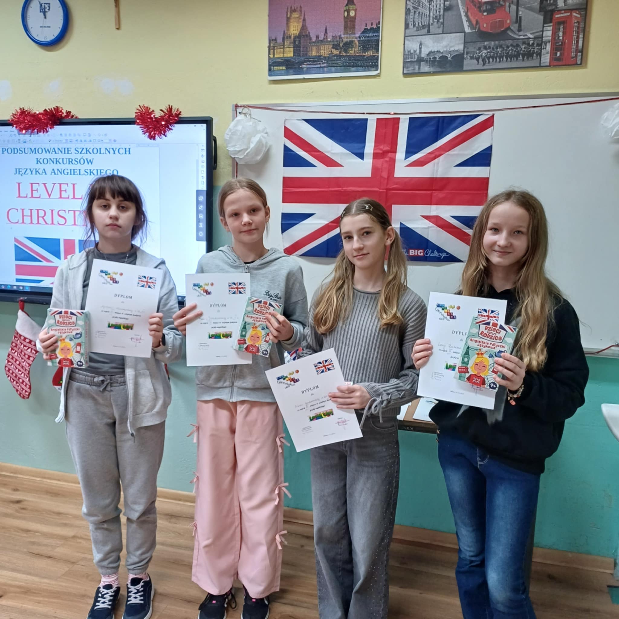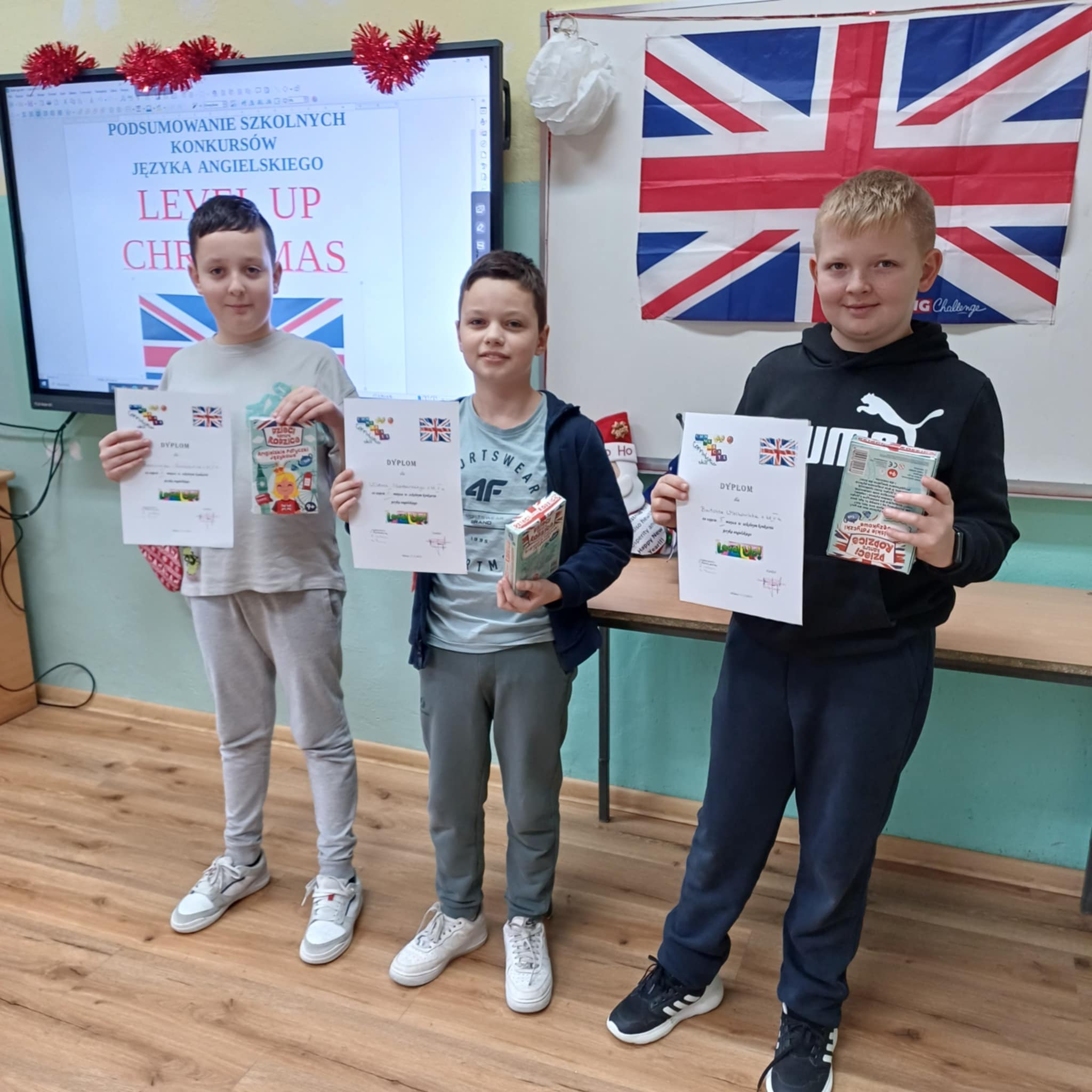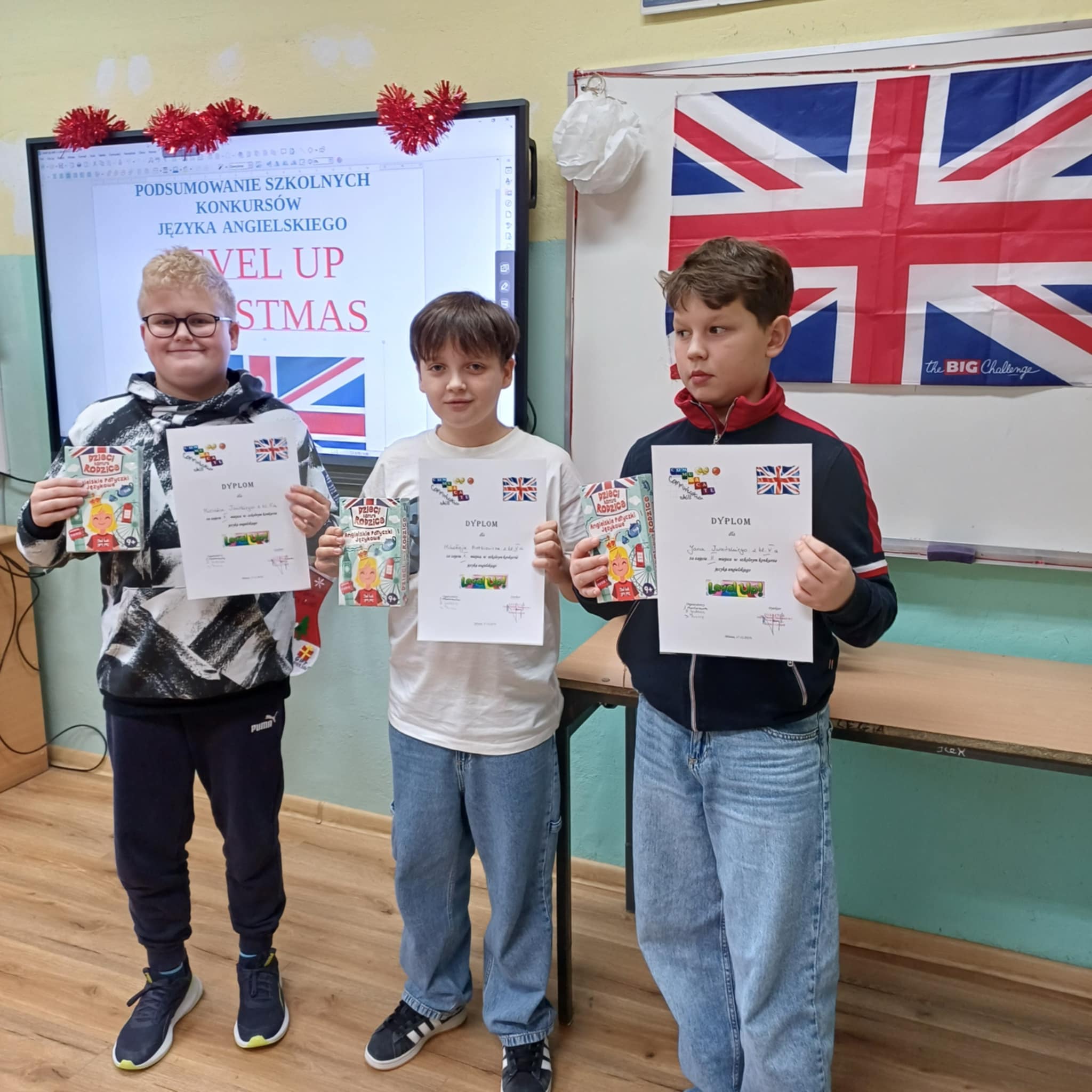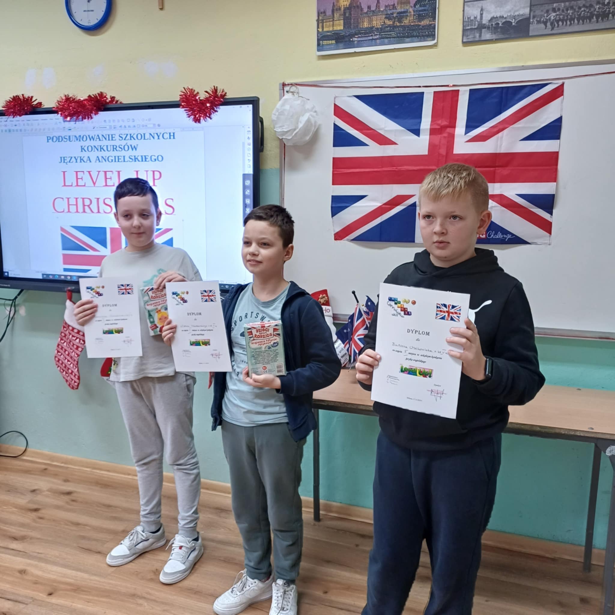 18 grudnia odbyło się podsumowanie konkursów języka angielskiego: Level up, Christmas Card, Christmas Comic i Christmas Story. Uczniowie, którzy najlepiej zaprezentowali się w powyższych konkursach otrzymali dyplomy i nagrody, które pozwolą im dalej rozwijać językowe pasje.