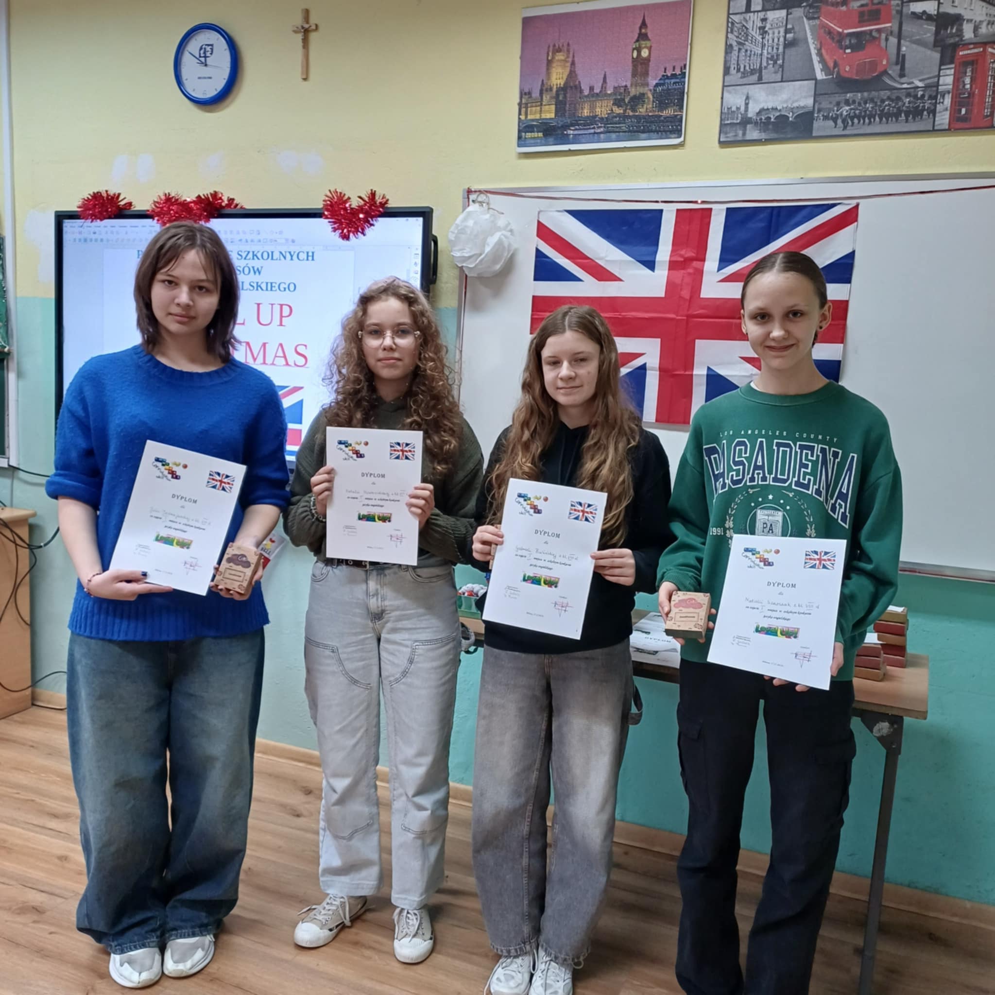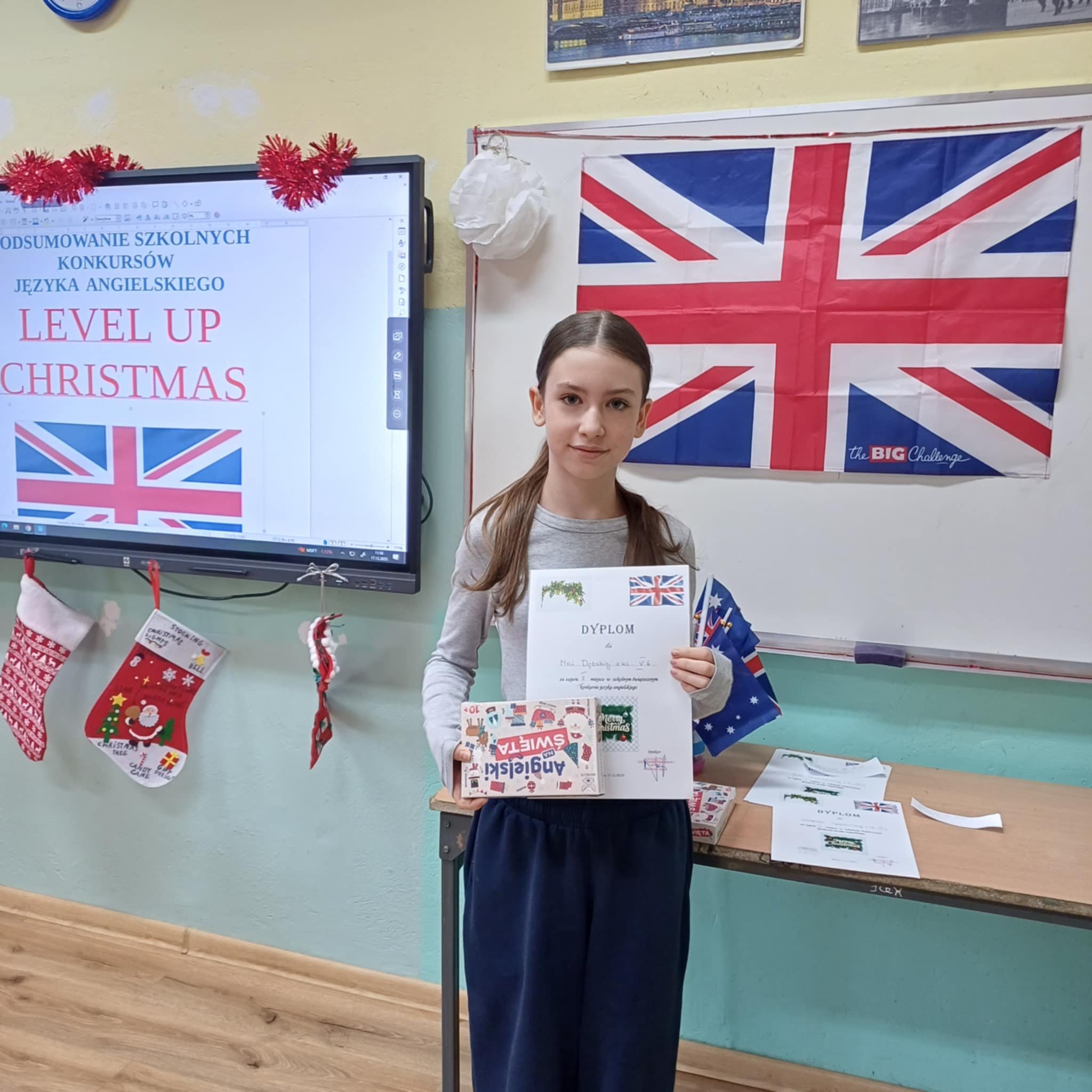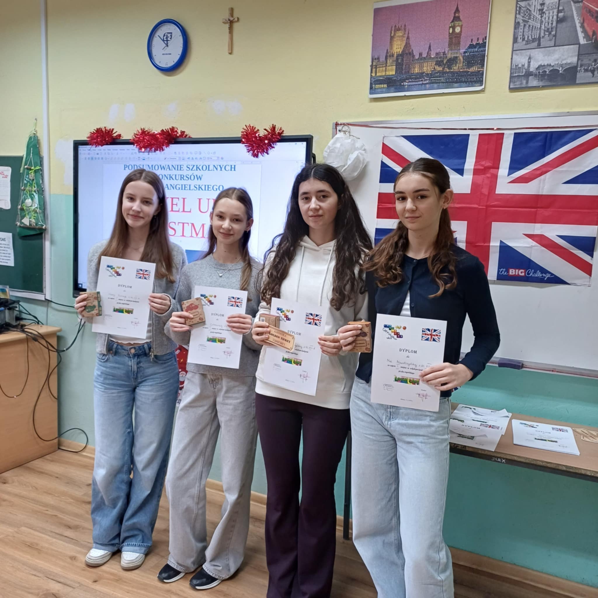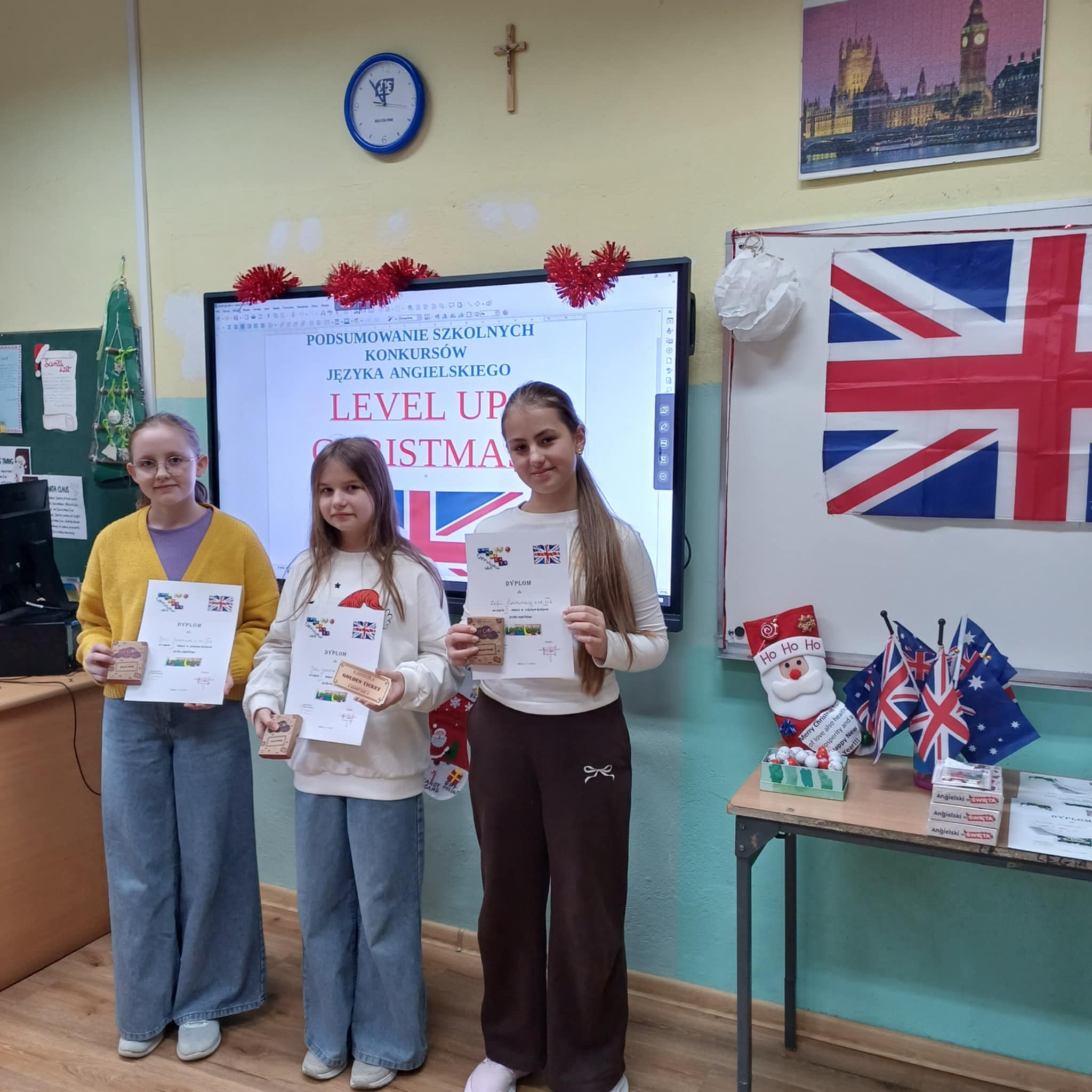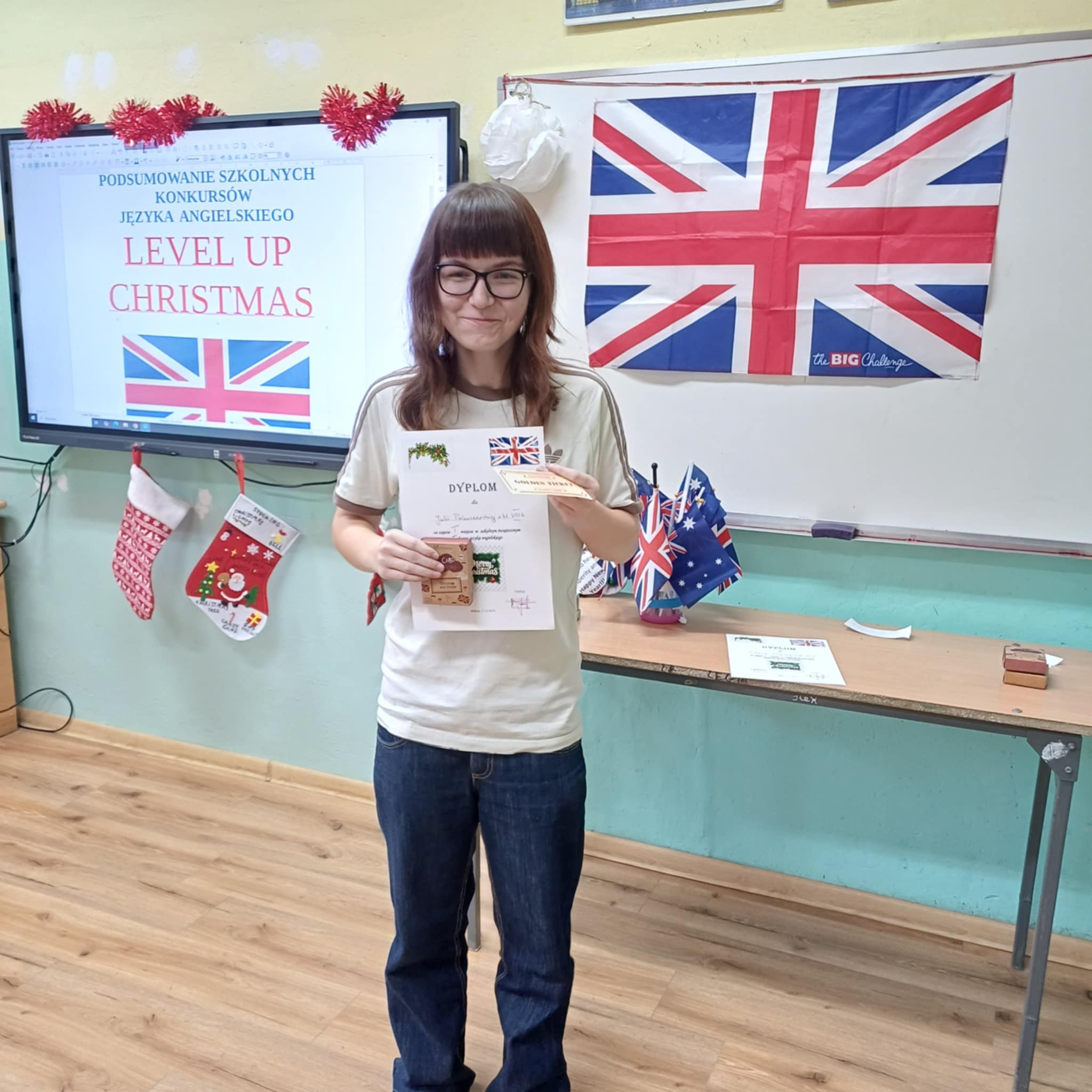 18 grudnia odbyło się podsumowanie konkursów języka angielskiego: Level up, Christmas Card, Christmas Comic i Christmas Story. Uczniowie, którzy najlepiej zaprezentowali się w powyższych konkursach otrzymali dyplomy i nagrody, które pozwolą im dalej rozwijać językowe pasje.