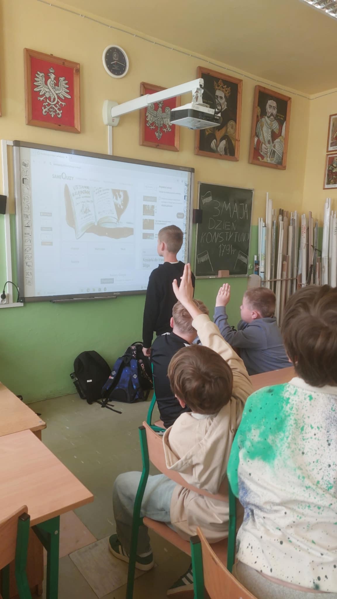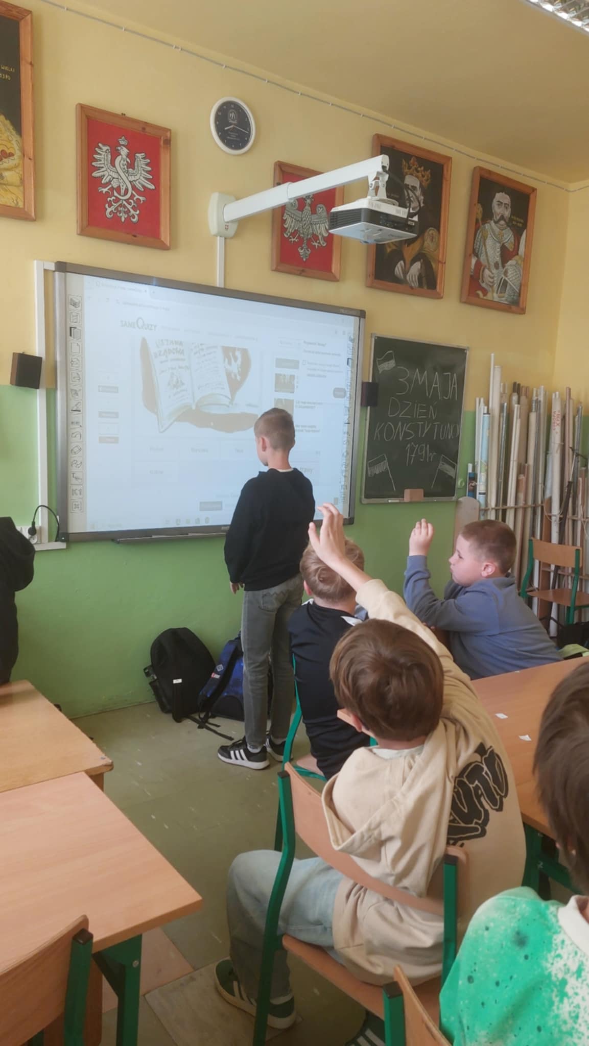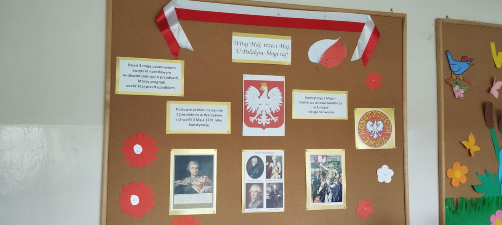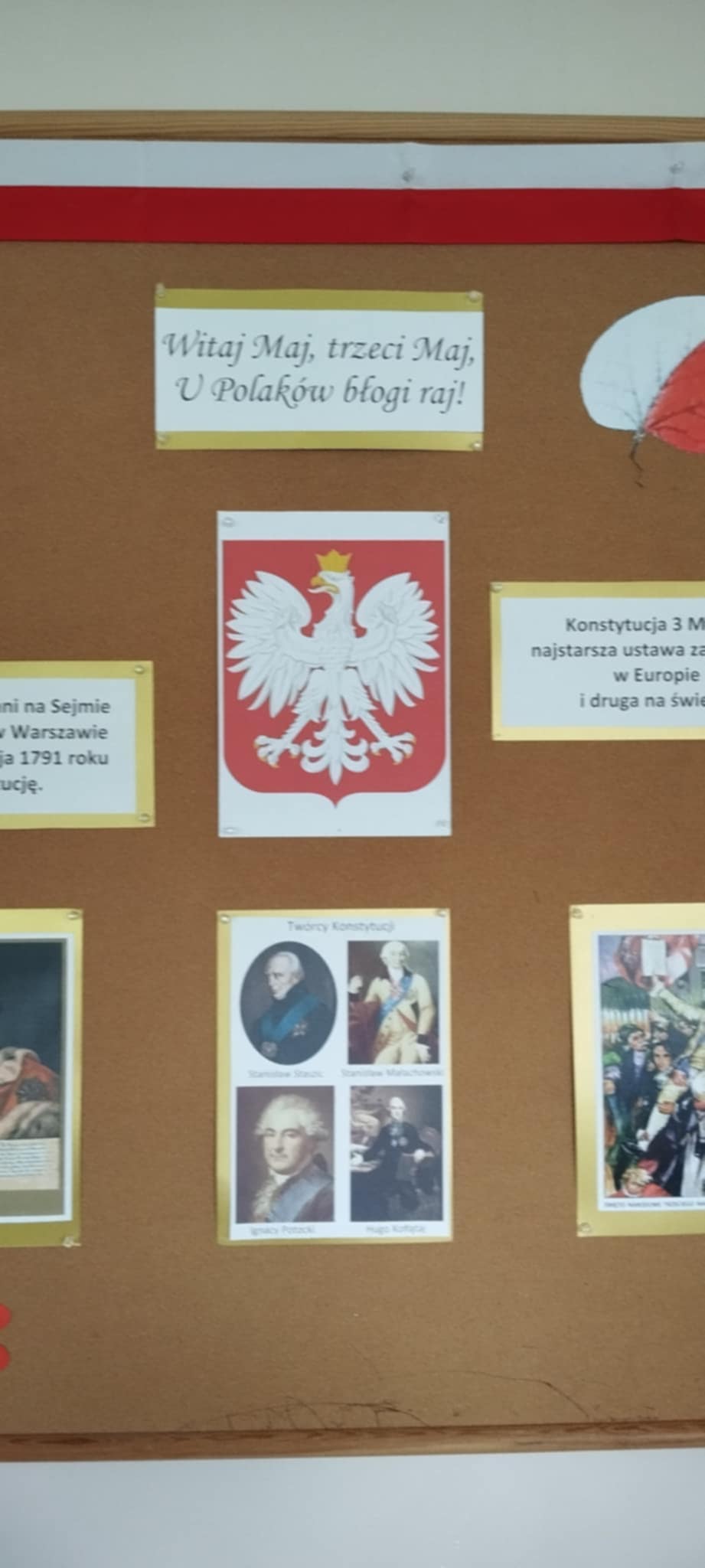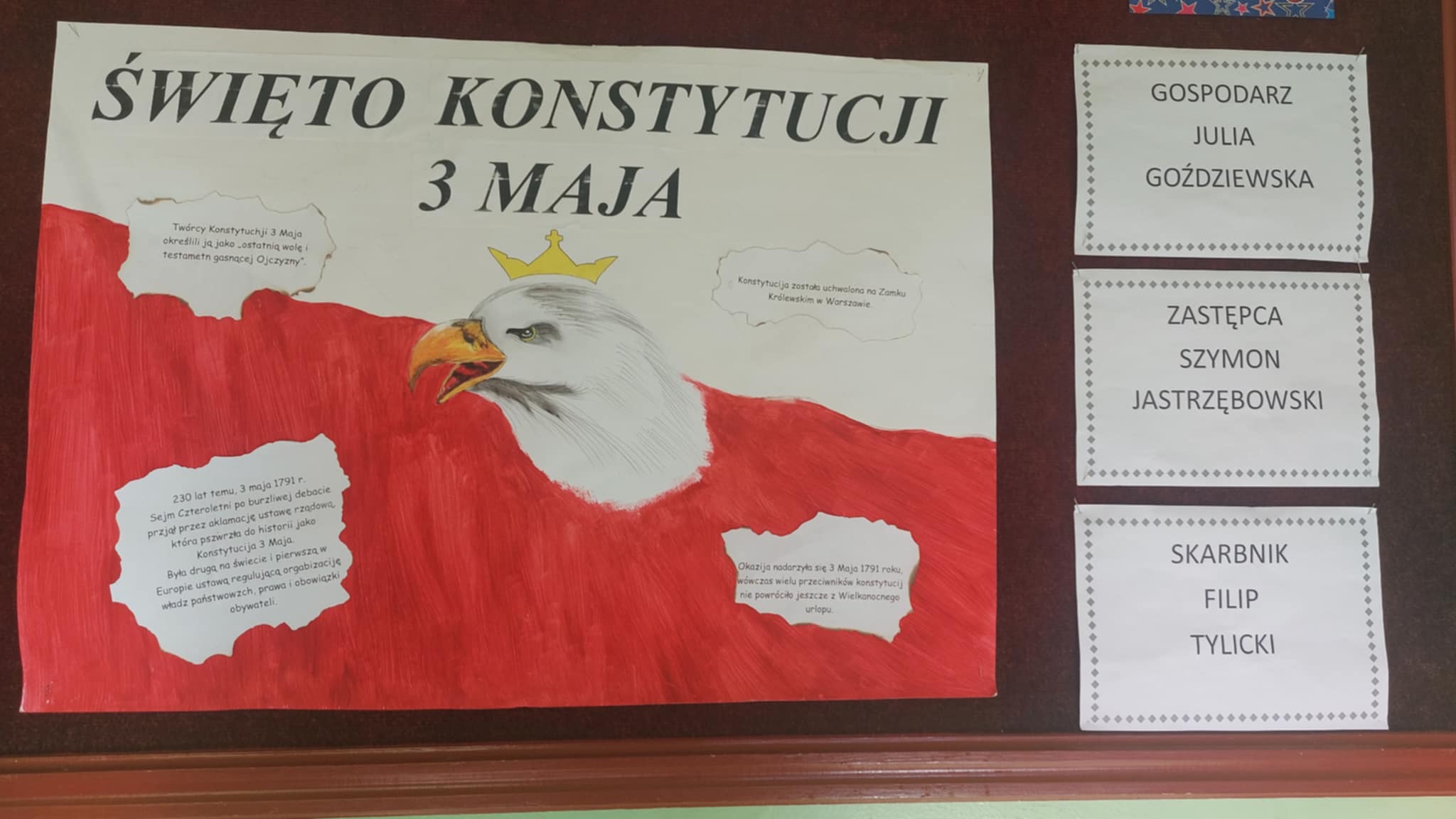 Z okazji 234 rocznicy uchwalenia Konstytucji 3 Maja uczniowie klas IV – VIII uczestniczyli w interdyscyplinarnym projekcie, który upamiętniał to doniosłe wydarzenie. 29 kwietnia korytarz naszej szkoły za sprawą uczniów i nauczycieli tonął w biało-czerwonych barwach. Podczas godzin wychowawczych organizowane były quizy, krzyżówki, filmy dotyczące tej niezwykle ważnej rocznicy, podczas lekcji języka polskiego projektowano szkolną konstytucję, w pracowniach i na szkolnych korytarzach pojawiły się gazetki tematyczne. Teraz już każdy uczeń na pewno zapamięta jak ważne wydarzenie miało miejsce 3 maja 1791 roku.