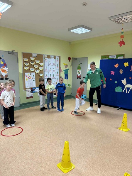 Miejskie Przedszkole Samorządowe nr 4 z Oddziałami Integracyjnymi odwiedzili trenerzy Mławianki Mława, by poprowadzić kolejną edycję zajęć sportowych „Przedszkola z Mławianką". W radosnej i przyjaznej atmosferze dzieci rozwijały swoją sprawność fizyczną, koordynację, równowagę oraz umiejętność współpracy w grupie. Dzięki zaangażowaniu trenerów Mławianki każdy przedszkolak mógł poczuć się pewnie, aktywnie uczestniczyć w zajęciach i czerpać prawdziwą przyjemność z ruchu. Zajęcia miały charakter zabawy – poprzez różnorodne gry ruchowe ?♂️, tory przeszkód, zabawy z piłką oraz proste ćwiczenia sportowe dzieci poznawały podstawy piłki nożnej i doskonaliły ogólną sprawność motoryczną.