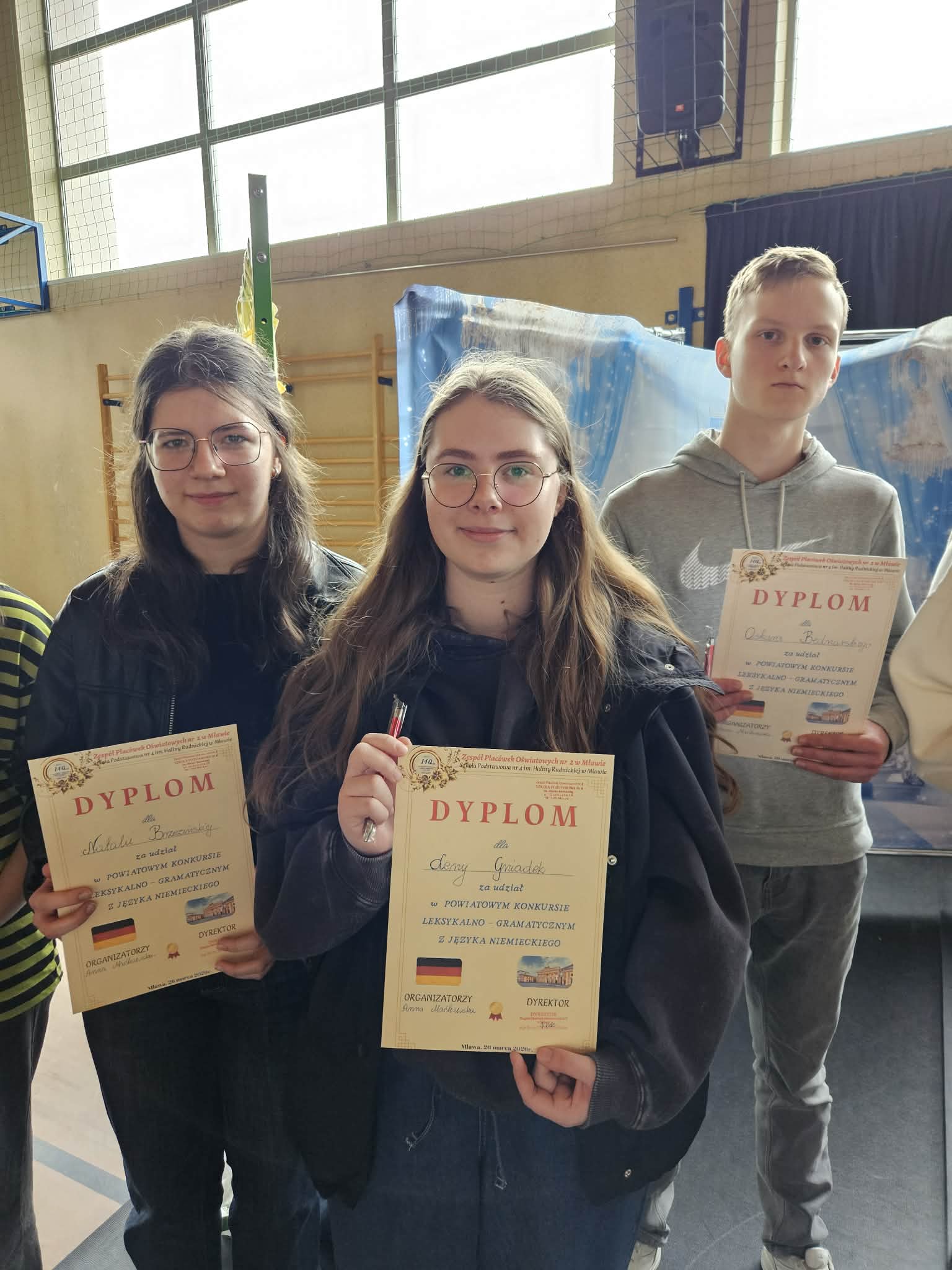 Serdecznie gratulujemy uczniom naszej szkoły, którzy zakwalifikowali się do II etapu Powiatowego konkursu leksykalno- gramatycznego z języka niemieckiego, a są nimi: Len Gniadek kl. 8c, Natalia Brzezińska kl.8c oraz Oskar Bednarski kl.8d.