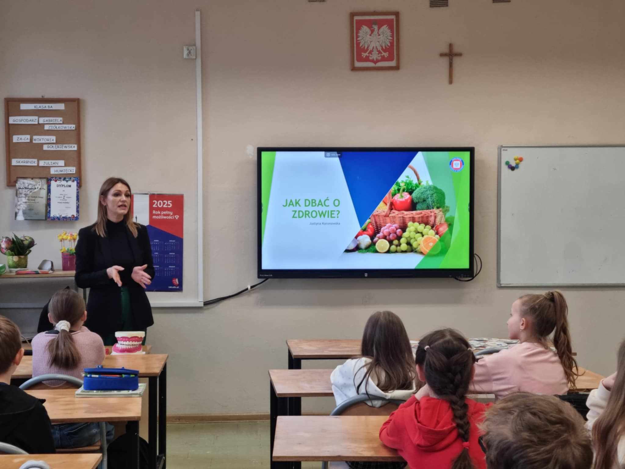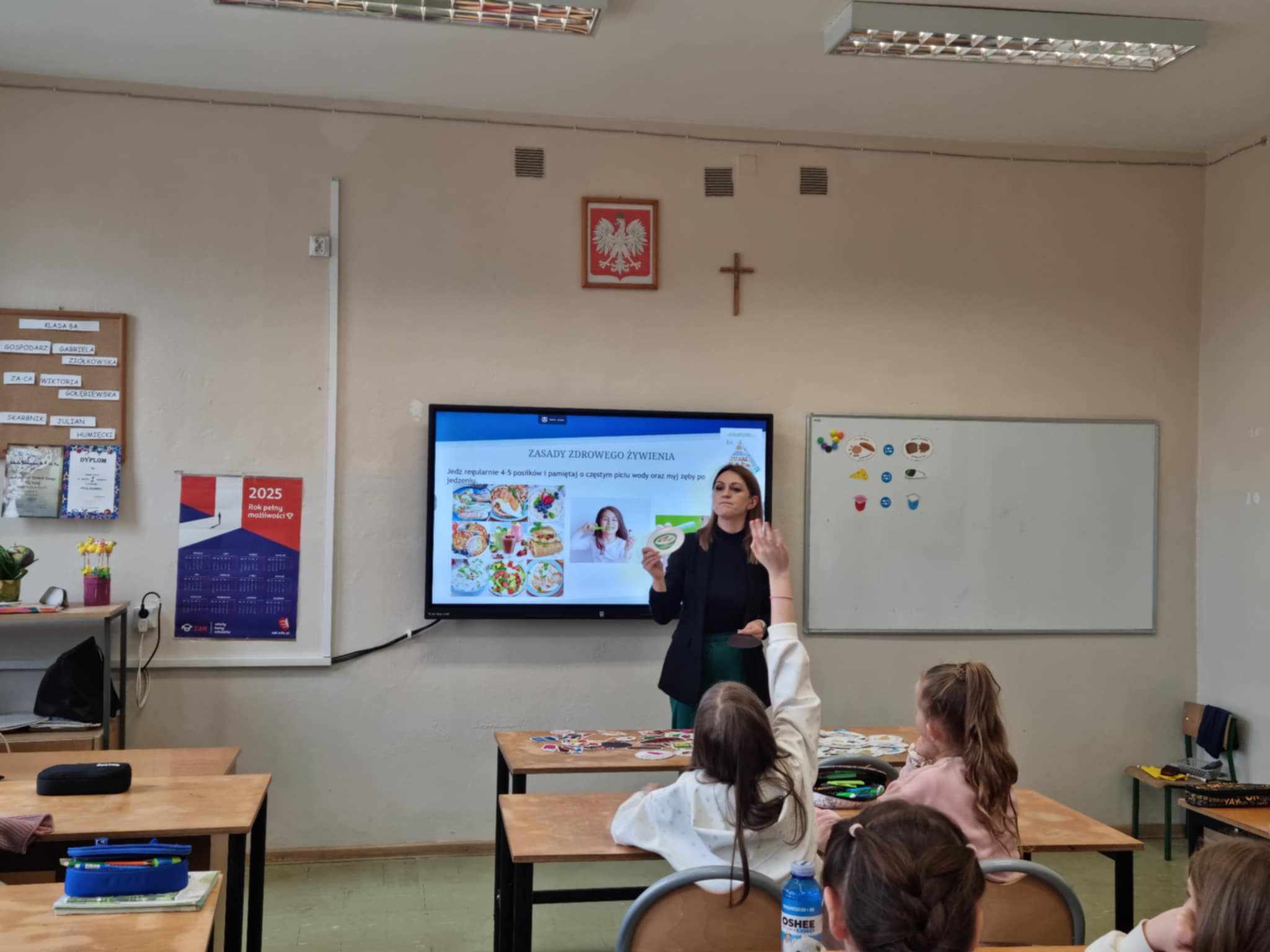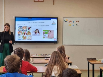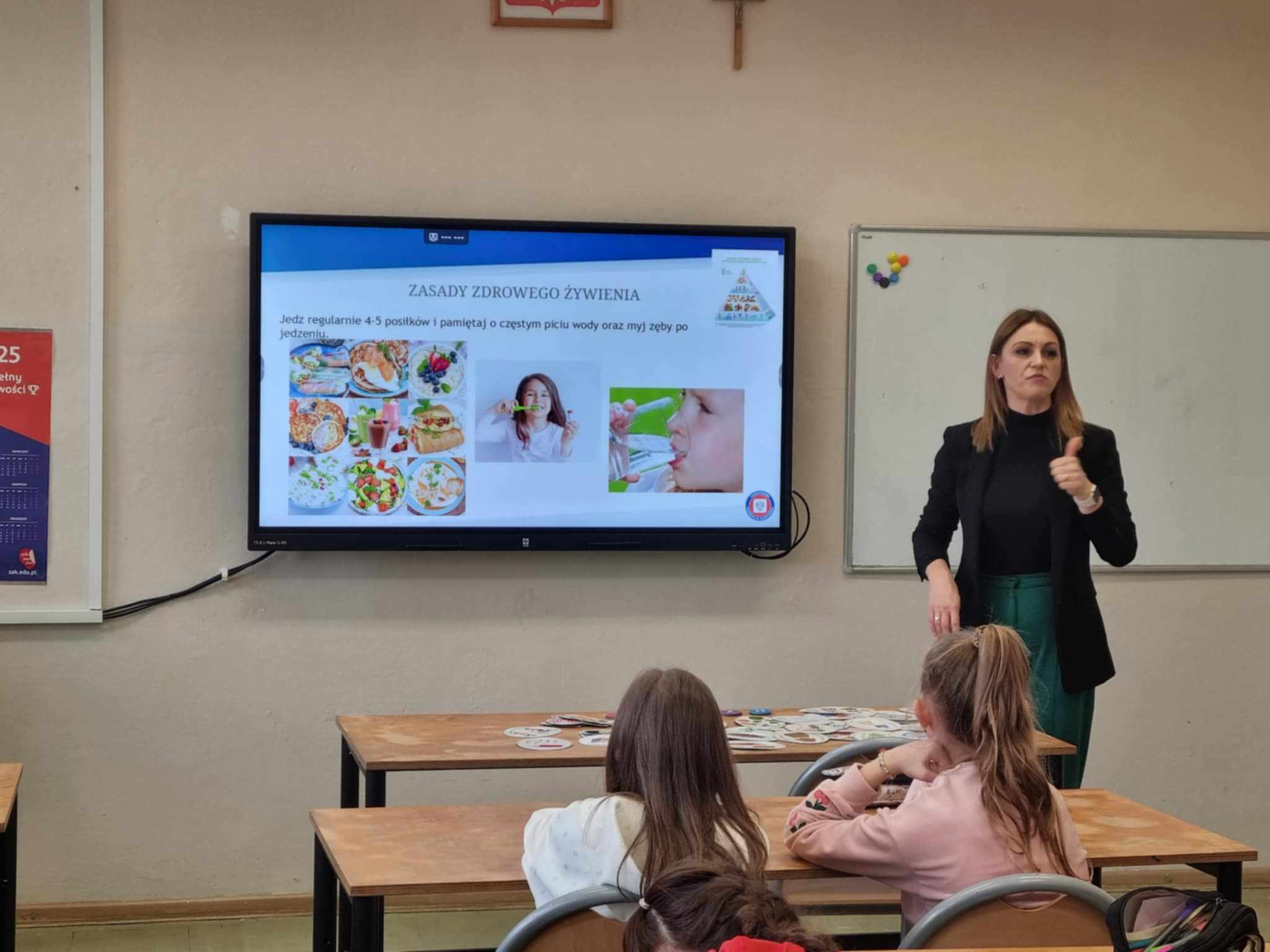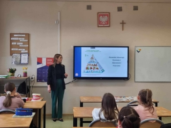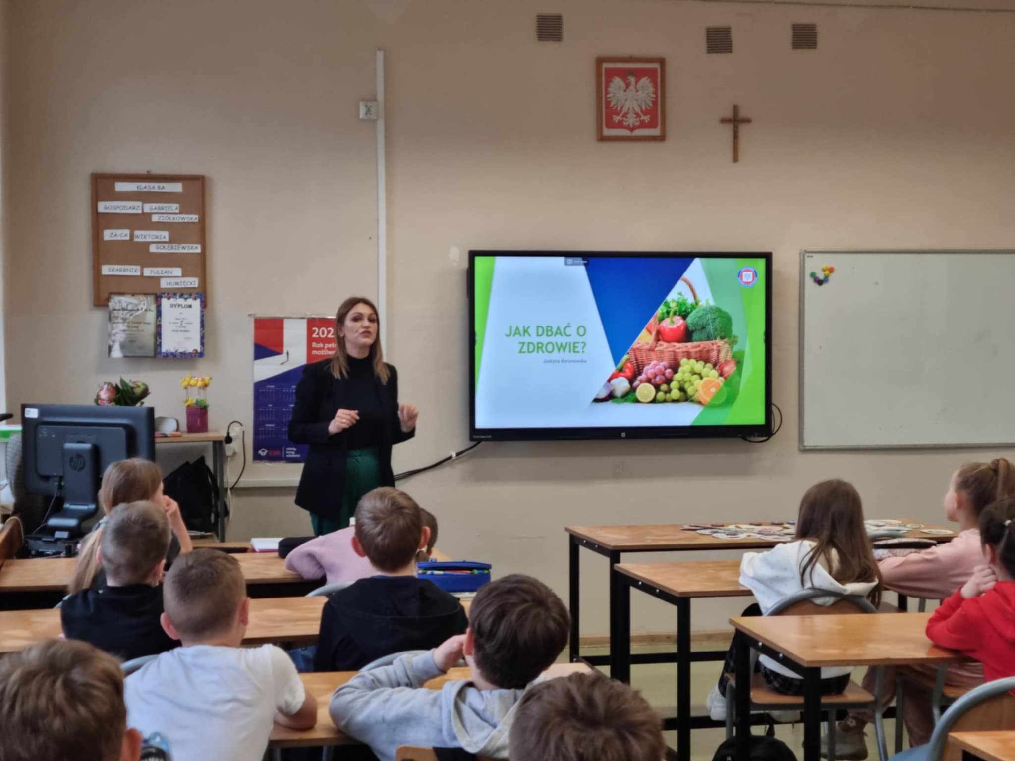 Podczas lekcji przyrody uczniowie klasy IV c spotkali się z panią dietetyk , która przybliżyła im zasady zdrowego odżywiania i aktywnego stylu życia.