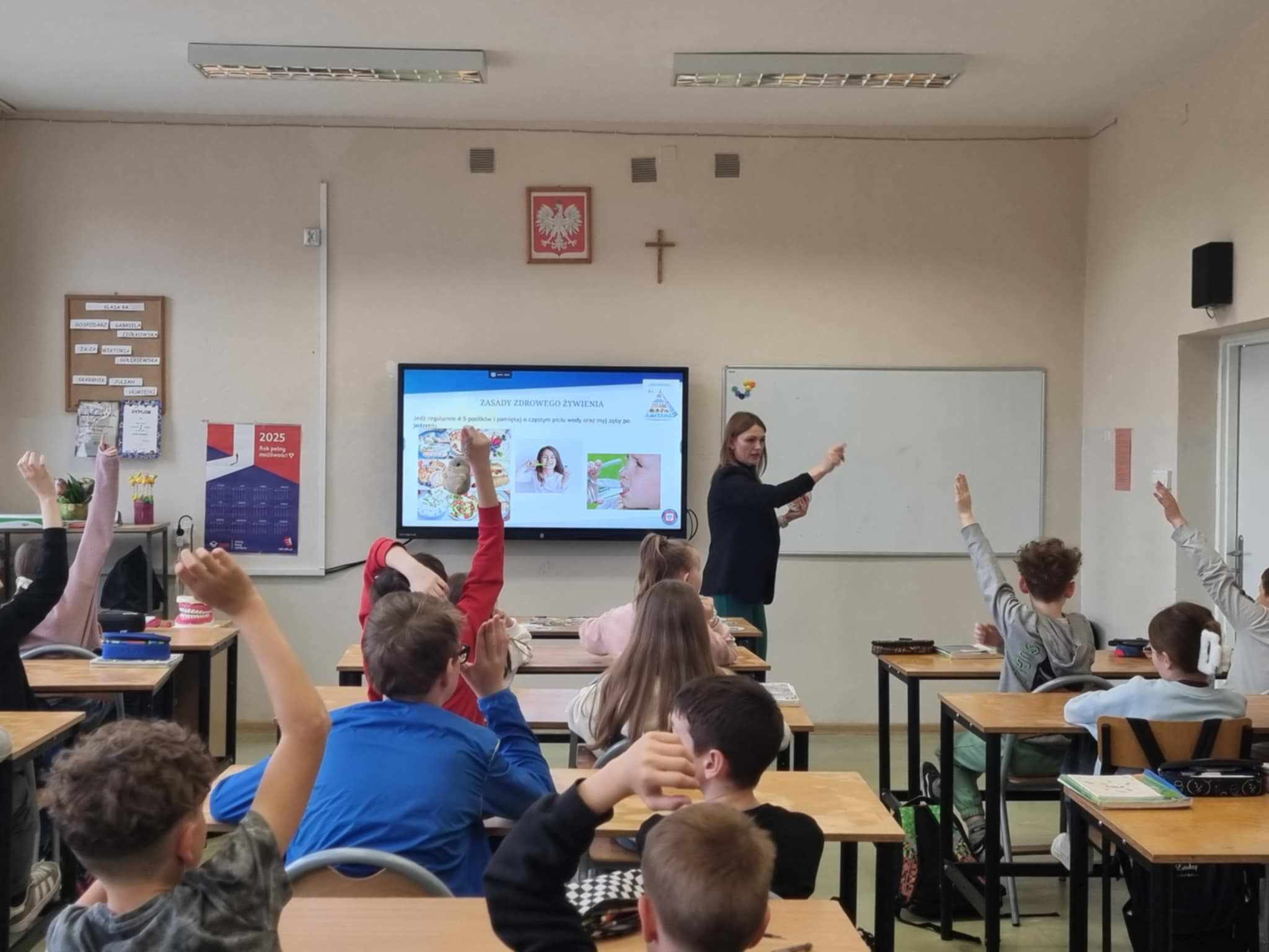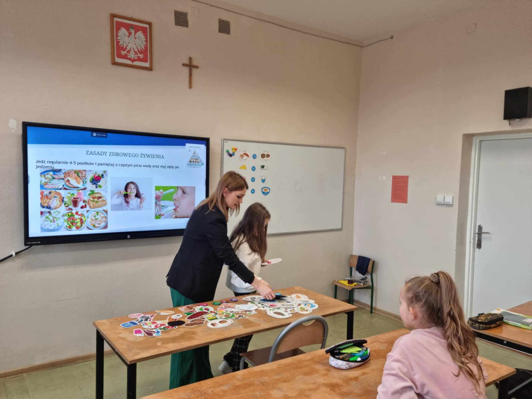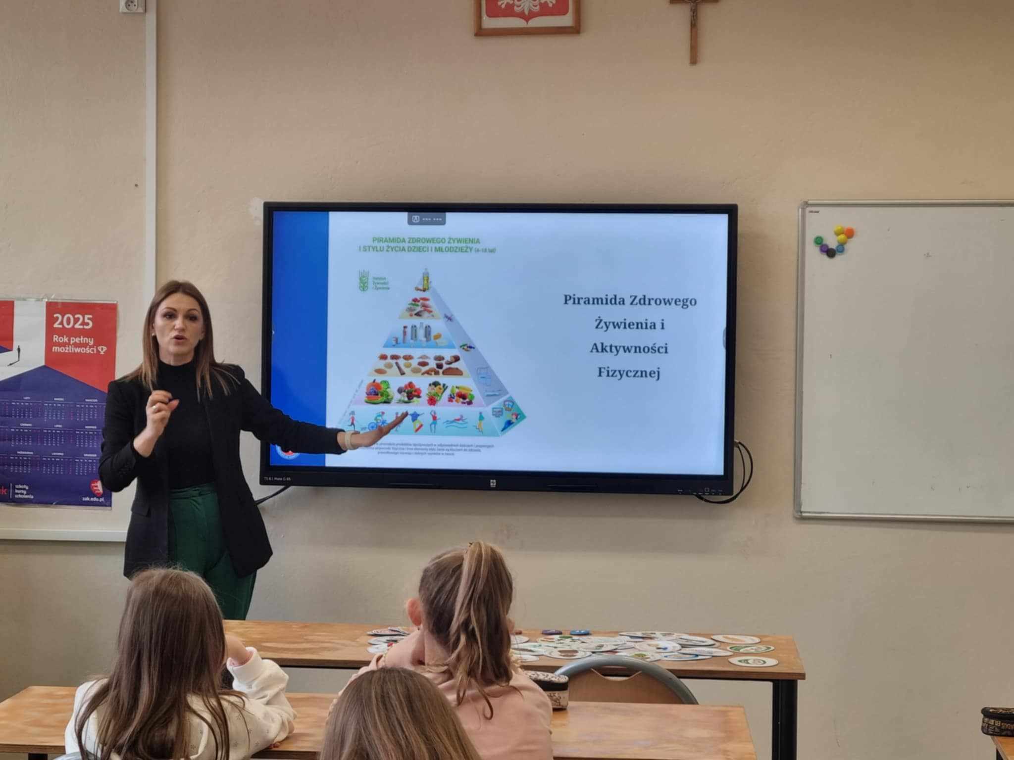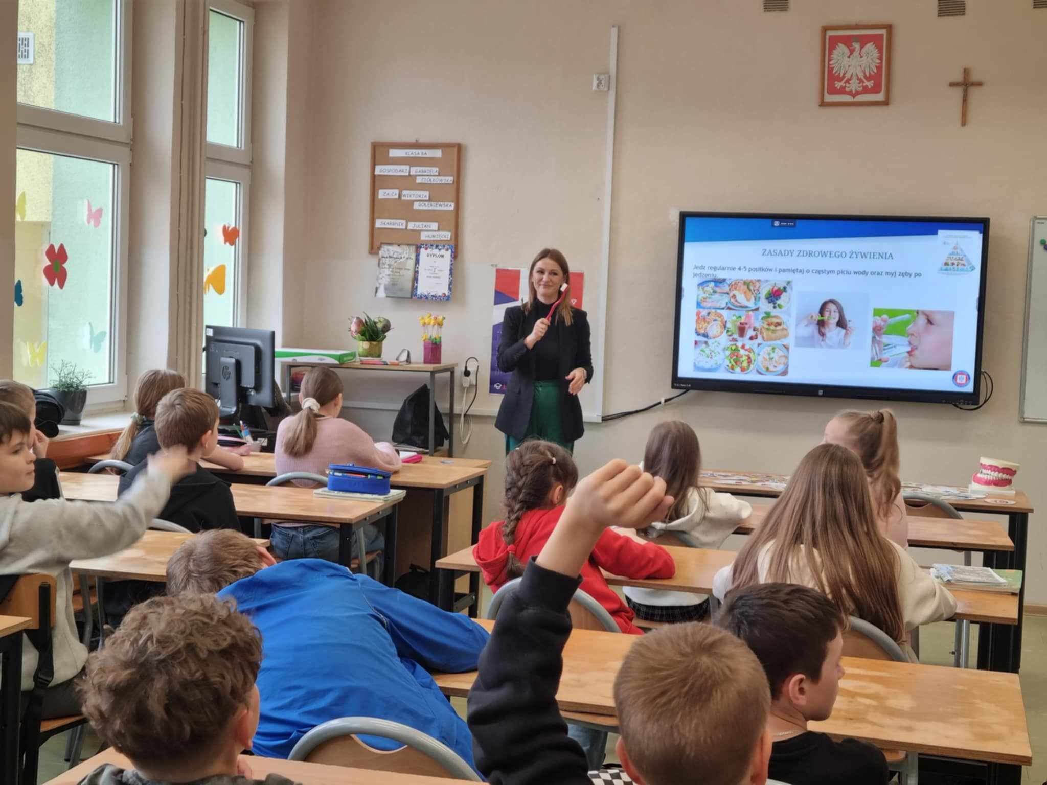 Podczas lekcji przyrody uczniowie klasy IV c spotkali się z panią dietetyk , która przybliżyła im zasady zdrowego odżywiania i aktywnego stylu życia.