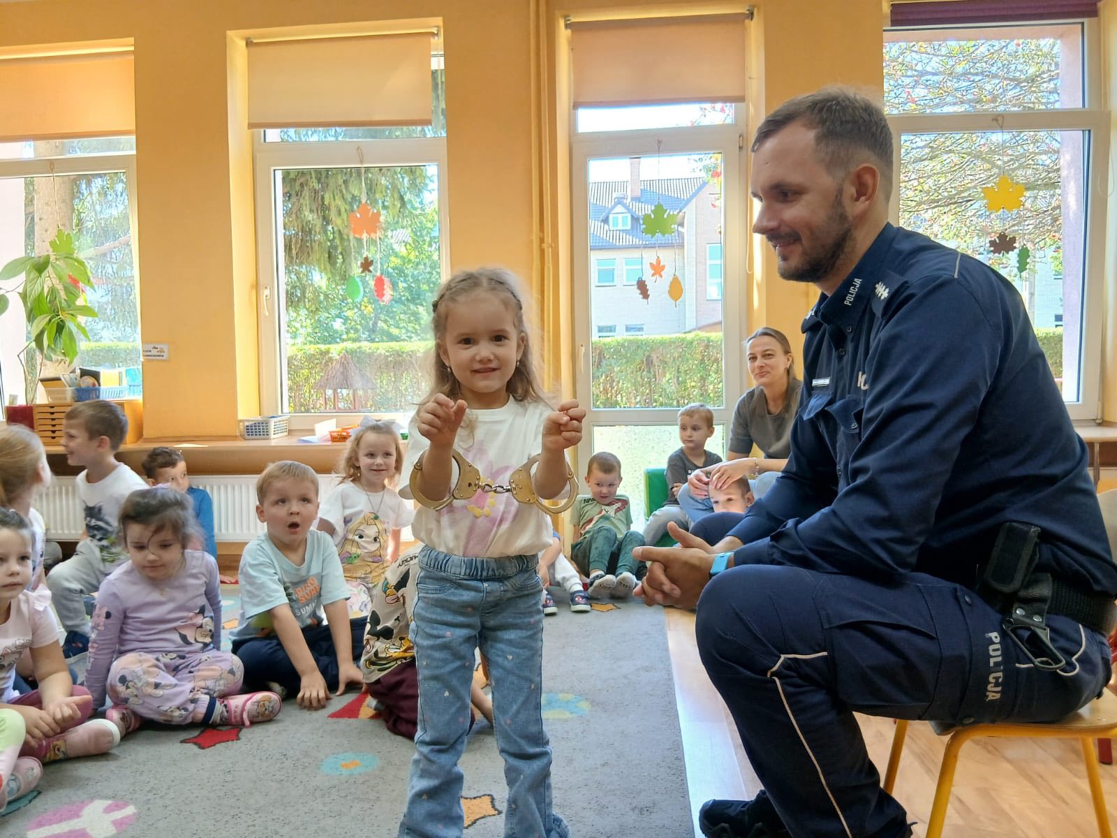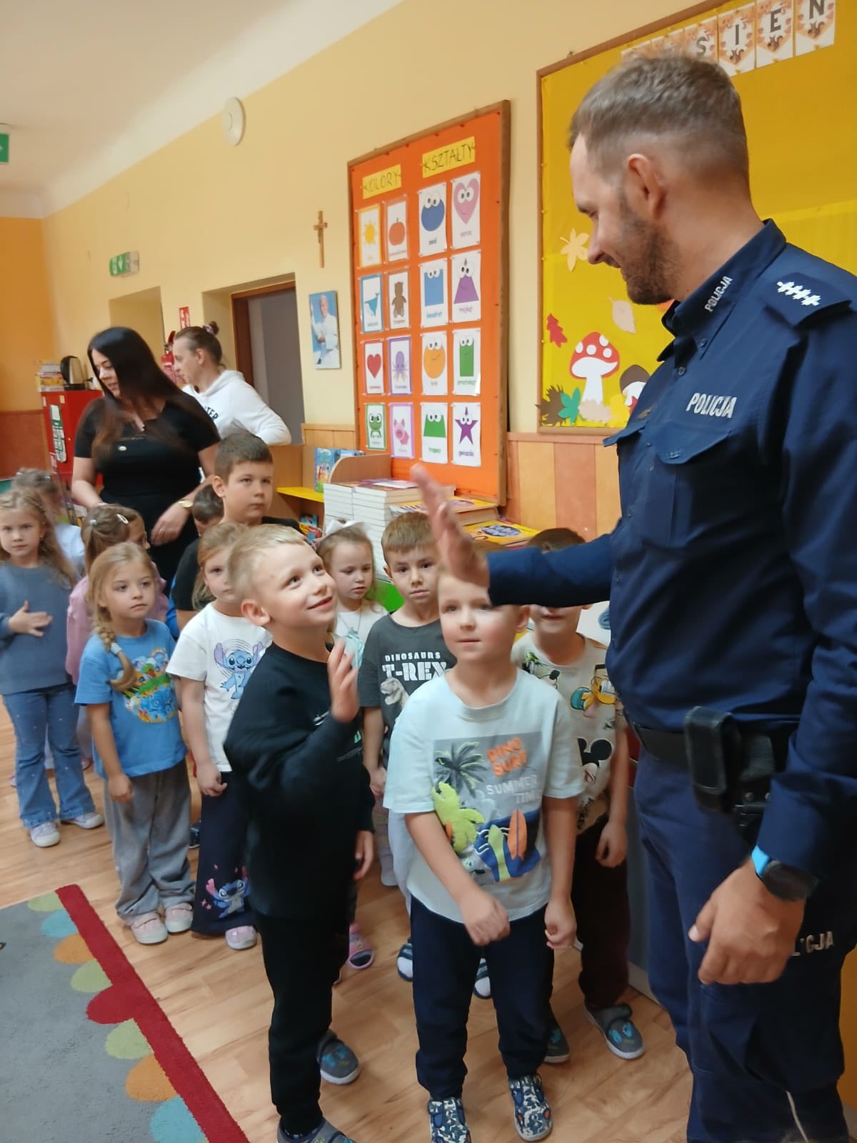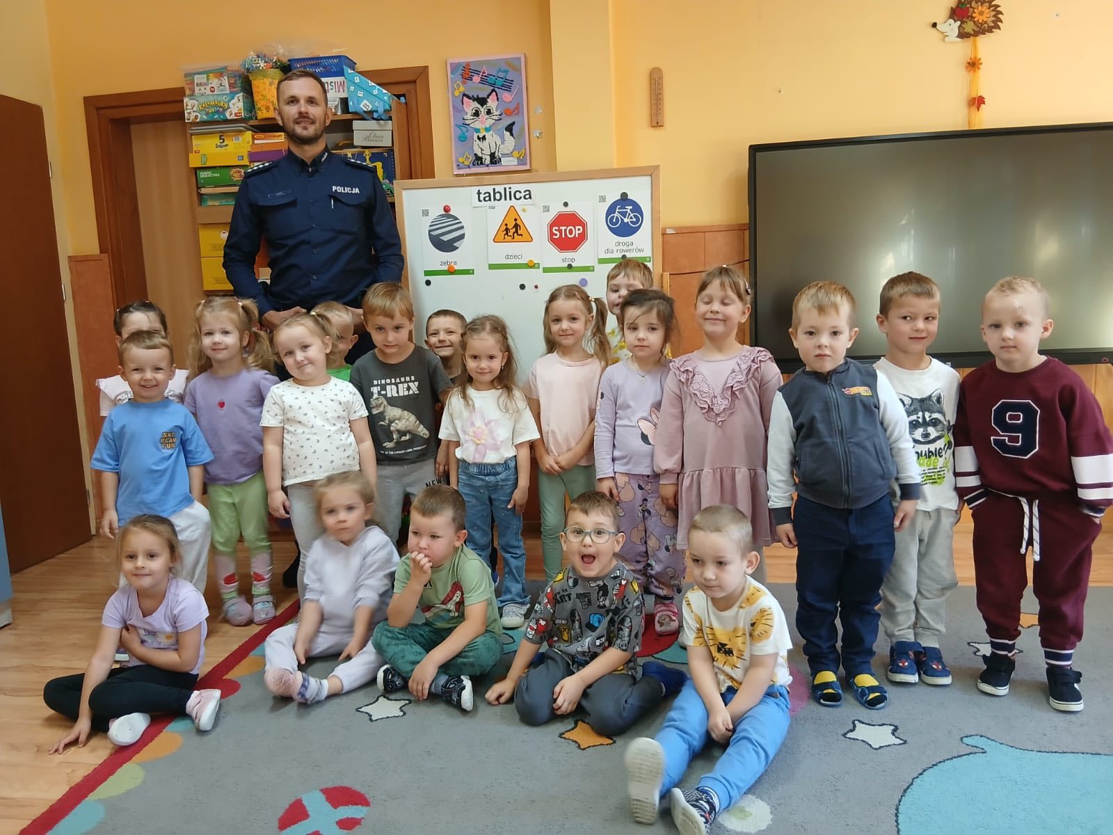 W Miejskim Przedszkolu SamorzÄ…dowym nr 4 odbyÅ‚o siÄ™ spotkanie z policjantem z Komendy Policji w MÅ‚awie. W wydarzeniu uczestniczyÅ‚y wszystkie grupy przedszkolne. Pan policjant opowiedziaÅ‚ przedszkolakom o zasadach bezpiecznego poruszania siÄ™ po drodze, przypomniaÅ‚, jak prawidÅ‚owo przechodzić przez przejÅ›cie dla pieszych i jak ważne jest noszenie elementów odblaskowych.