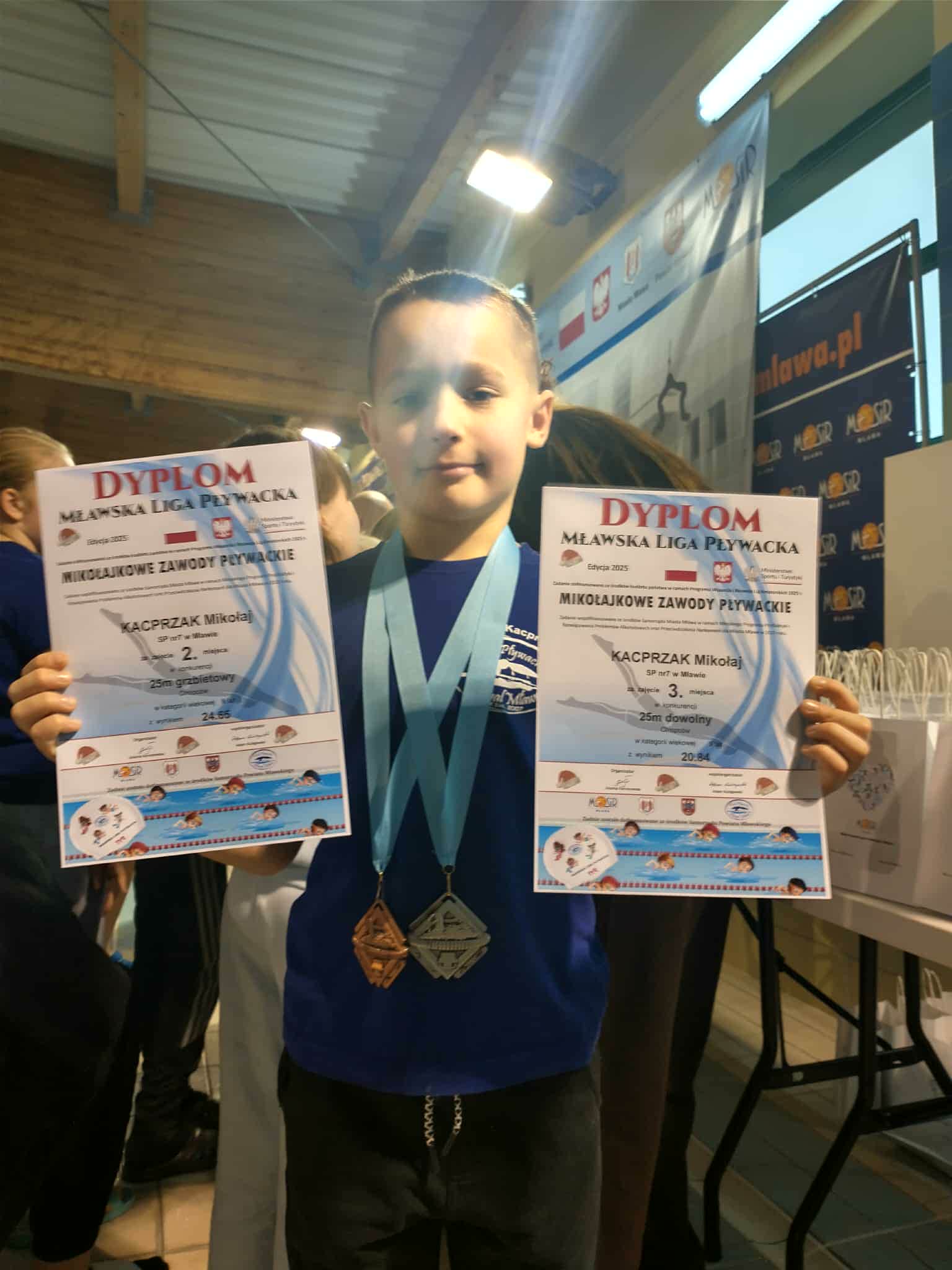 4 grudnia na krytej pływalni w Mławie odbyły się mikołajkowe zawody pływackie, w których z dużym powodzeniem wystartowali uczniowie naszej szkoły. Rywalizacja była bardzo zacięta, a nasi reprezentanci zaprezentowali wysoki poziom umiejętności, zdobywając liczne miejsca na podium.