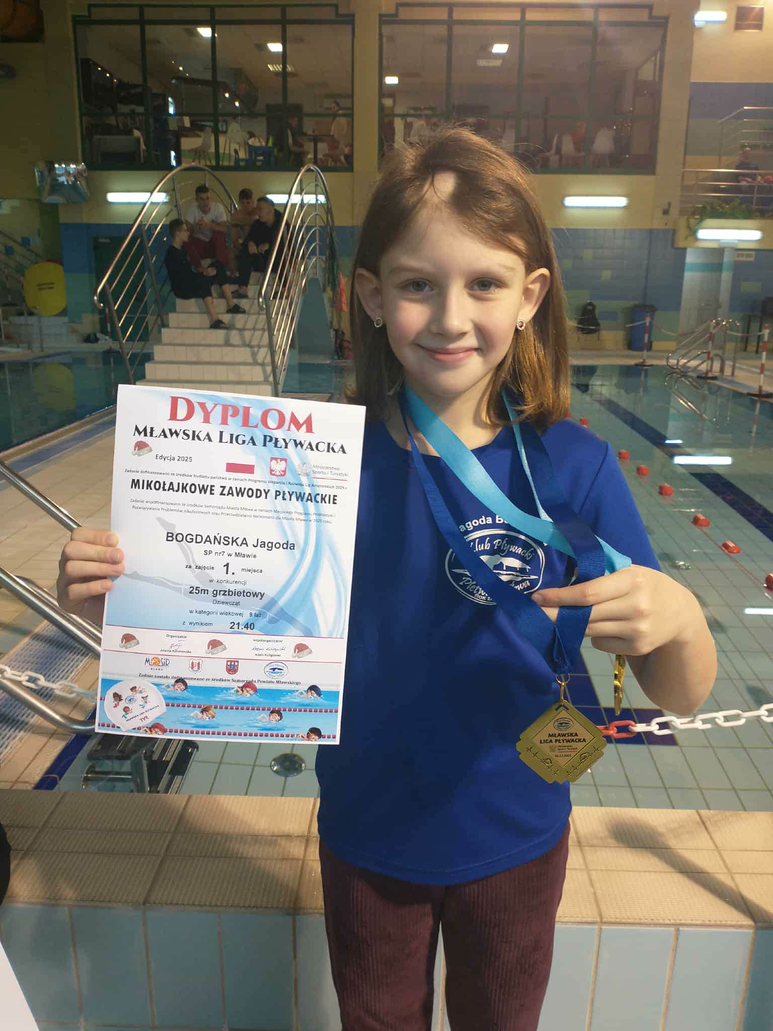 Jagoda Bogdańska – I miejsce na 25 m stylem grzbietowym, I miejsce na 25 m stylem dowolnym