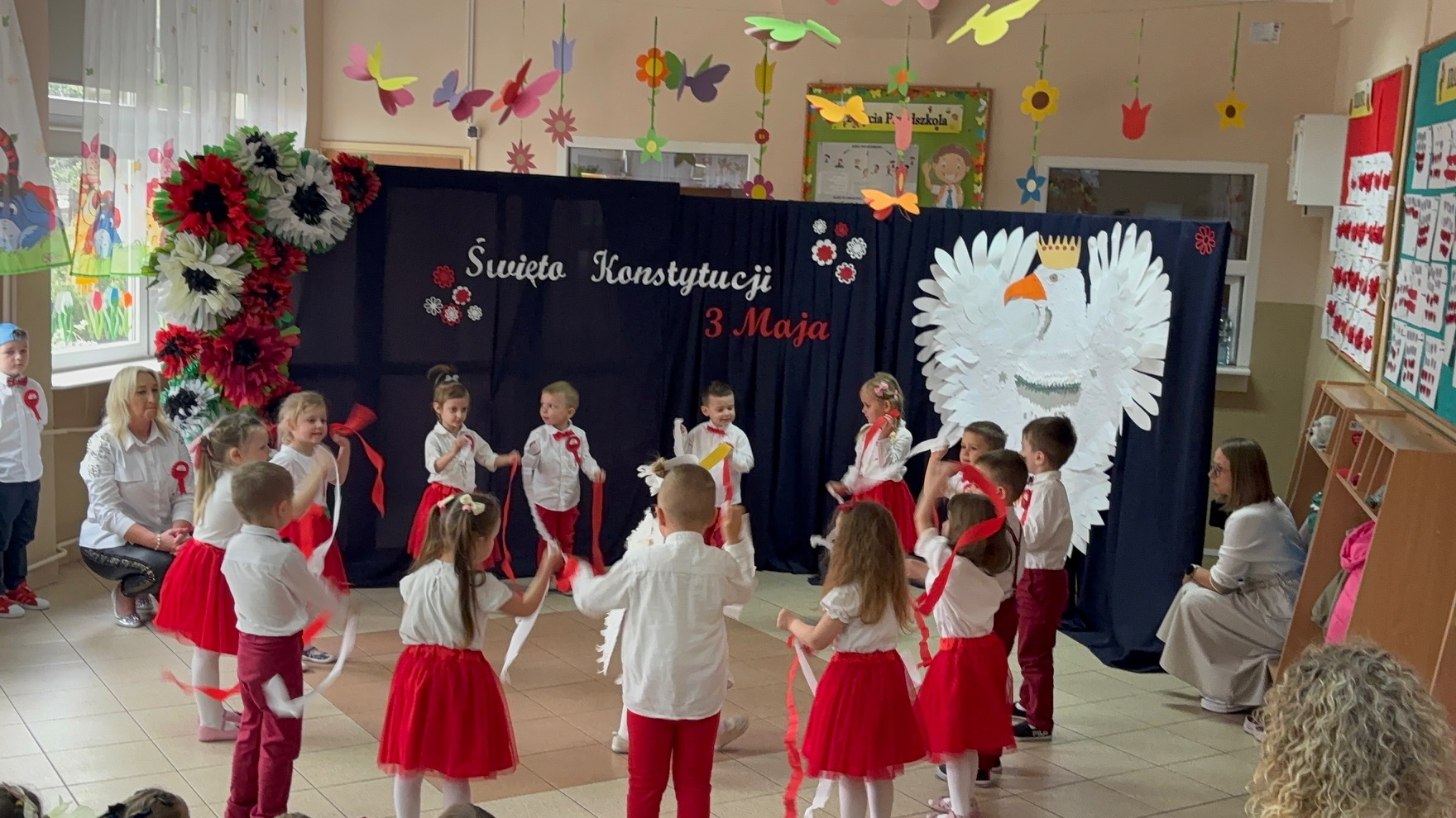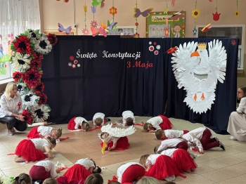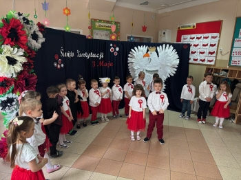 Pierwsze majowe dni są dla nas Polaków świętem patriotyzmu. Dziś obchodziliśmy w naszym Przedszkolu rocznicę uchwalenia Konstytucji 3 Maja.Grupa Krasnali prezentowała się niezwykle uroczyście w biało – czerwonych strojach. Podkreślając wagę naszych symboli narodowych: Godła, Flagi, Hymnu oraz znaczenia Ojczyzny w naszym życiu. Przedszkolaki z powagą i dumą zaśpiewały Hymn Polski „Mazurek Dąbrowskiego”. Było przepięknie, wzruszająco i uroczyście. Dla młodego pokolenia to bardzo cenna lekcja patriotyzmu, która na długo pozostanie w pamięci naszych „Małych Polaków”.