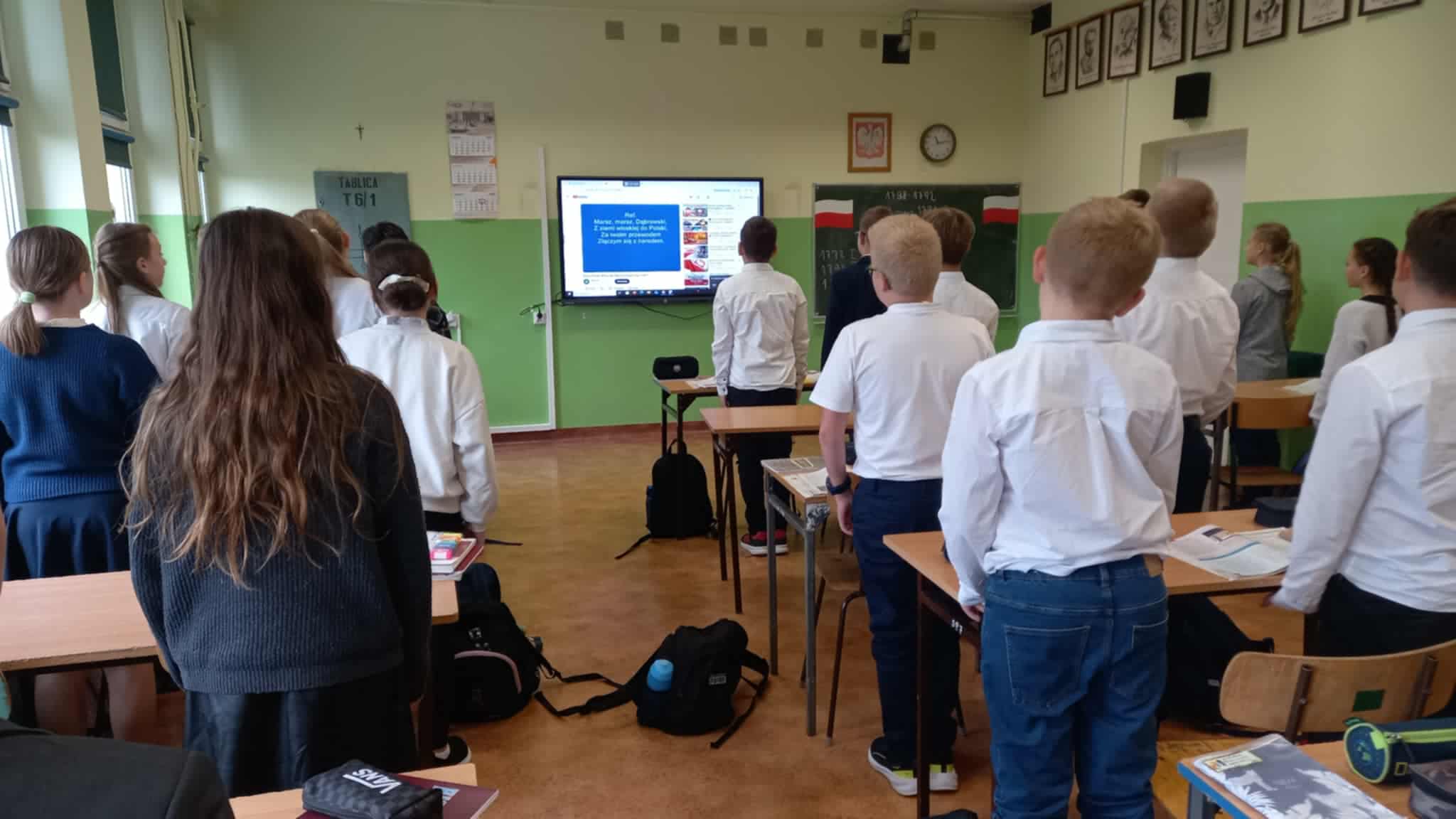 Dziś, dokładnie o godzinie 11:11, cała społeczność naszej szkoły włączyła się w ogólnopolską akcję „Szkoła do hymnu”, organizowaną z okazji Narodowego Święta Niepodległości. Uczniowie, nauczyciele i pracownicy szkoły wspólnie, z dumą i wzruszeniem, odśpiewali „Mazurek Dąbrowskiego” – hymn, który od pokoleń łączy Polaków i przypomina nam o sile, odwadze i miłości do ojczyzny. To wyjątkowy moment, który pokazał, że patriotyzm i wspólne wartości są wciąż żywe w sercach młodych ludzi