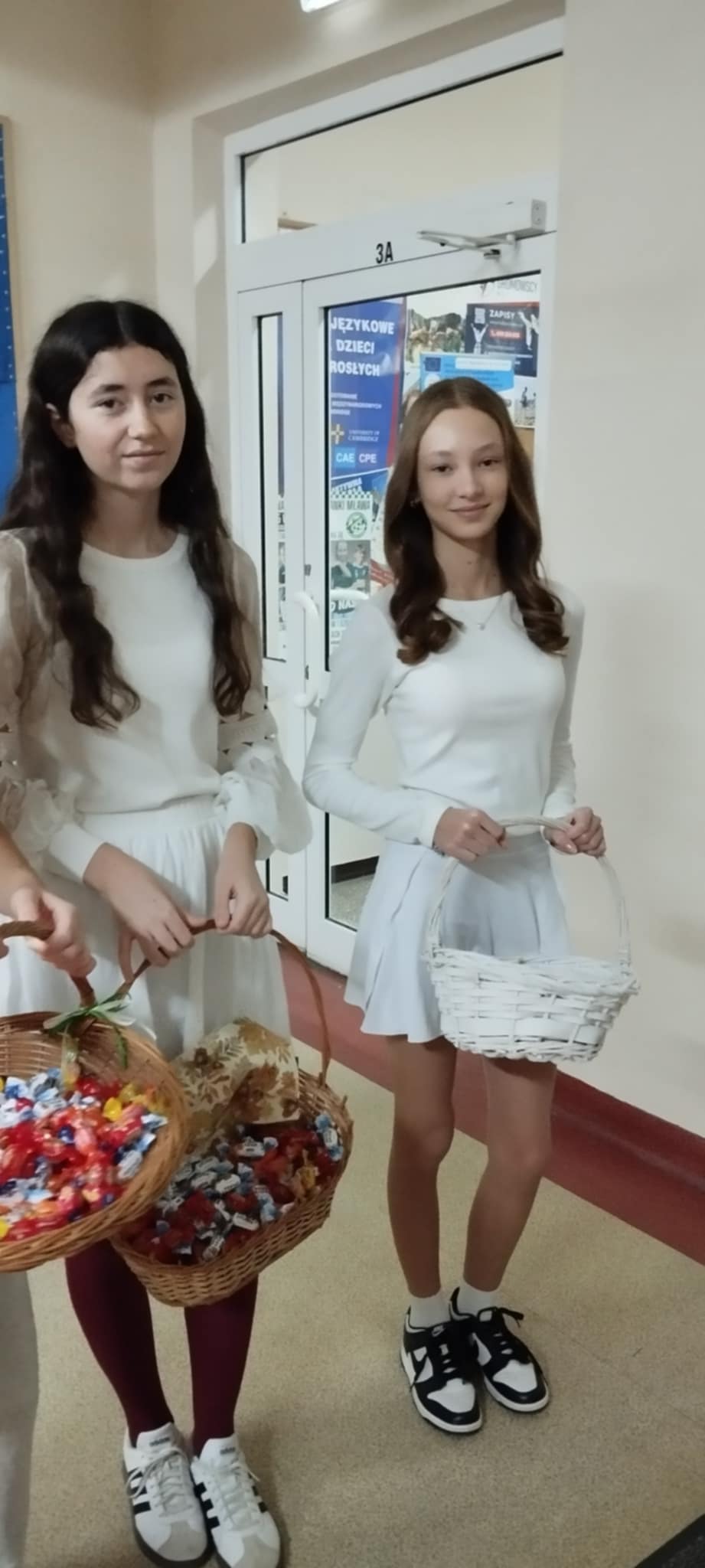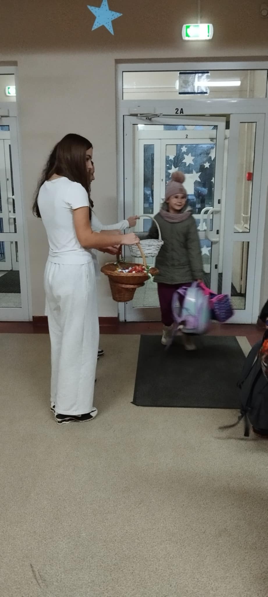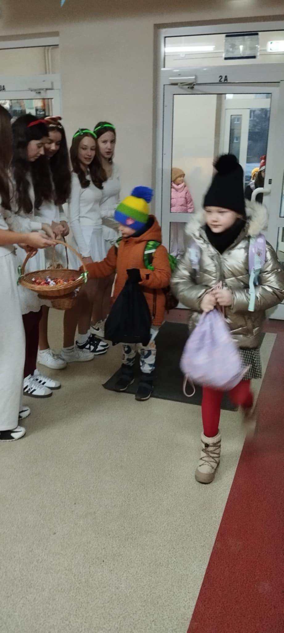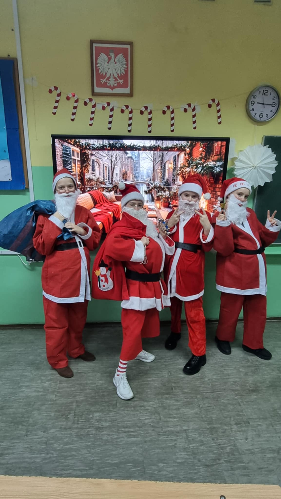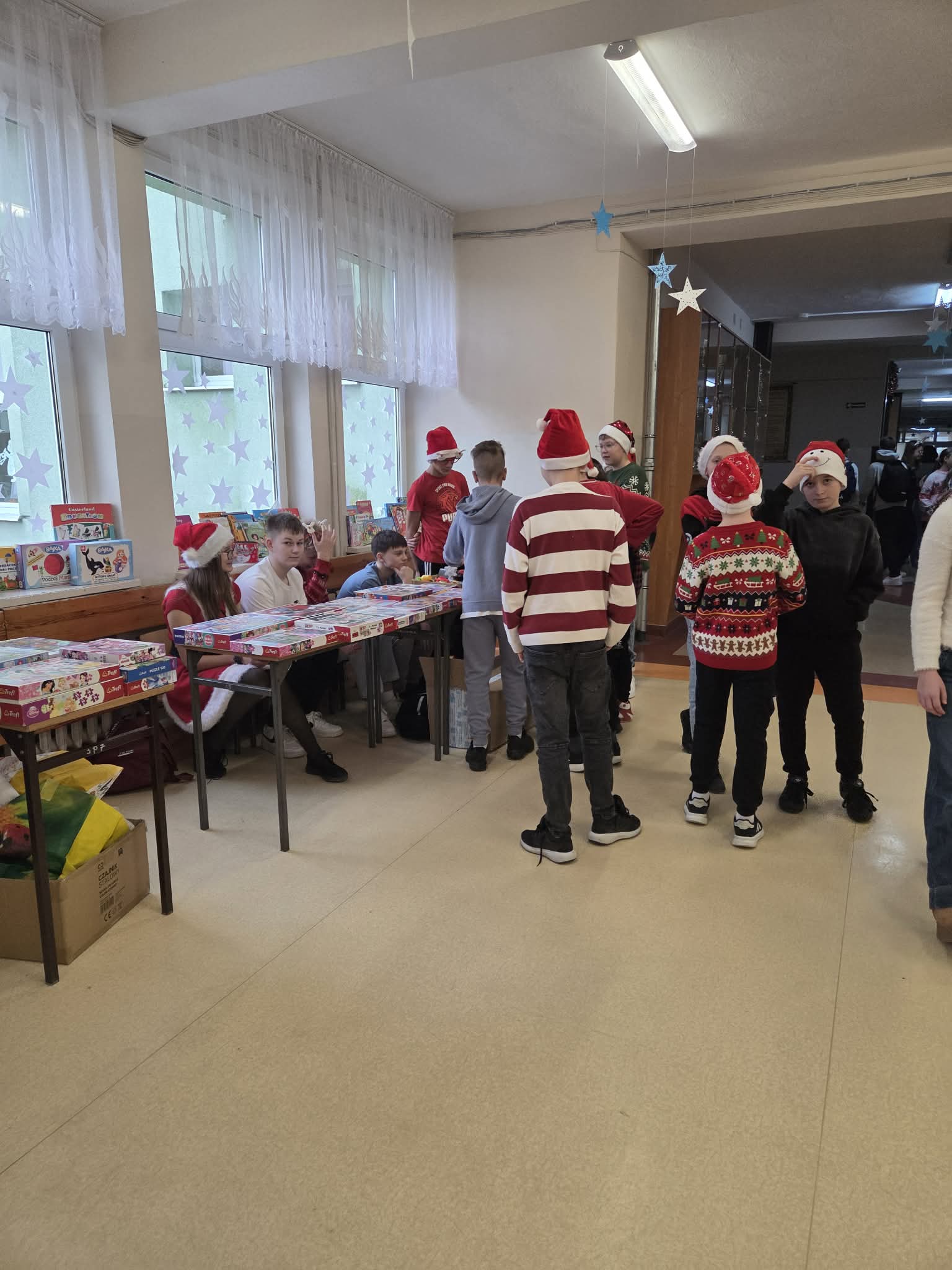 Już od progu dało się poczuć wyjątkową atmosferę! Przy drzwiach wejściowych na uczniów i nauczycieli czekały uśmiechnięte śnieżynki, które witały wszystkich miłym słowem oraz słodkim poczęstunkiem. Tak rozpoczęliśmy ten niezwykle radosny dzień!