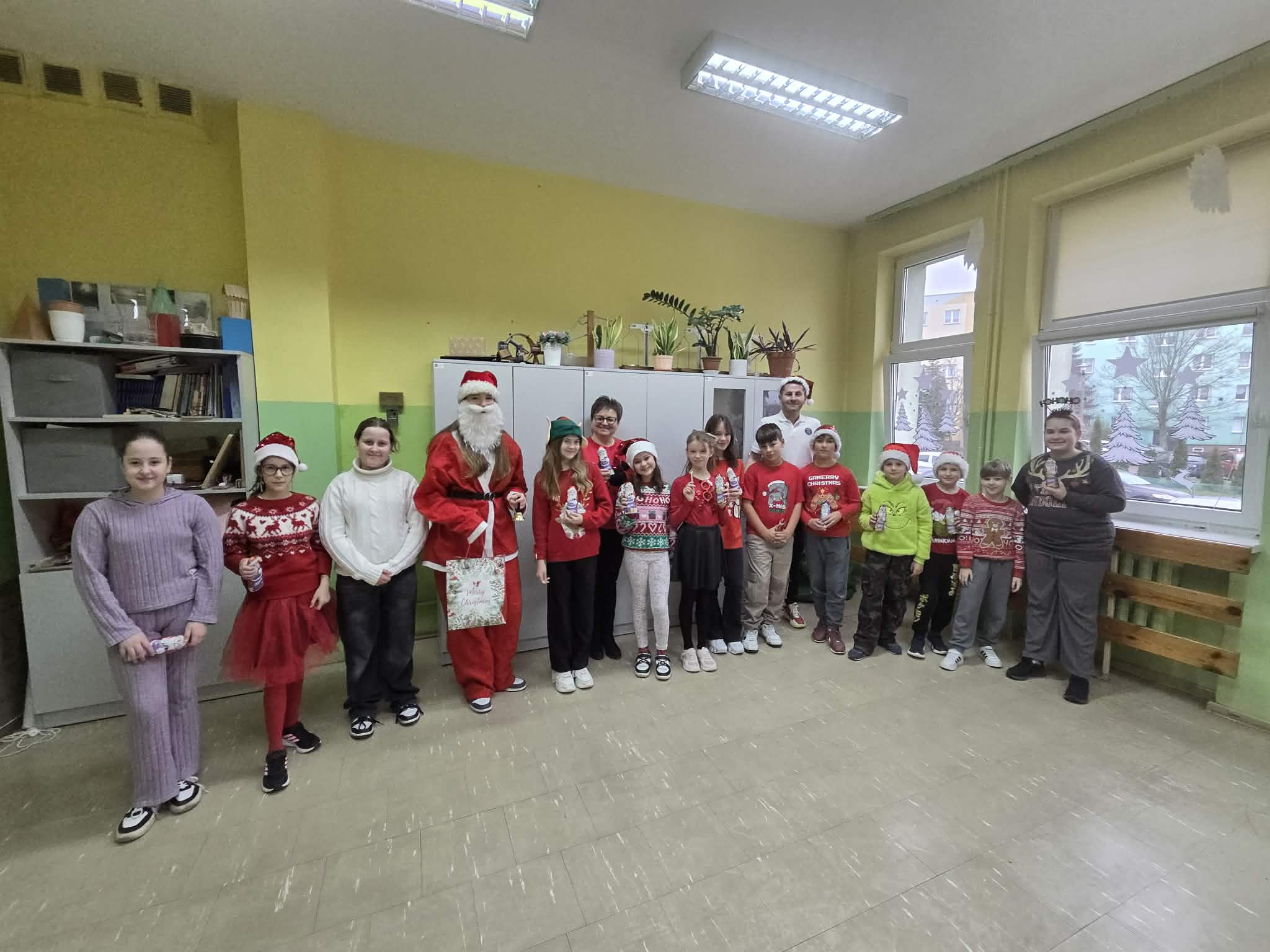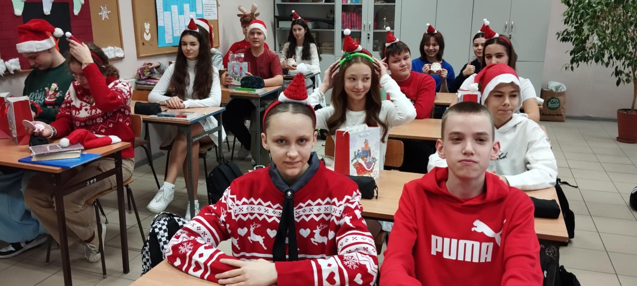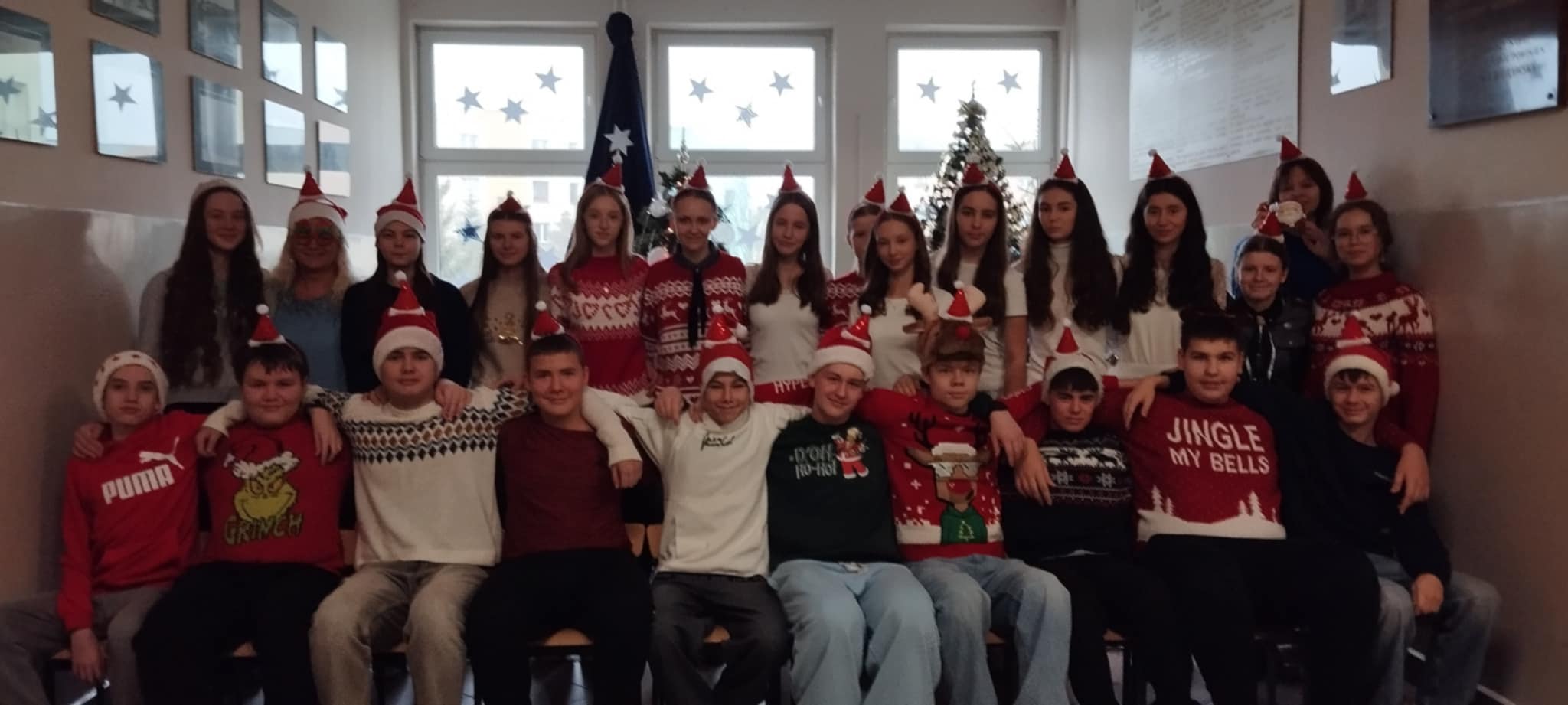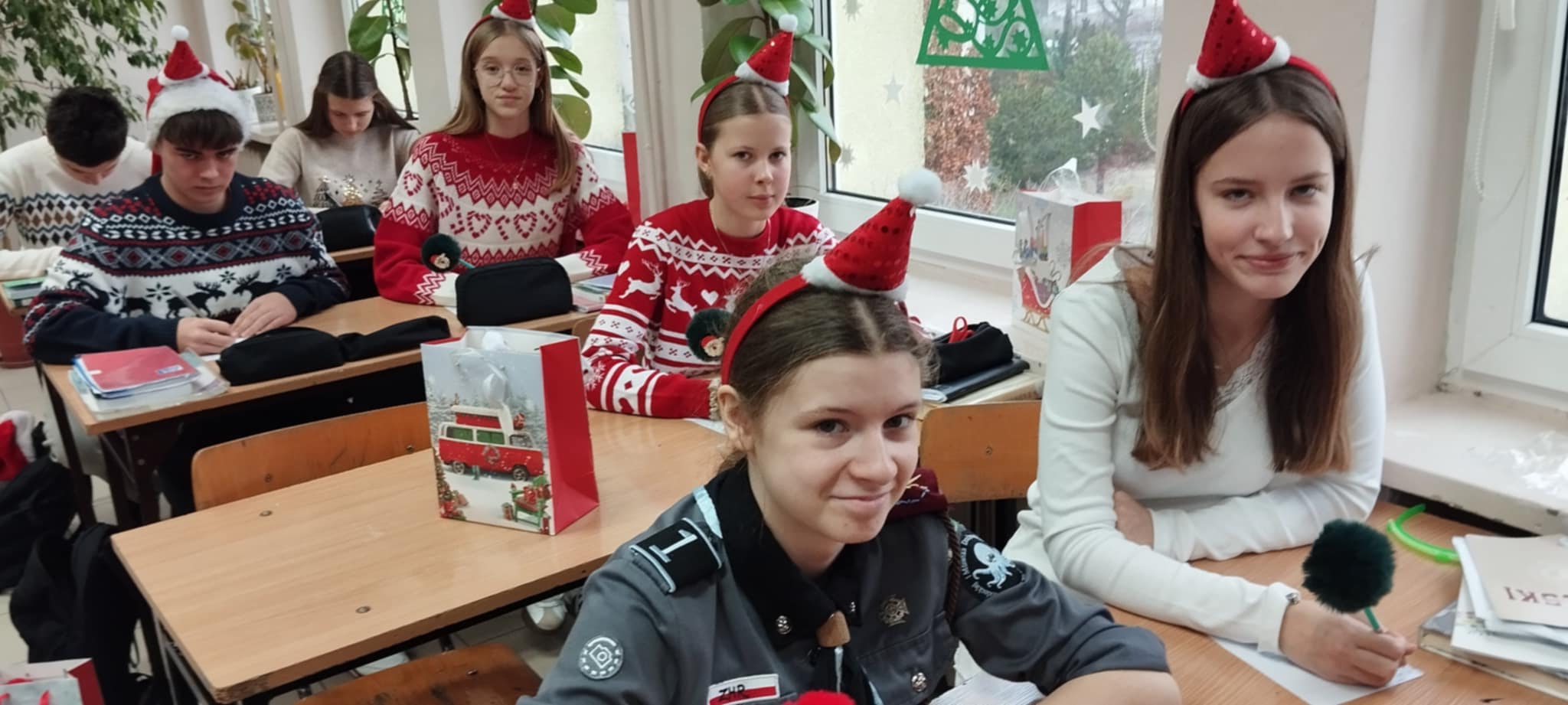 Korytarze wypełniły się świątecznymi sweterkami, opaskami z reniferami oraz czapkami św. Mikołaja. Zarówno uczniowie, jak i nauczyciele z entuzjazmem włączyli się w zabawę, tworząc niezapomniany, świąteczny klimat.