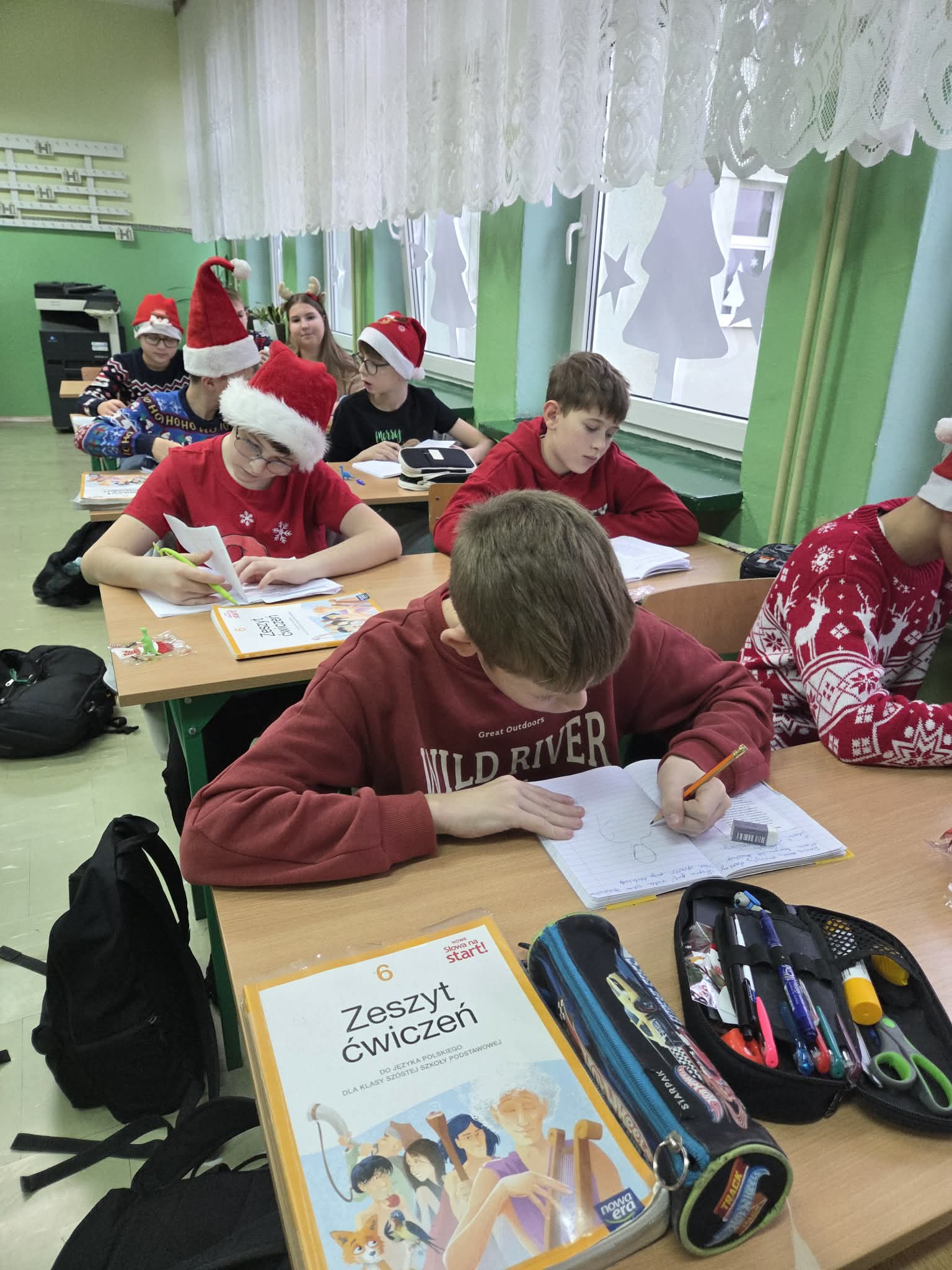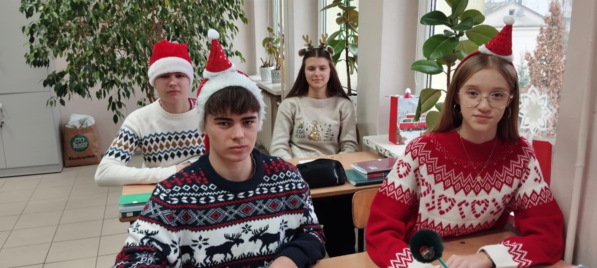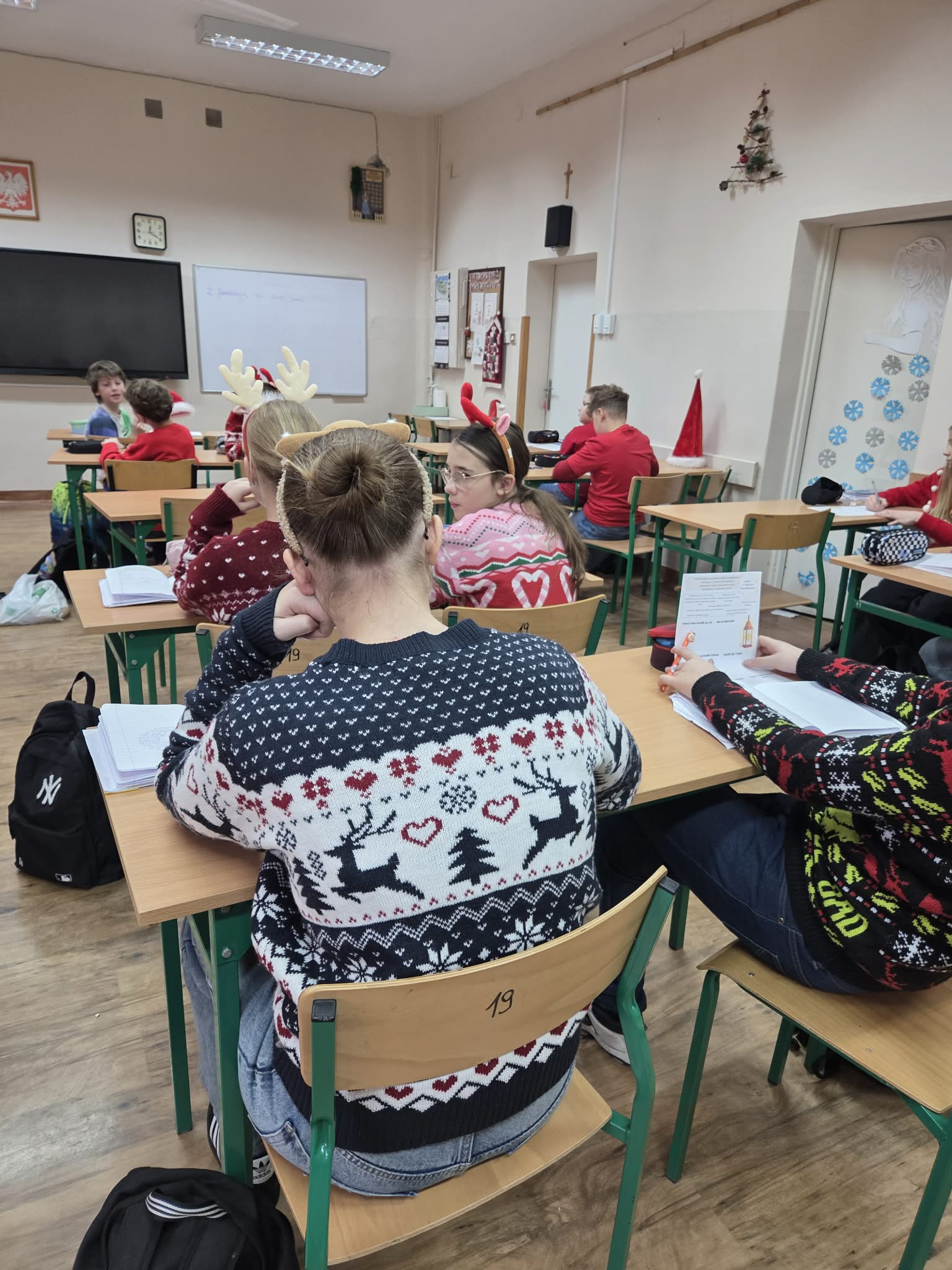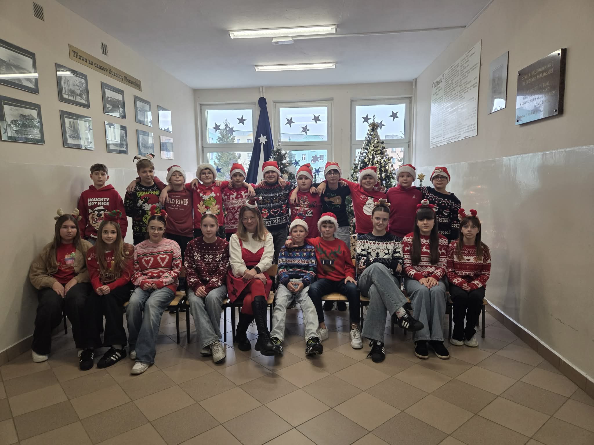 Korytarze wypełniły się świątecznymi sweterkami, opaskami z reniferami oraz czapkami św. Mikołaja. Zarówno uczniowie, jak i nauczyciele z entuzjazmem włączyli się w zabawę, tworząc niezapomniany, świąteczny klimat.