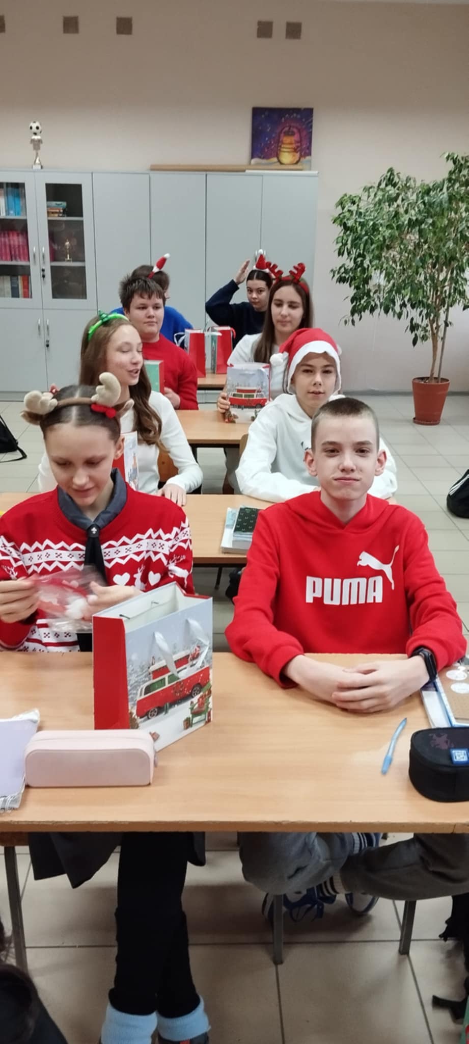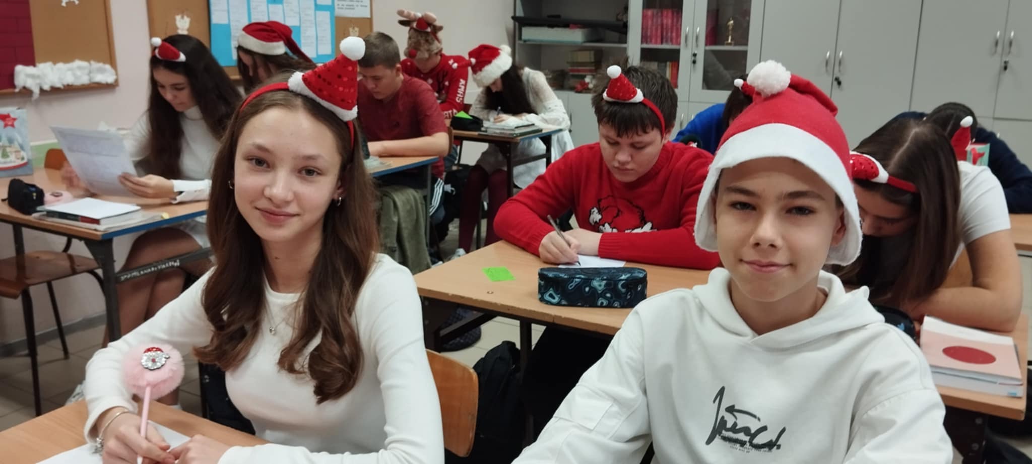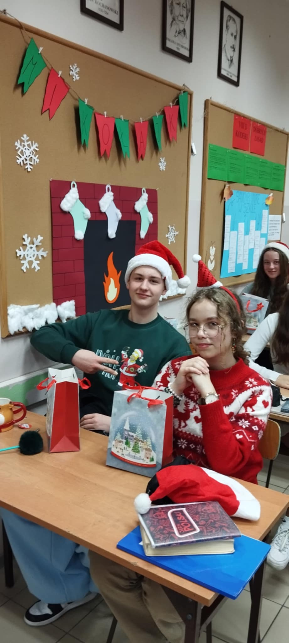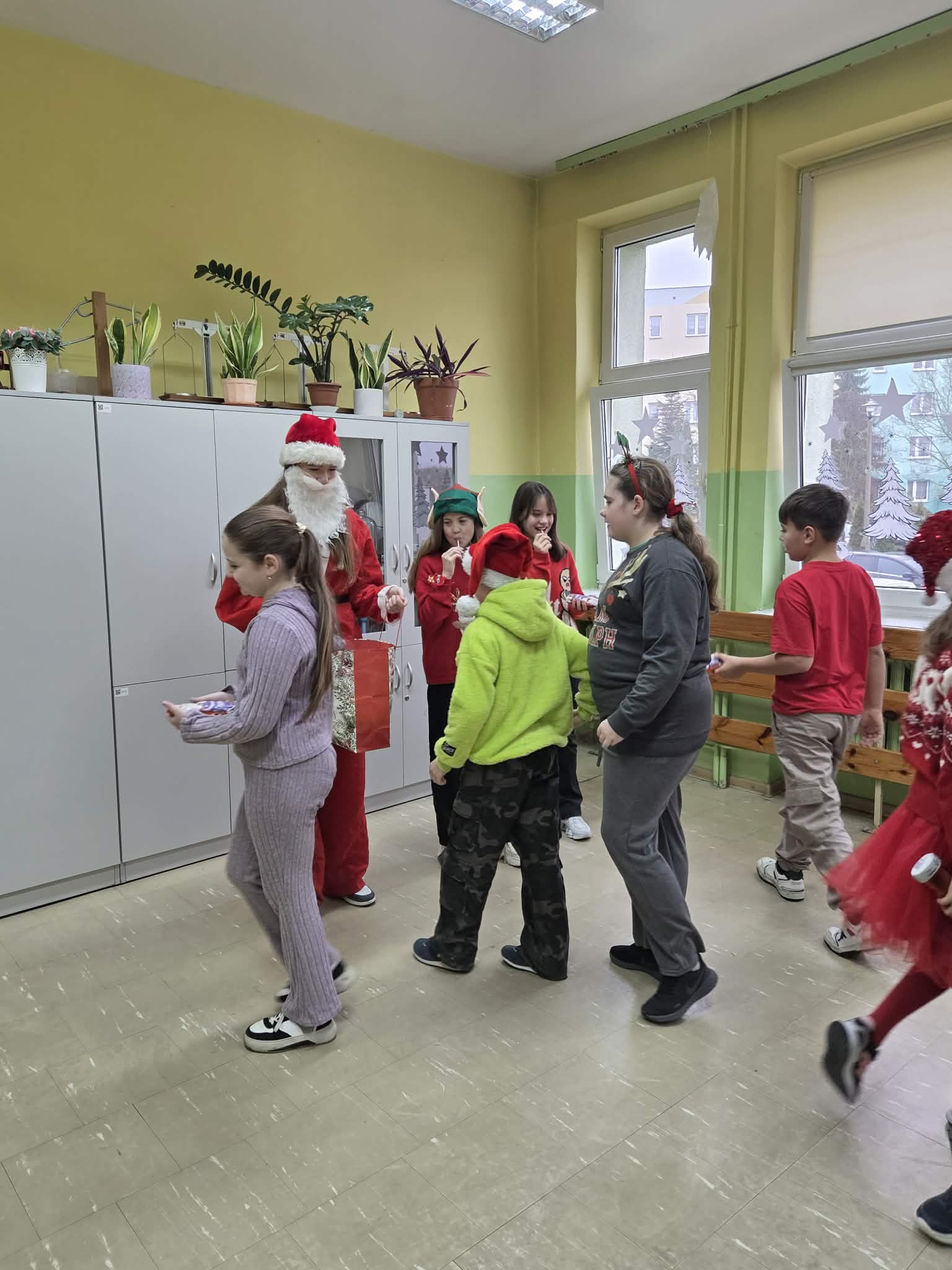 Korytarze wypełniły się świątecznymi sweterkami, opaskami z reniferami oraz czapkami św. Mikołaja. Zarówno uczniowie, jak i nauczyciele z entuzjazmem włączyli się w zabawę, tworząc niezapomniany, świąteczny klimat.