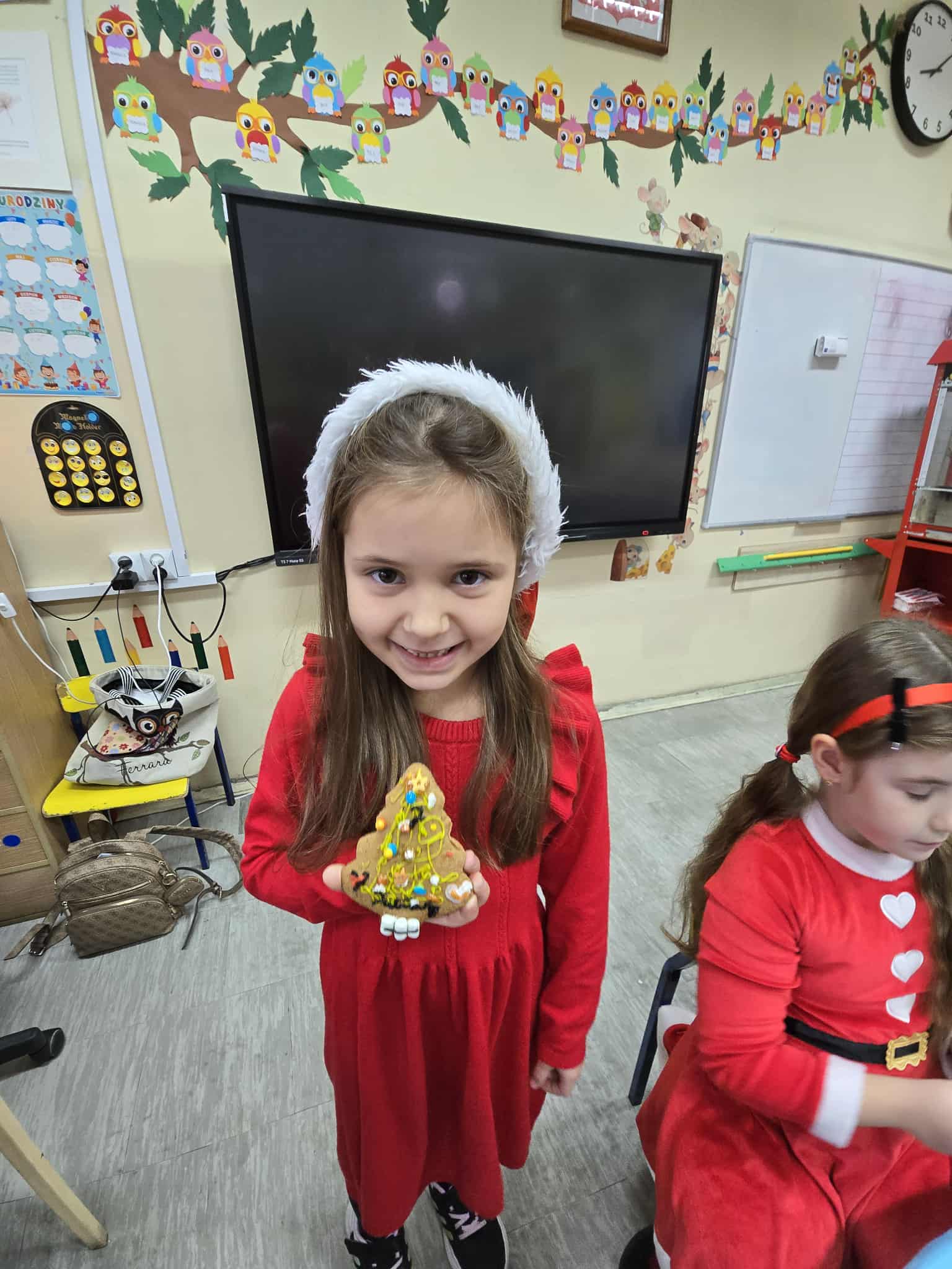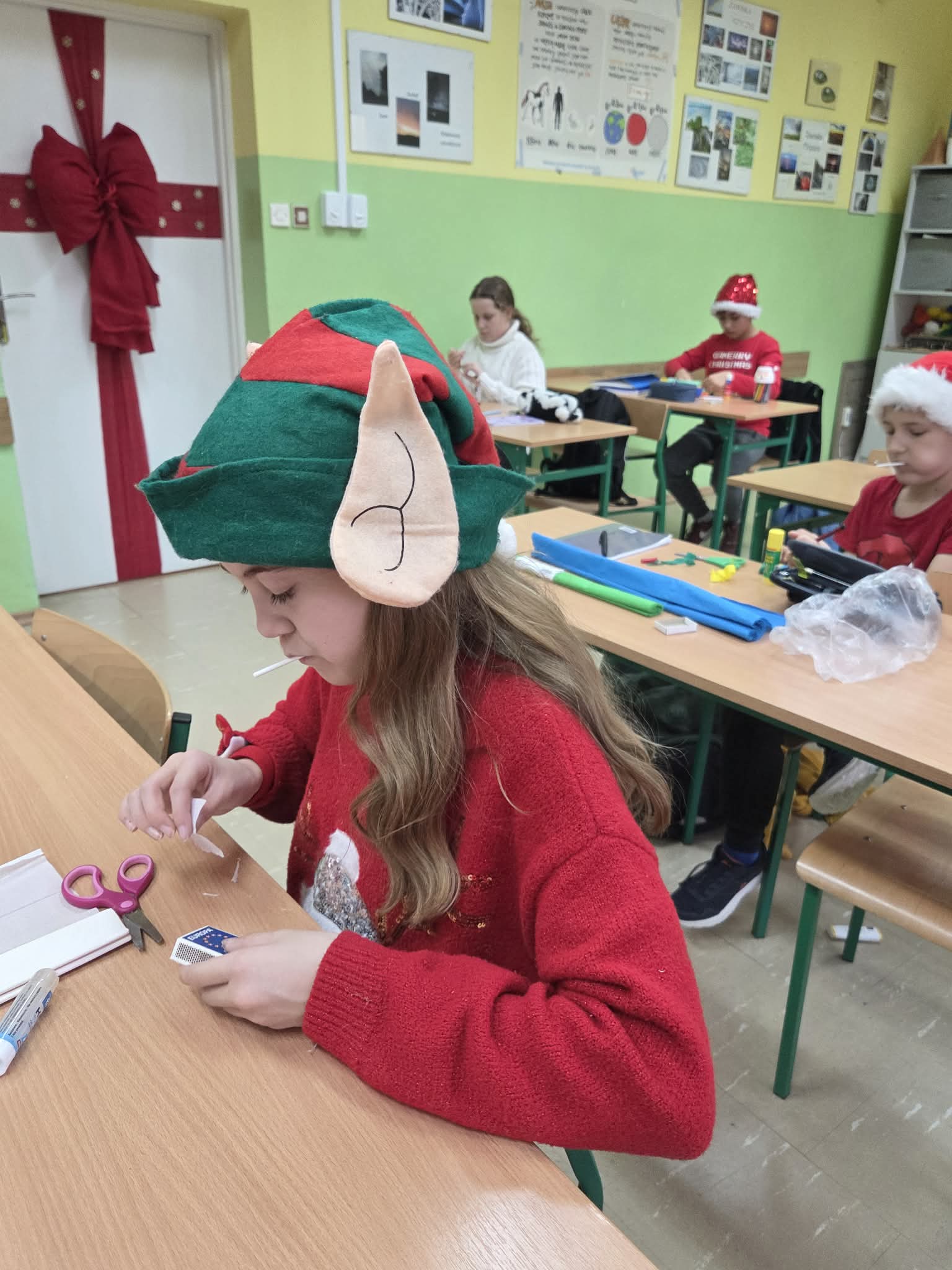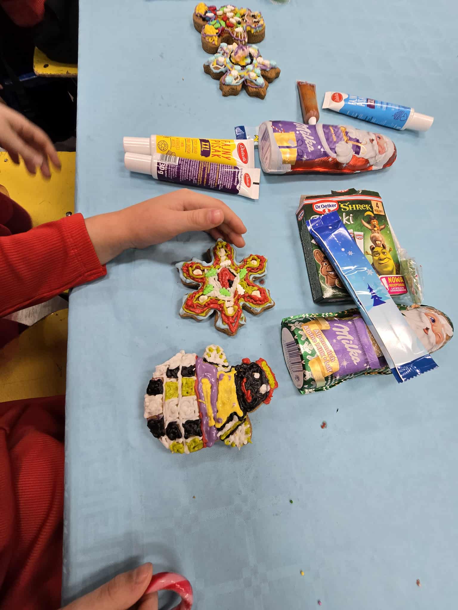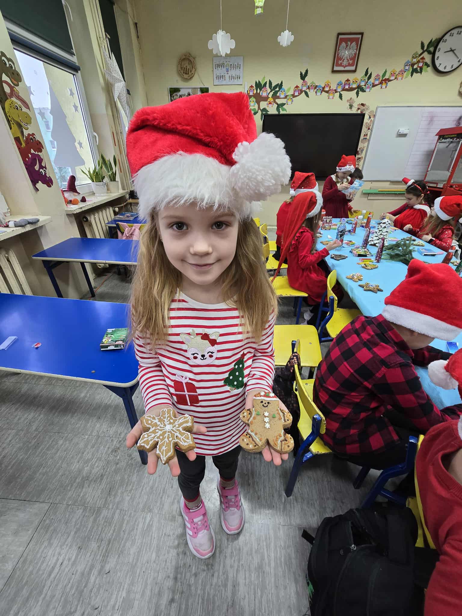 Również podczas lekcji panowała niezwykła atmosfera. Uczniowie ozdabiali pierniczki, rozwijając swoje zdolności artystyczne i jednocześnie świetnie się bawiąc. Na zajęciach z języka polskiego powstawały wiersze obrazkowe o tematyce bożonarodzeniowej, uczniowie omawiali także związki frazeologiczne związane ze światłem, które idealnie wpisały się w klimat zbliżających się świąt.