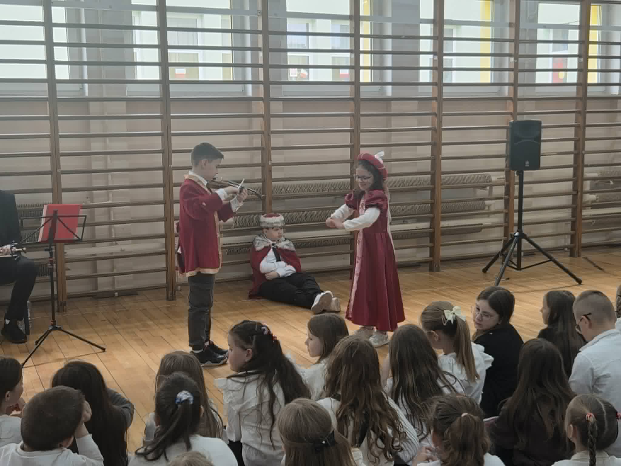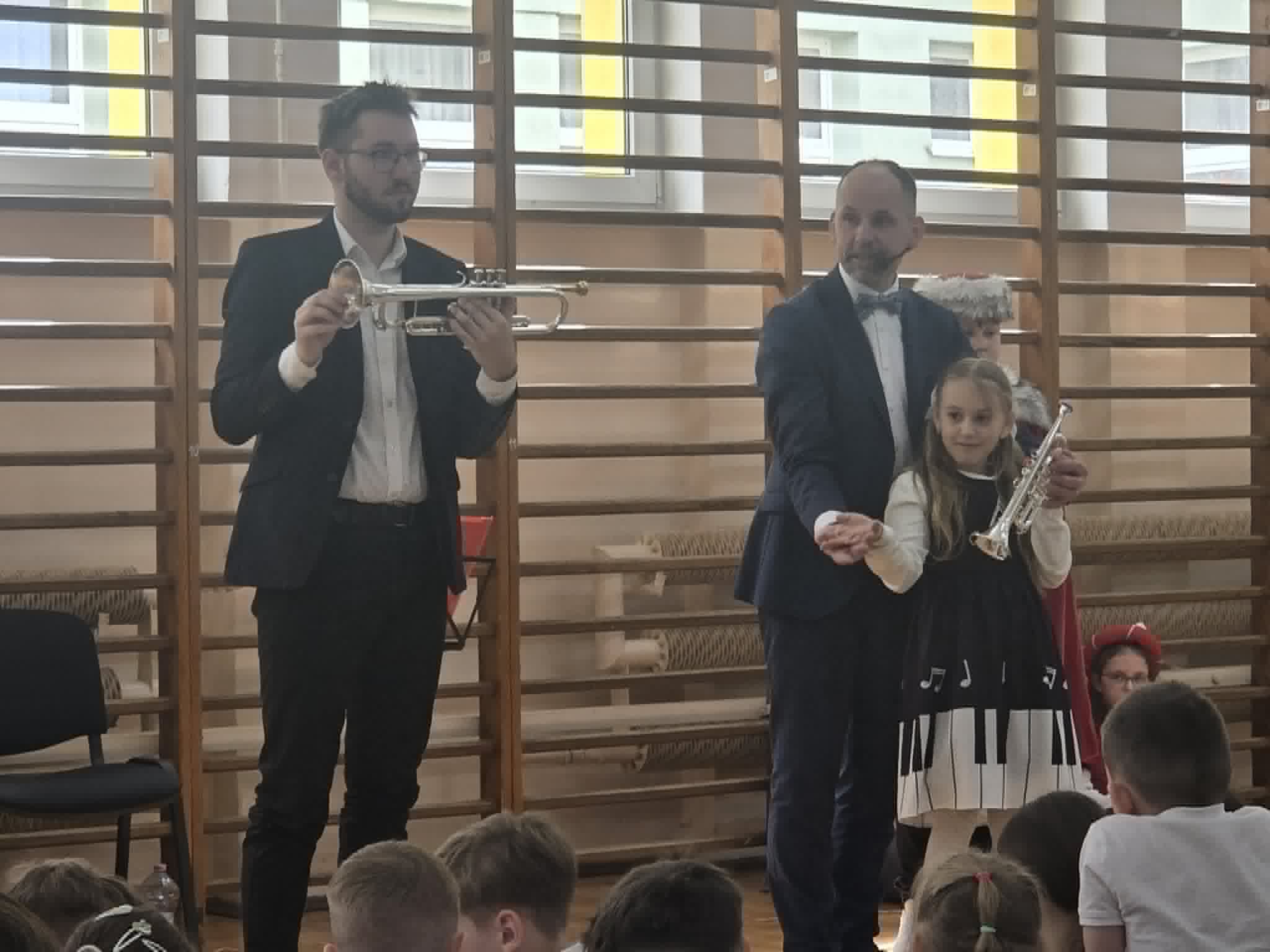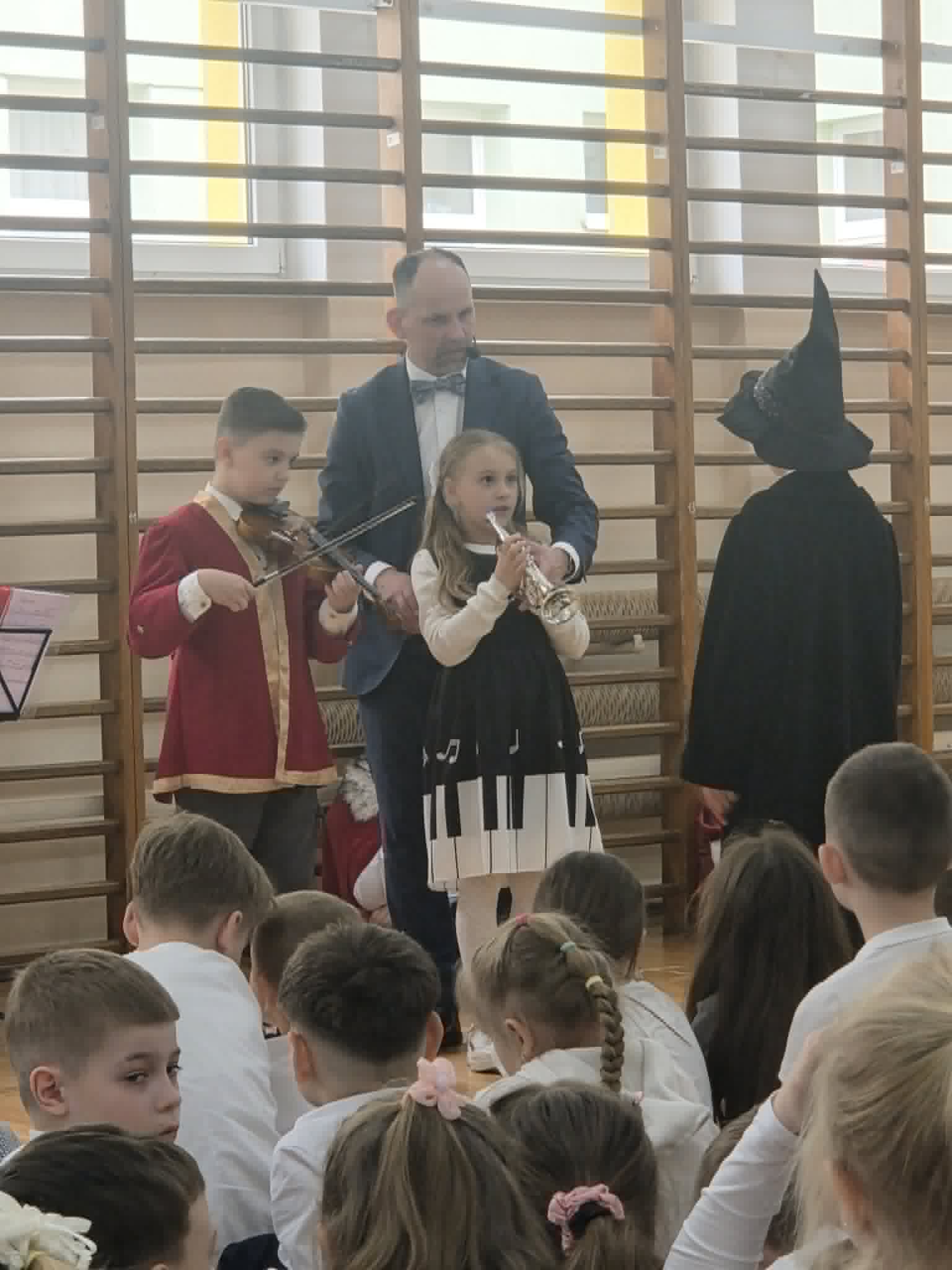 Uczniowie klas 1–3 wzięli udział w wyjątkowej audycji muzycznej pt. „Muzyczny czarodziej", która odbyła się w naszej szkole. Tym razem to artyści przyjechali do dzieci, zamieniając szkolną salę gimnastyczną w prawdziwą filharmonię.