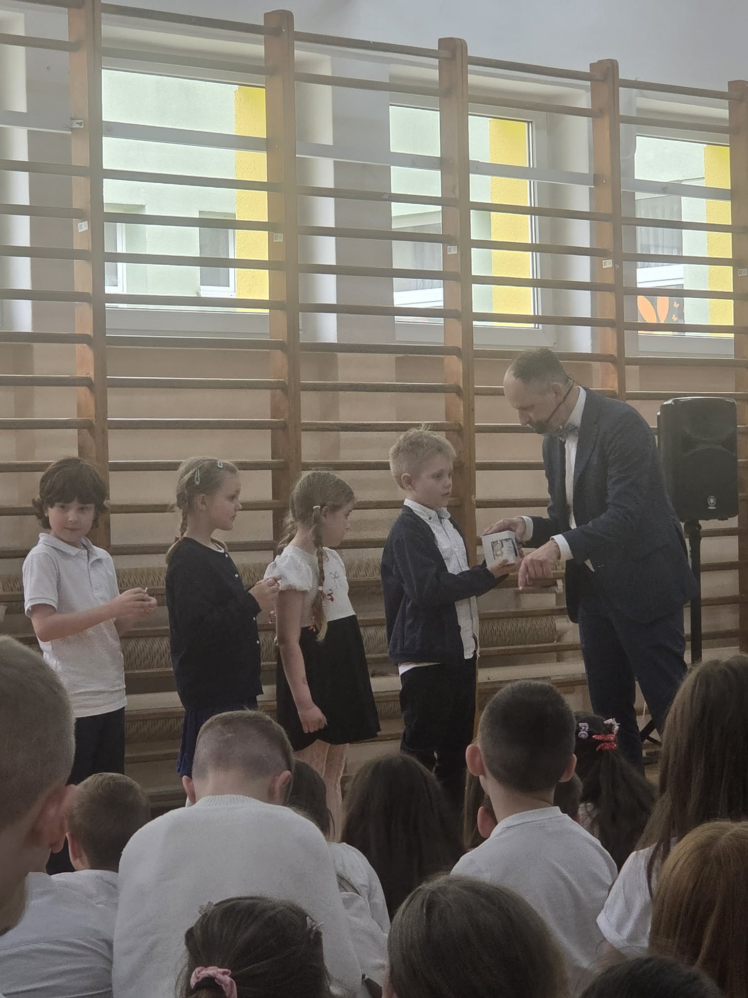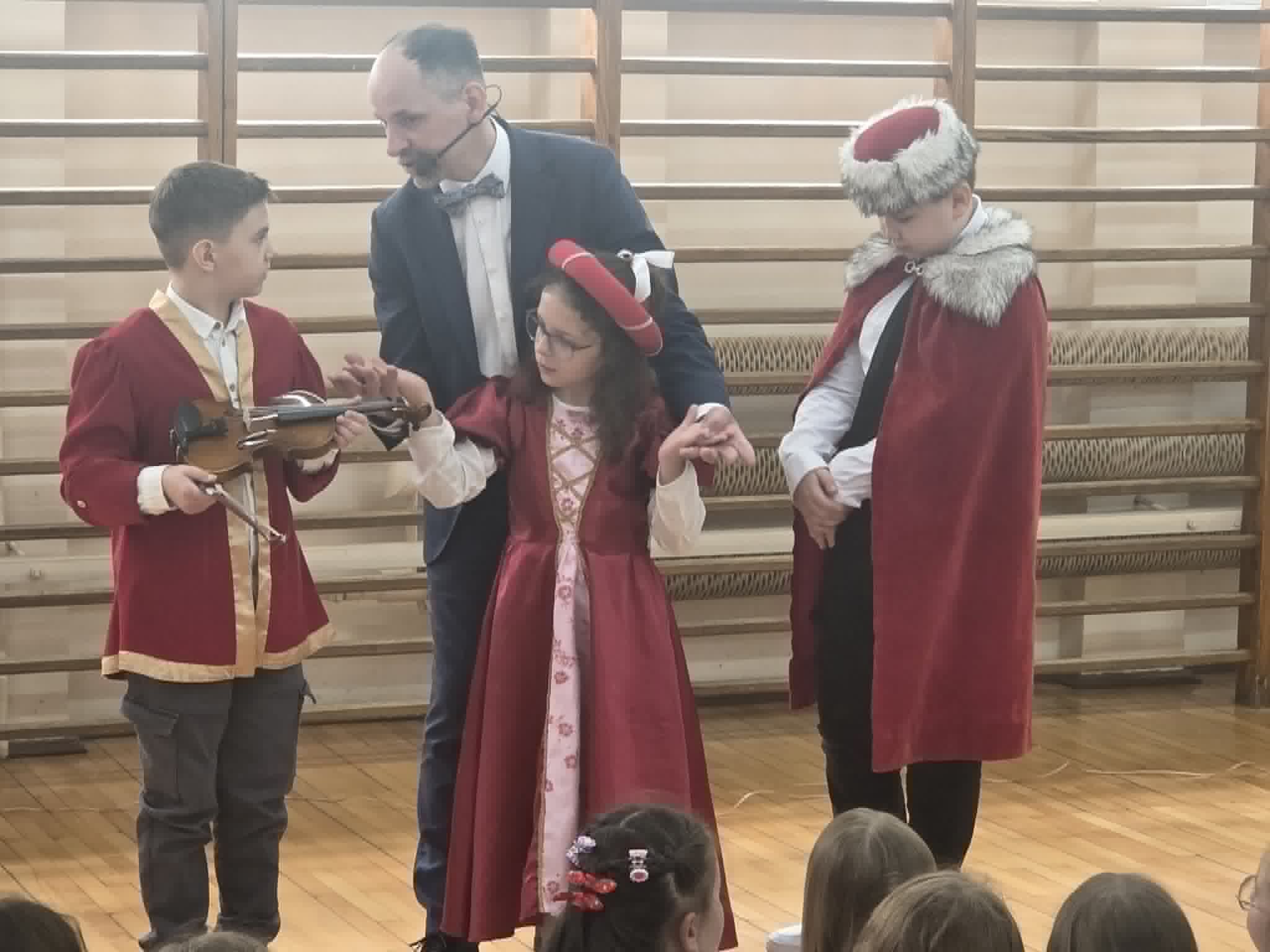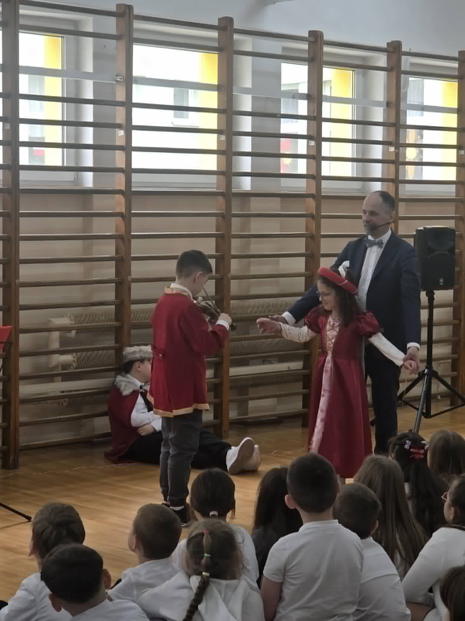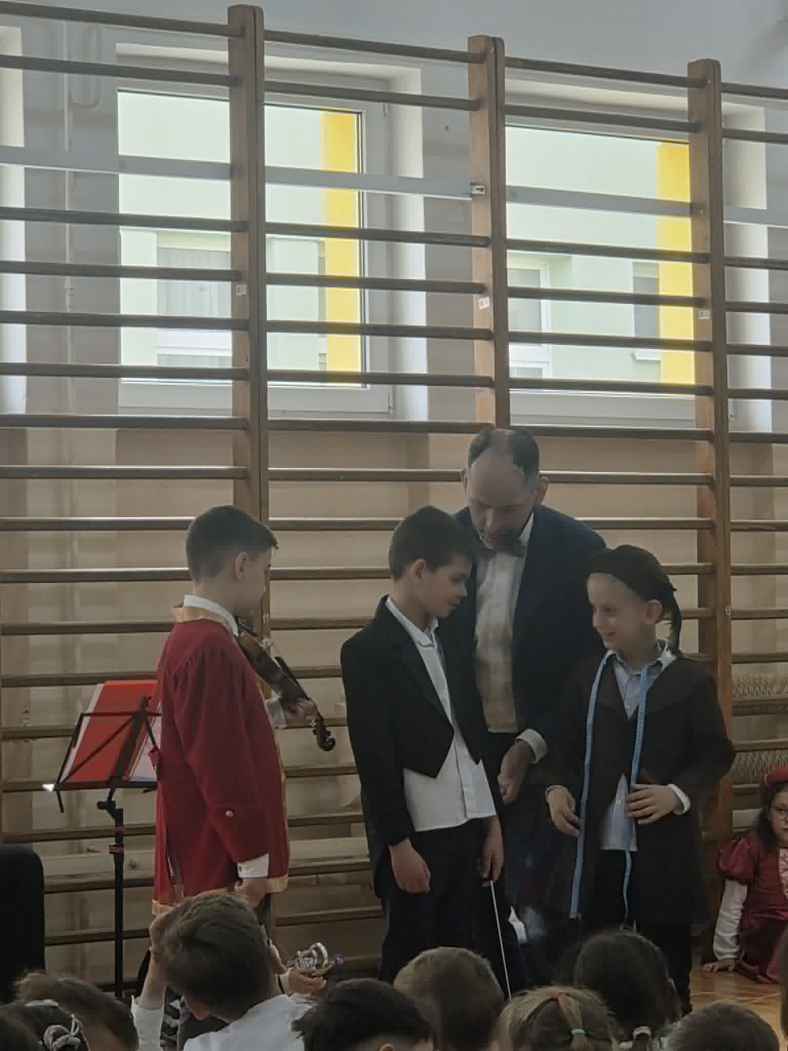 Uczniowie klas 1–3 wzięli udział w wyjątkowej audycji muzycznej pt. „Muzyczny czarodziej", która odbyła się w naszej szkole. Tym razem to artyści przyjechali do dzieci, zamieniając szkolną salę gimnastyczną w prawdziwą filharmonię.