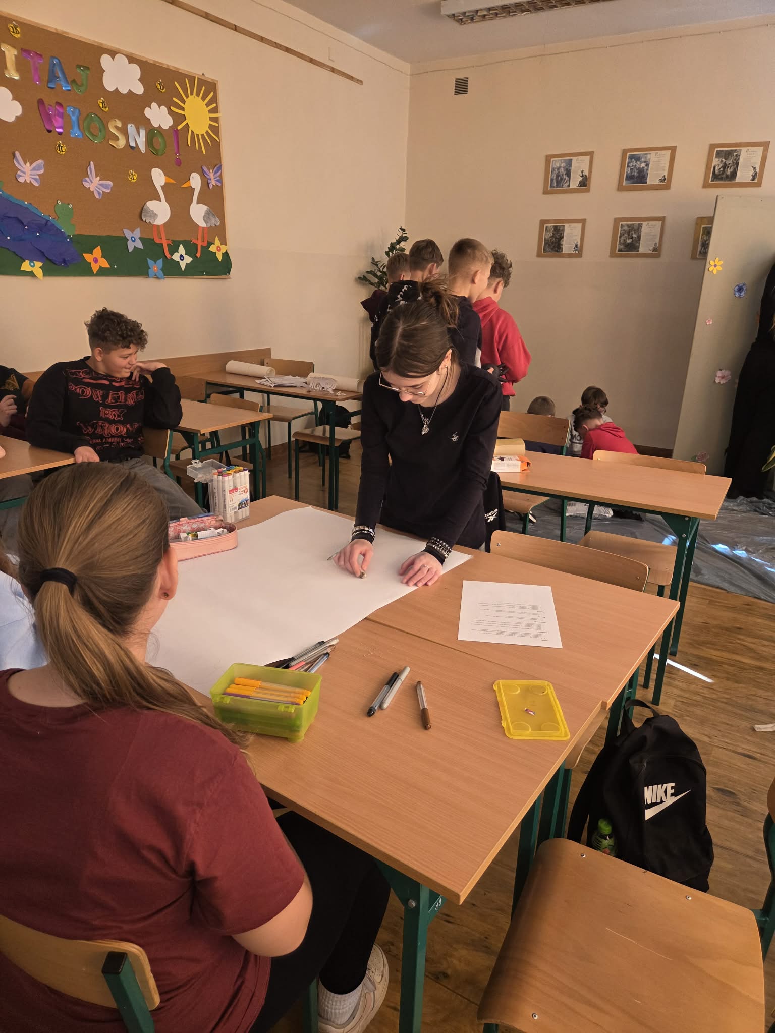 Uczniowie klas VI a i VI c zamienili swoją salę w prawdziwie wiosenną przestrzeń, tworząc klasowy ogródek.