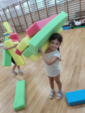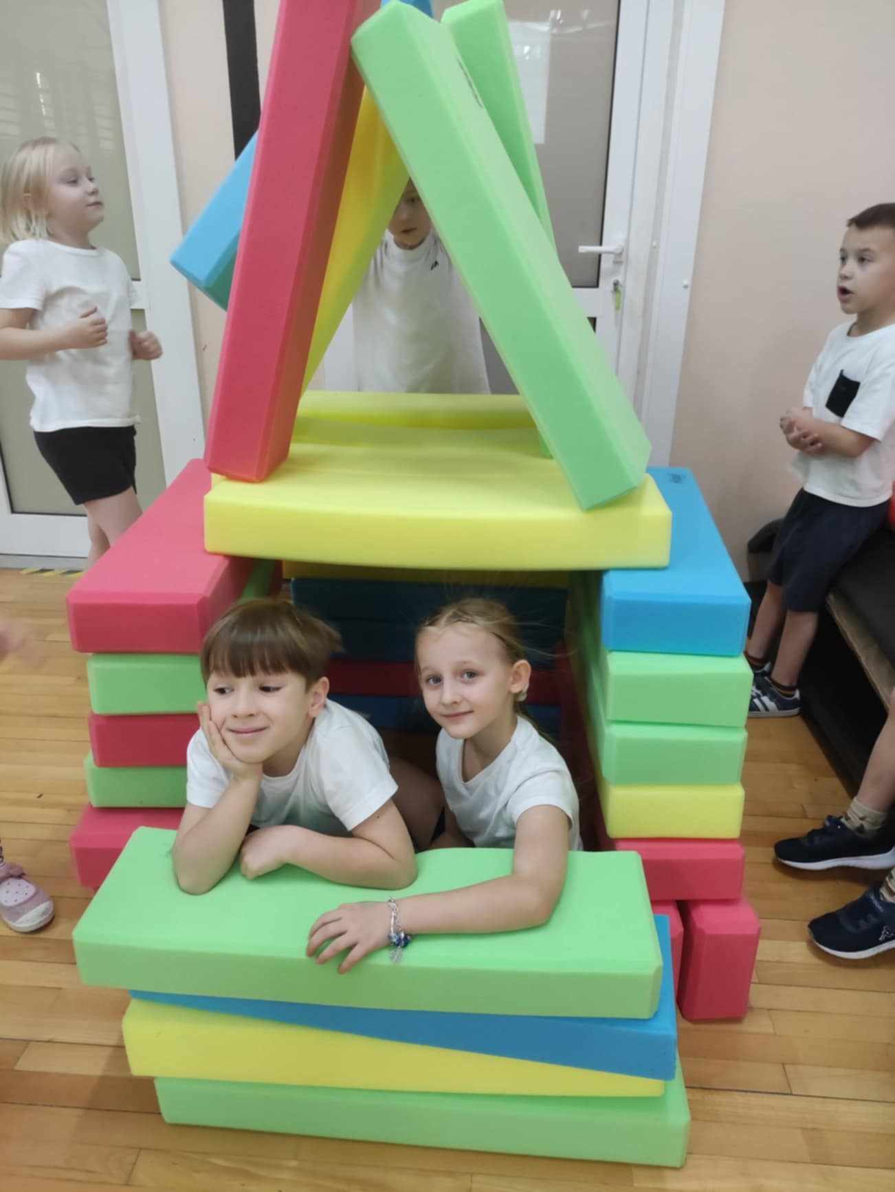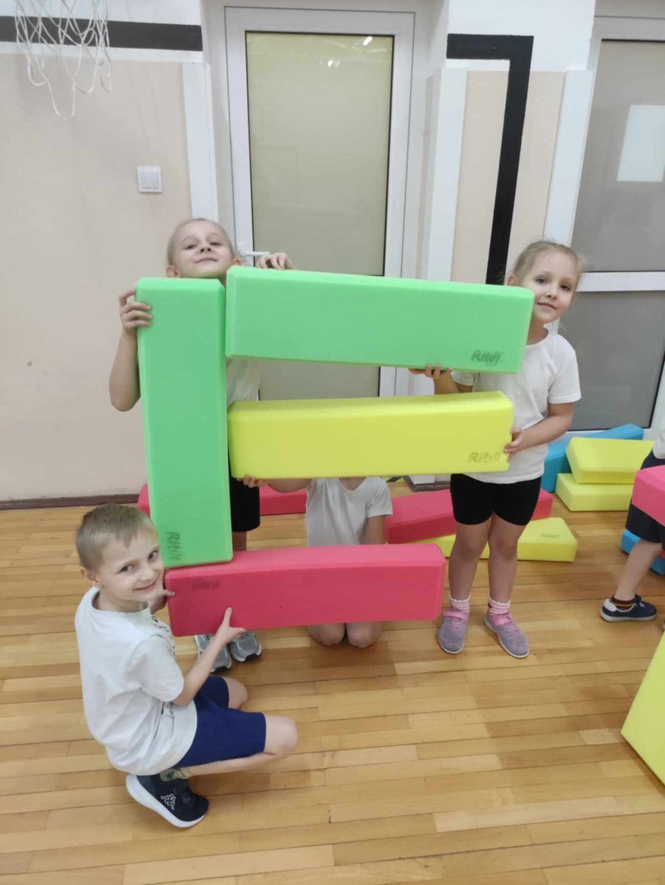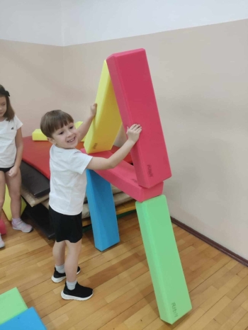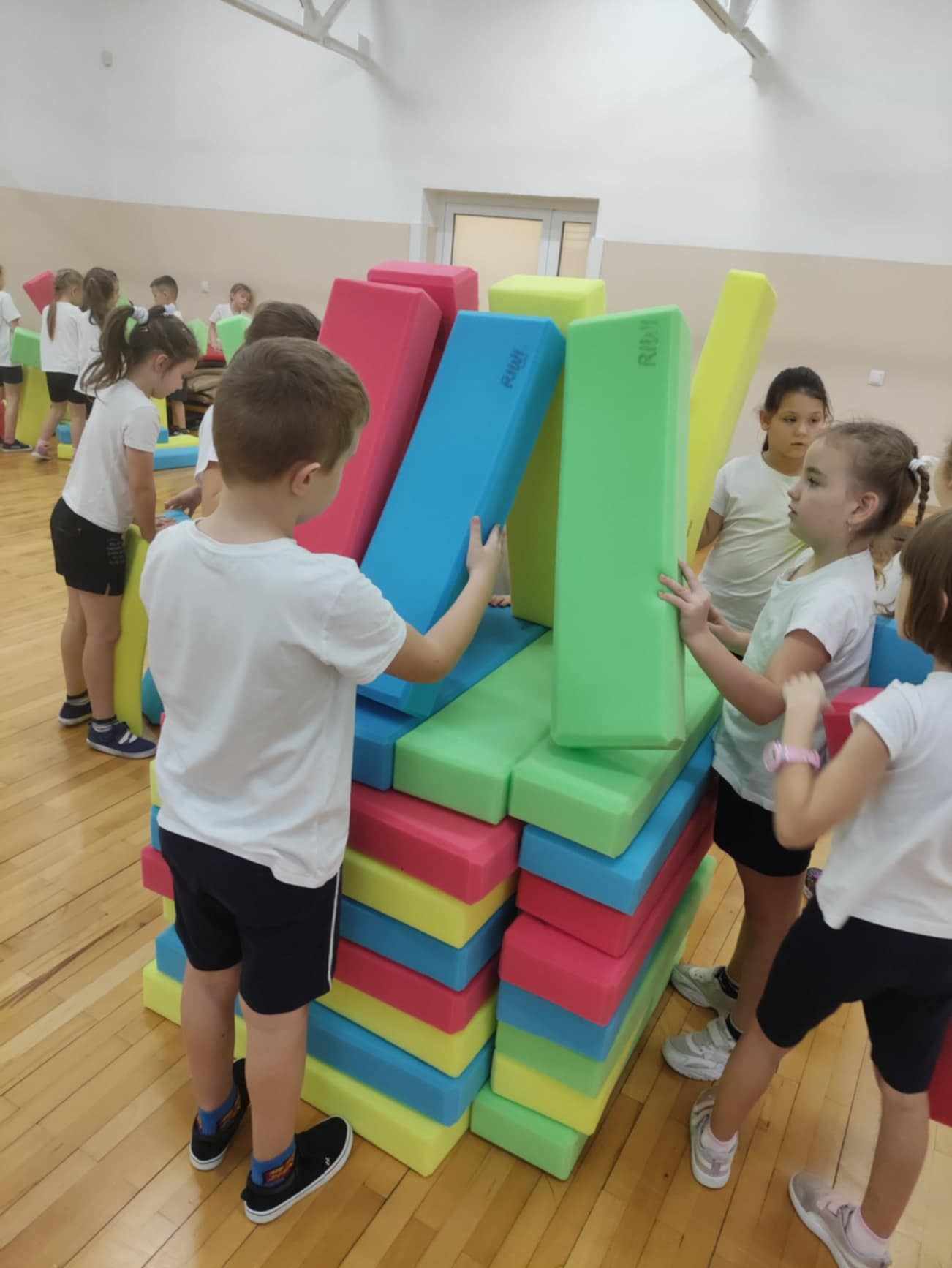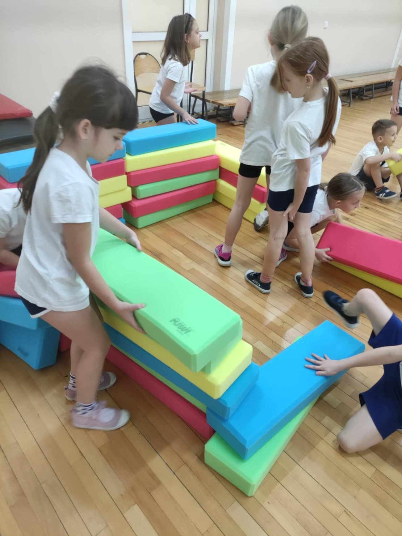 Planując zabawy sportowe warto zachęcić dzieci do działań kreatywnych i ruchu poprzez zabawę. Uczniowie klasy I a na lekcji wychowania fizycznego wykorzystali do zabawy klocki konstrukcyjne, z których tworzyli ciekawe budowle. Pierwszoklasiści zaskakiwali pomysłowością . Poprzez zabawę klockami uczniowie stymulowali zręczność, umiejętności motoryczne oraz kreatywność i myślenie przestrzenne. Zajęcia z klockami okazały się dla dzieci doskonałą zabawą.