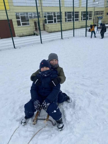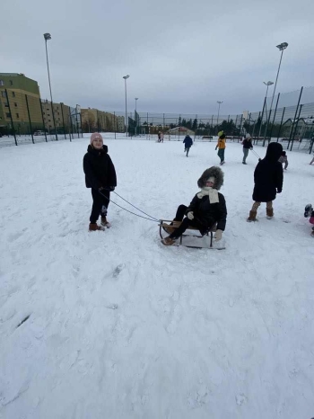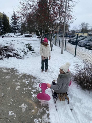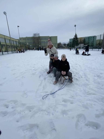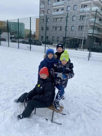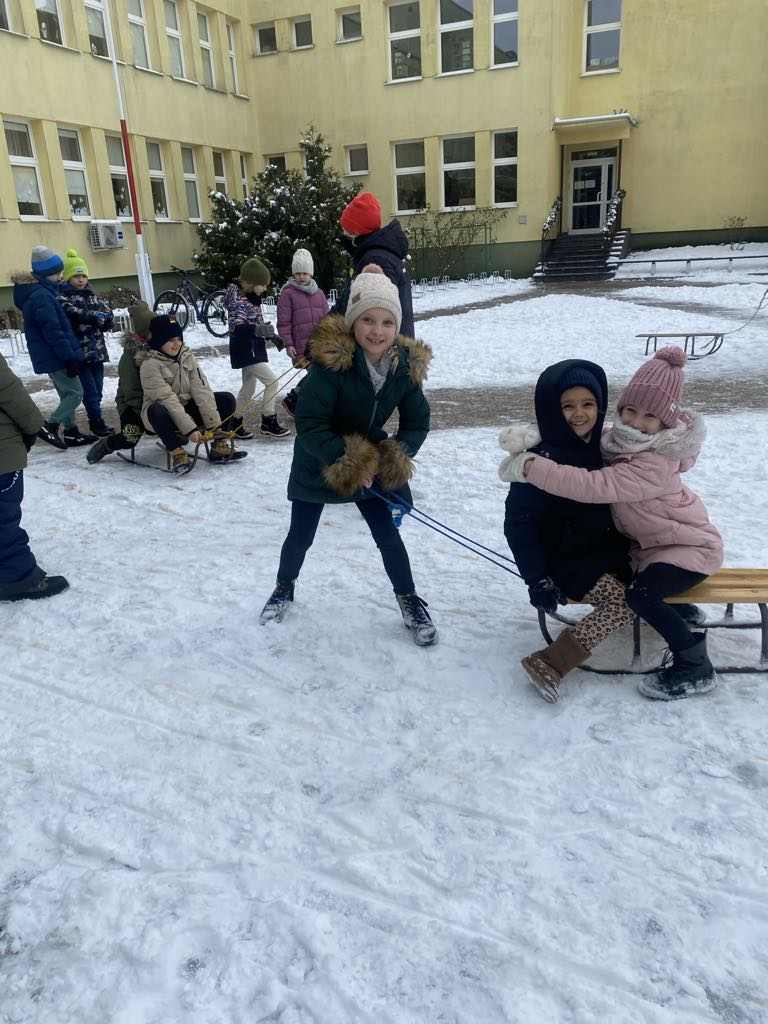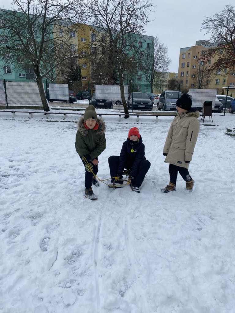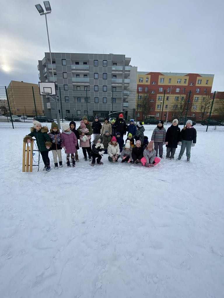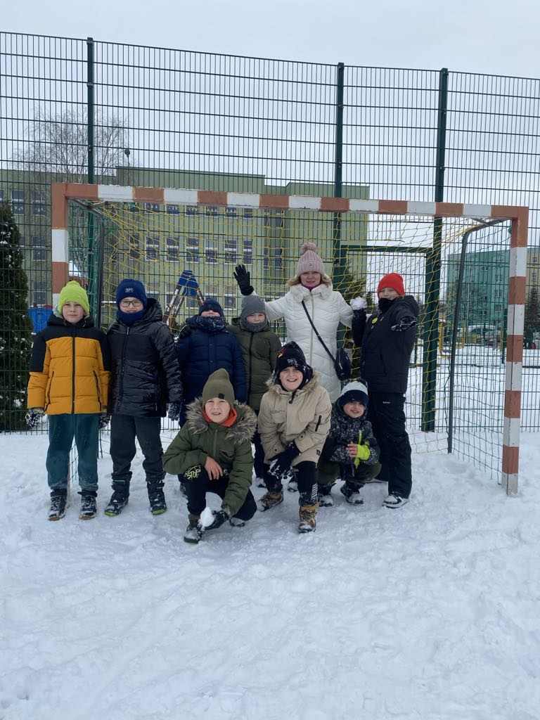 Uczniowie klasy II a aktywnie spędzali czas na świeżym powietrzu w ramach zajęć wychowania fizycznego. Biały puch dostarczył niezmiernej radości podczas zimowych zabaw.