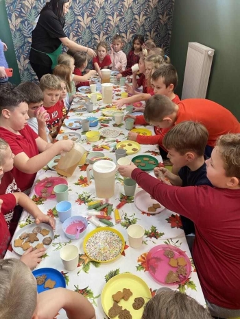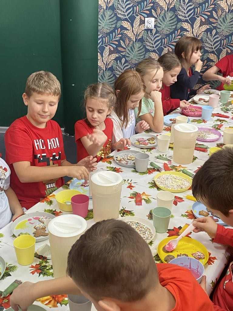 Uczniowie klasy II a w radosnym, przedświątecznym nastroju