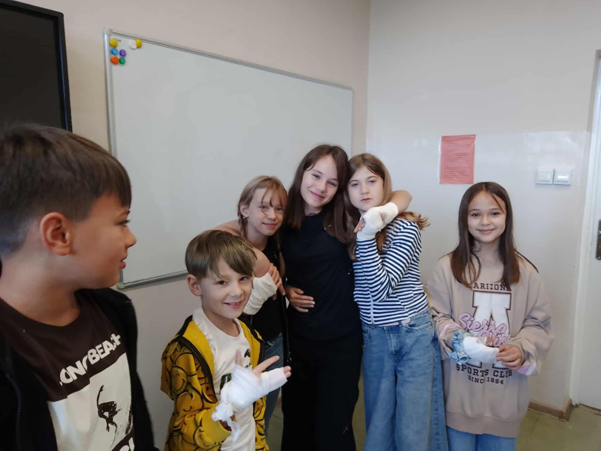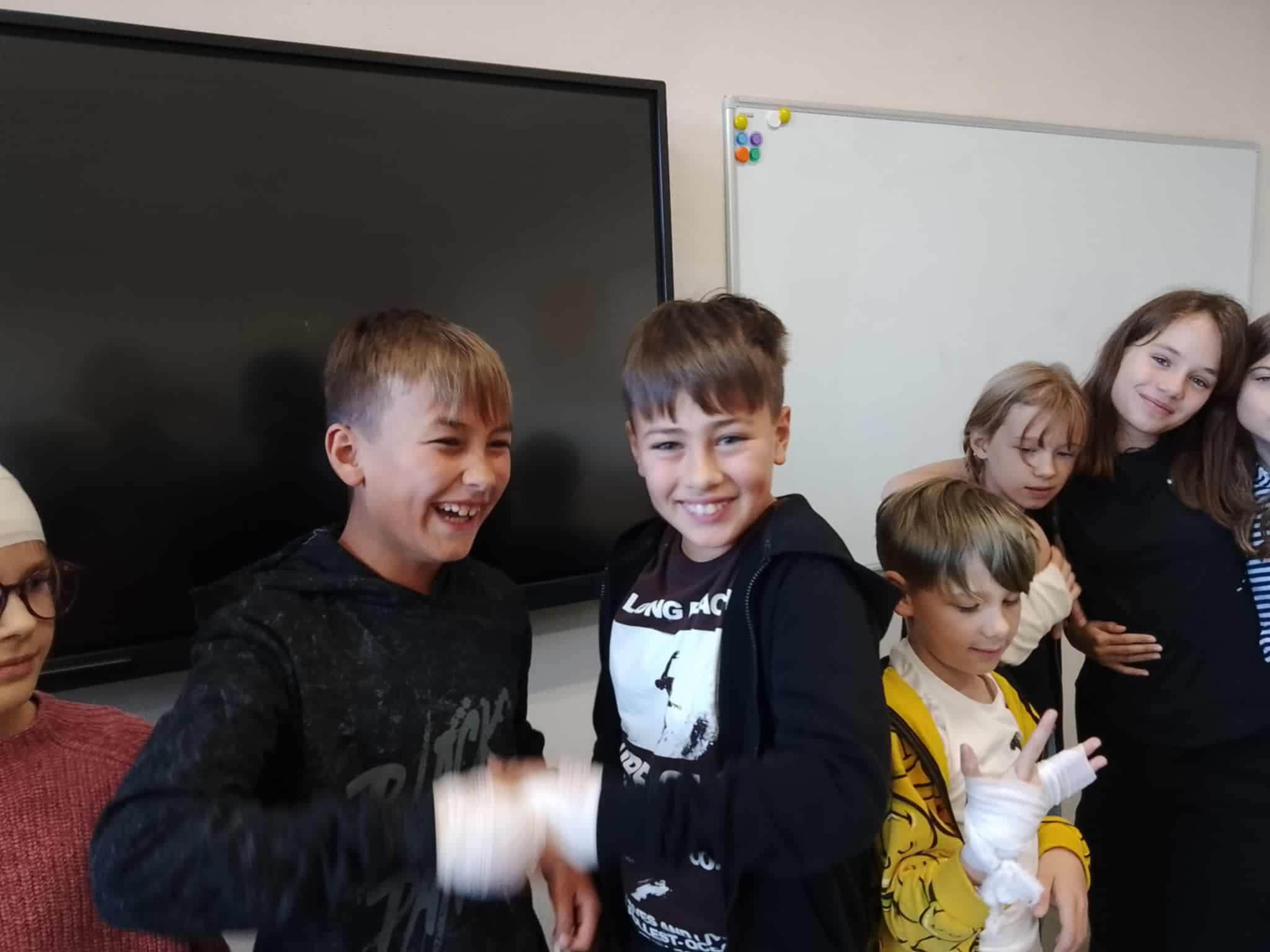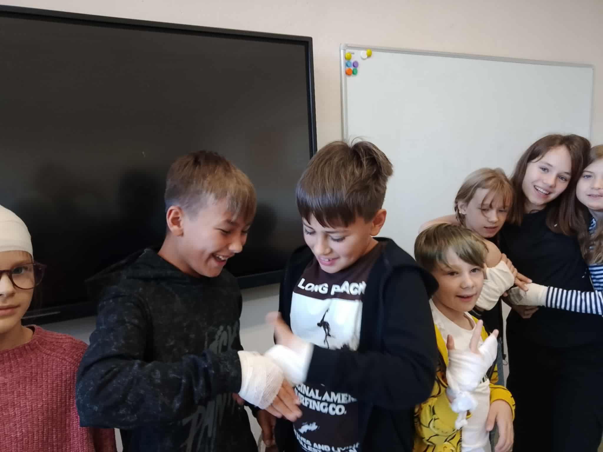 Uczniowie klasy IV d uczyli się bardzo praktycznej umiejętności – bandażowania!