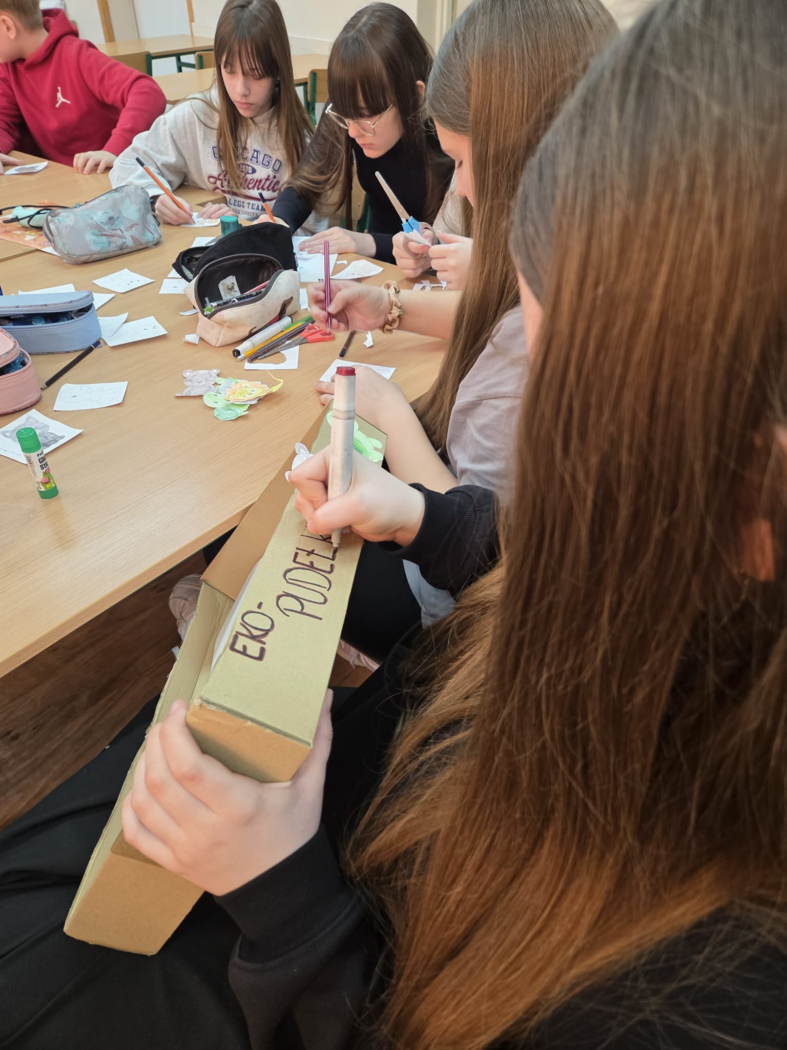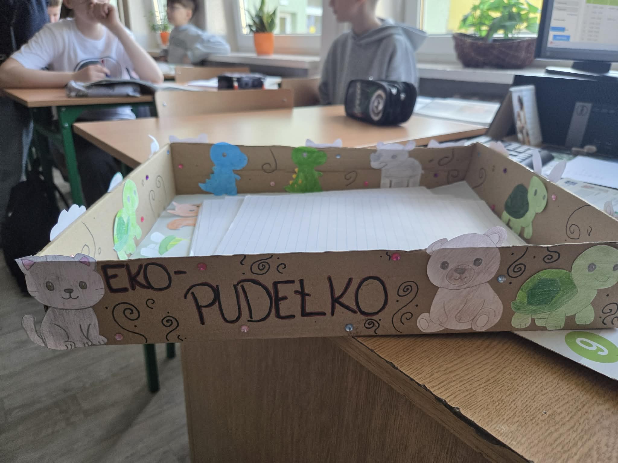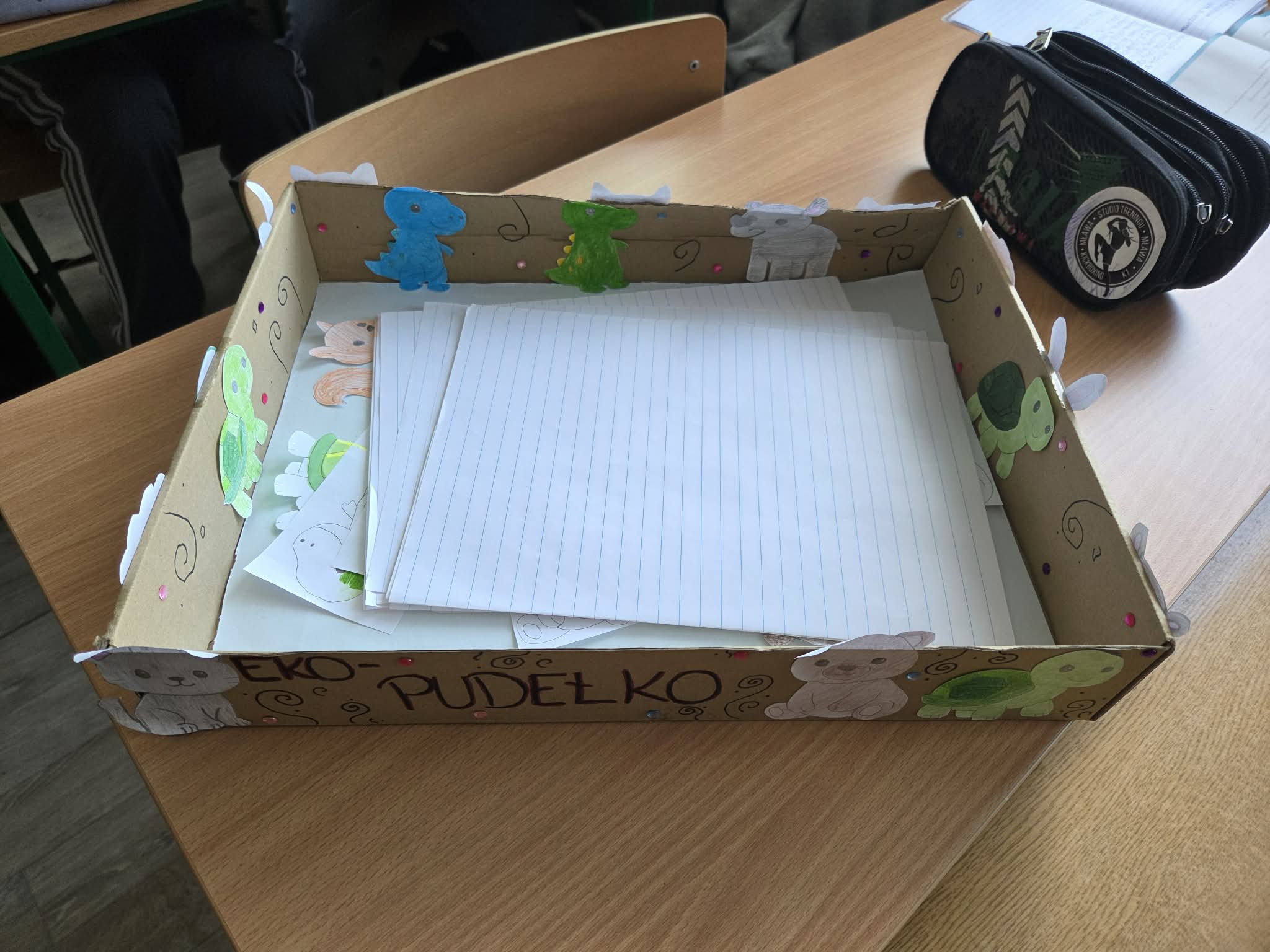 Zadanie konkursowe polegało na wykonaniu specjalnego pudełka na papier, do którego będą trafiały kartki nadające się jeszcze do ponownego wykorzystania. To świetny sposób na naukę ekologii w praktyce i rozwijanie dobrych nawyków.