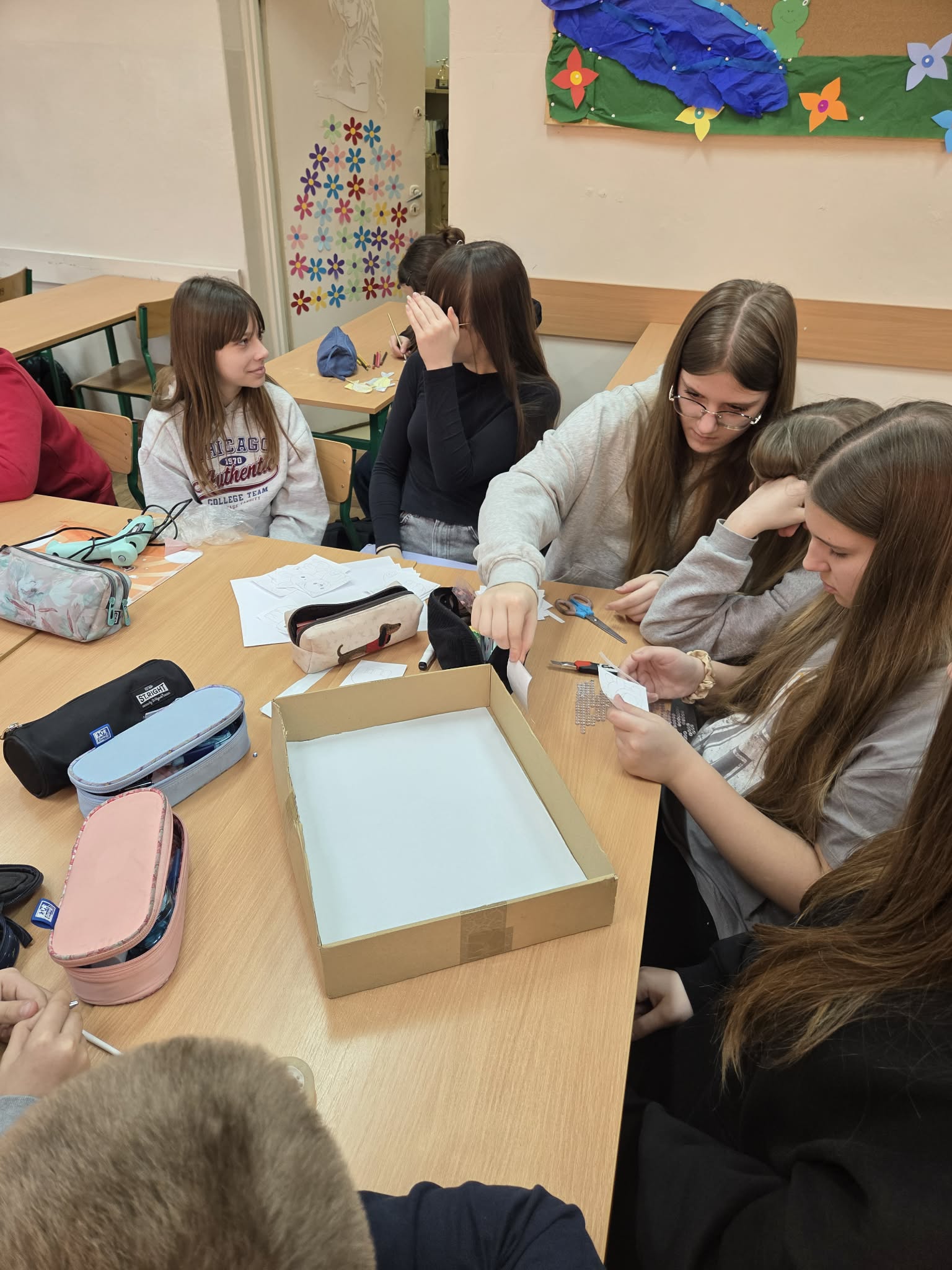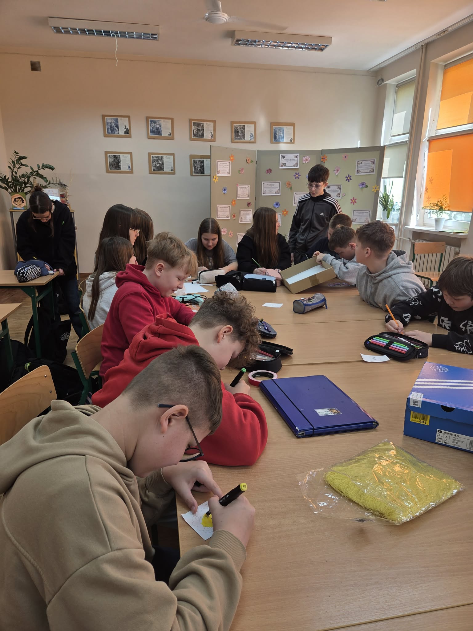 Szóstoklasiści wykazali się ogromną kreatywnością , swoje pudełko wykonali z tektury, a do jego ozdobienia wykorzystali materiały znalezione w domu, które nie zostały wcześniej użyte do innych prac plastyczno-technicznych. Dzięki temu nie tylko zadbali o środowisko, ale również dali drugie życie różnym przedmiotom.